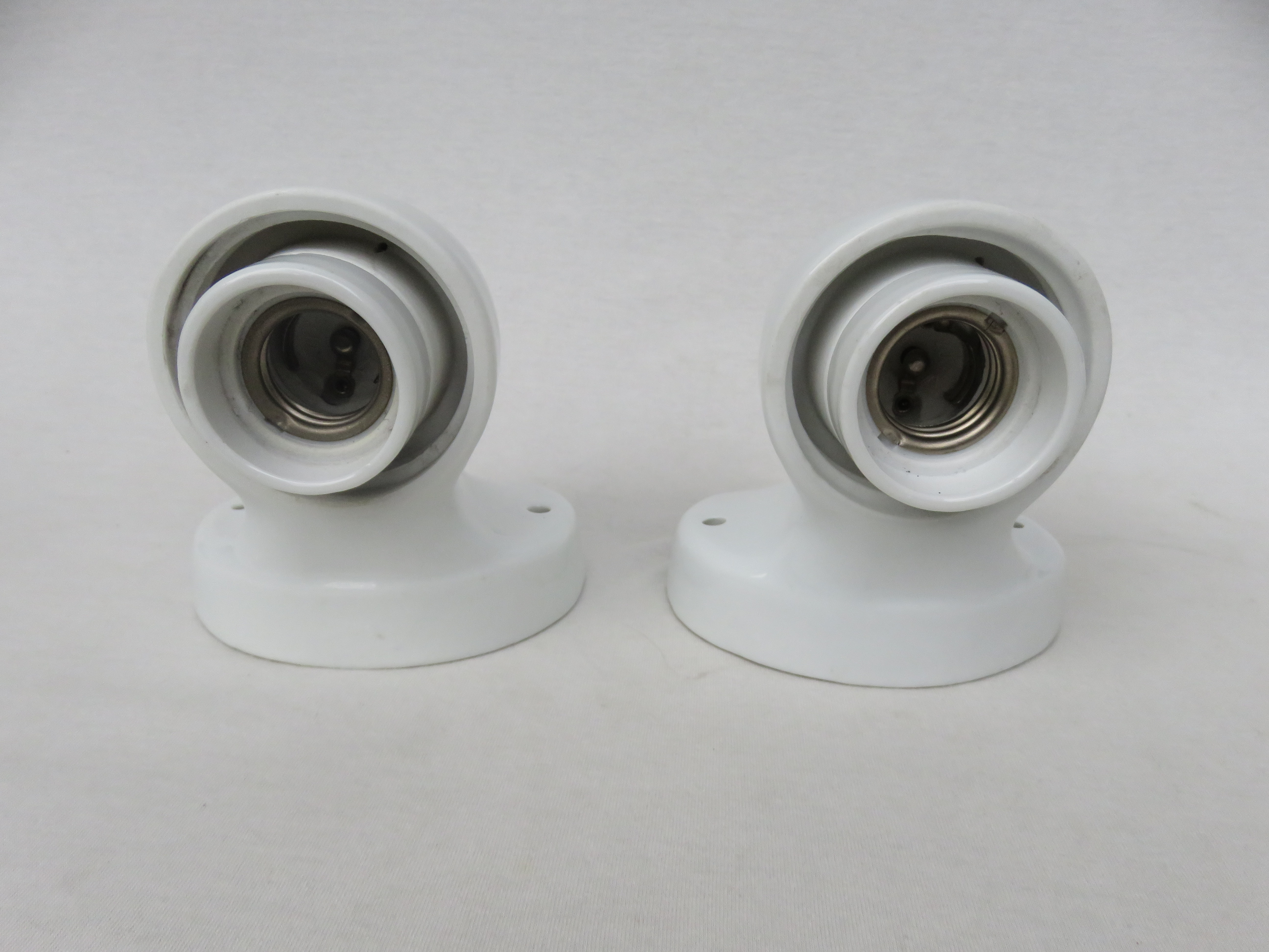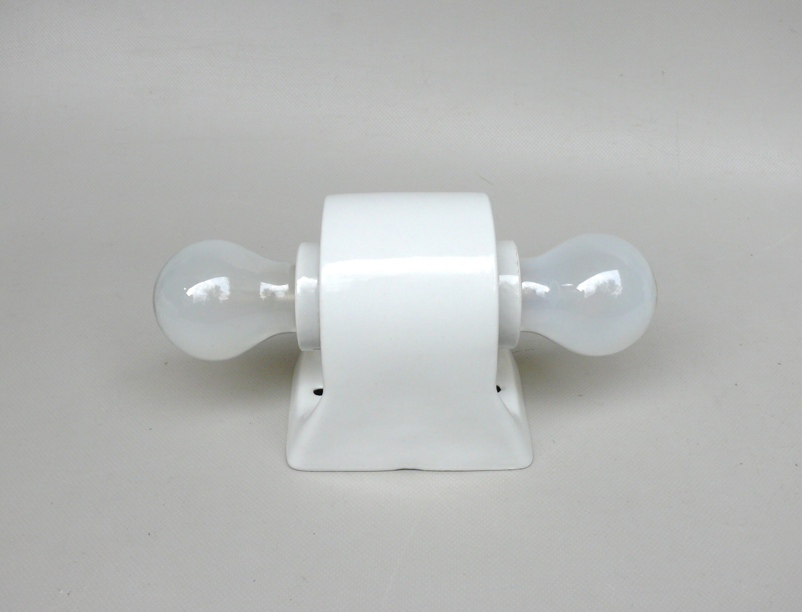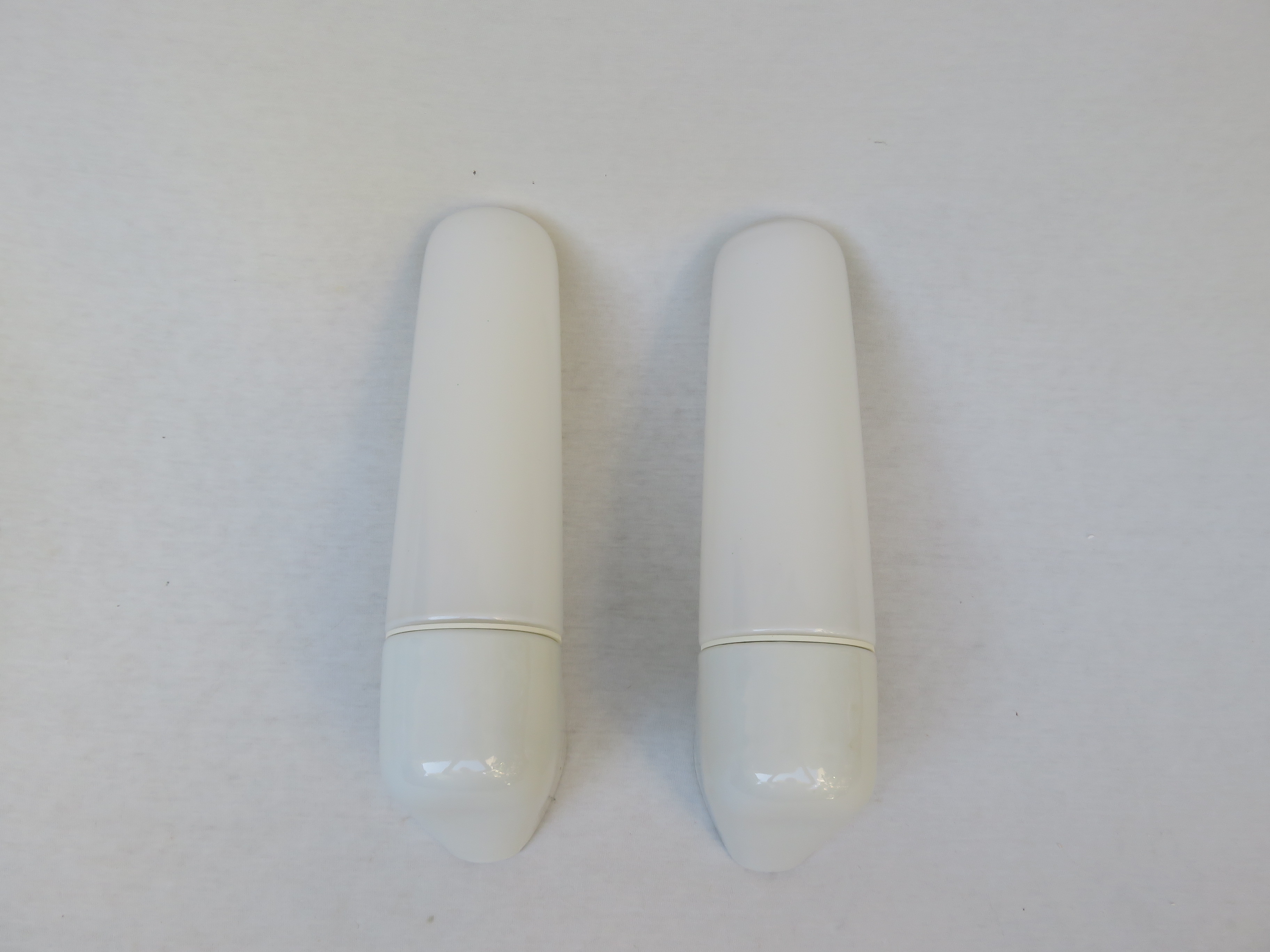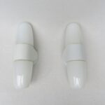 SP20 – 1 Paar Spiegelleuchten, Entwurf Wilhelm Wagenfeld für Lindner GmbH, Bamberg, WVZ 346, Entwurf 1955, H300, L90, in weiß