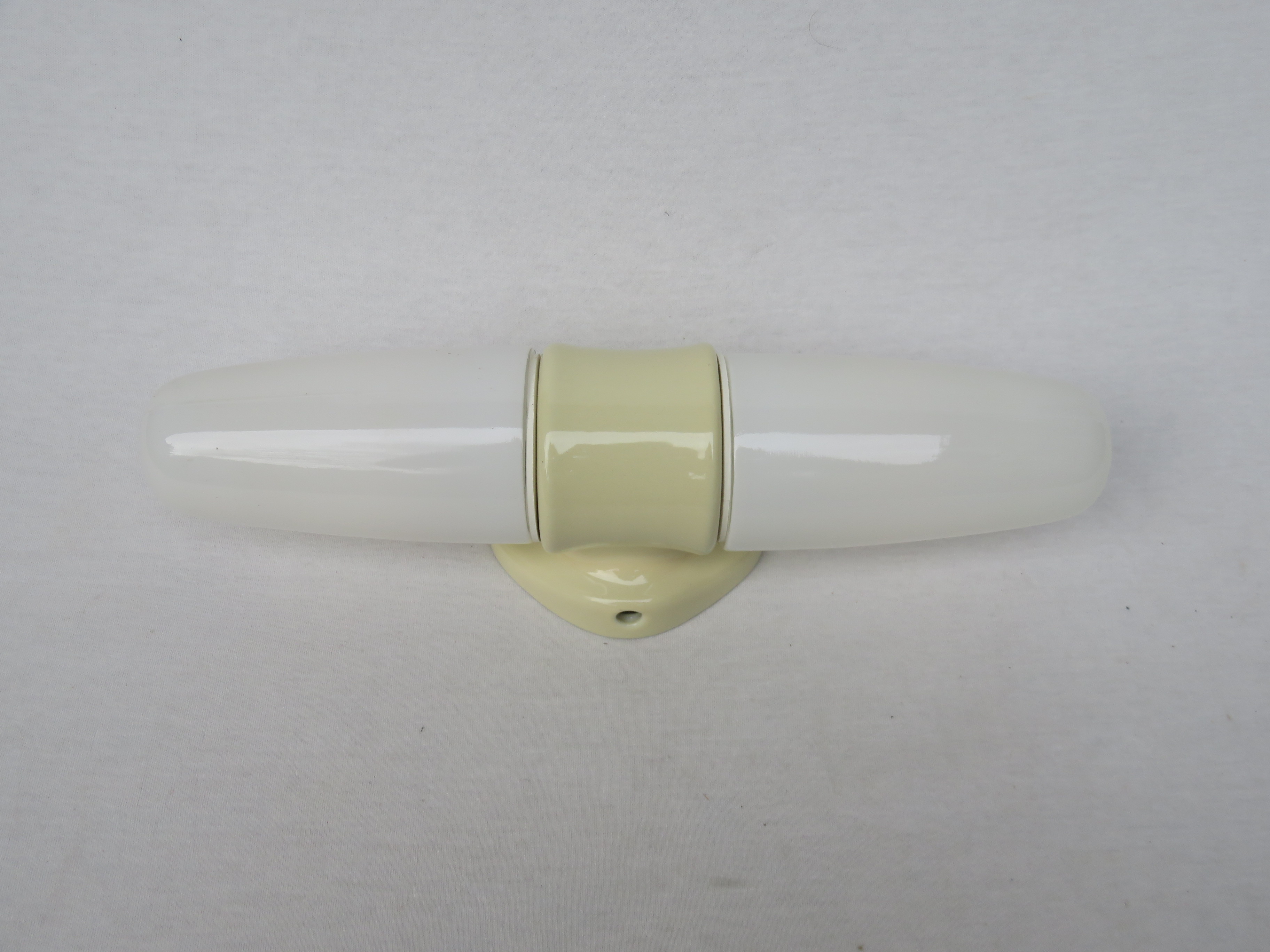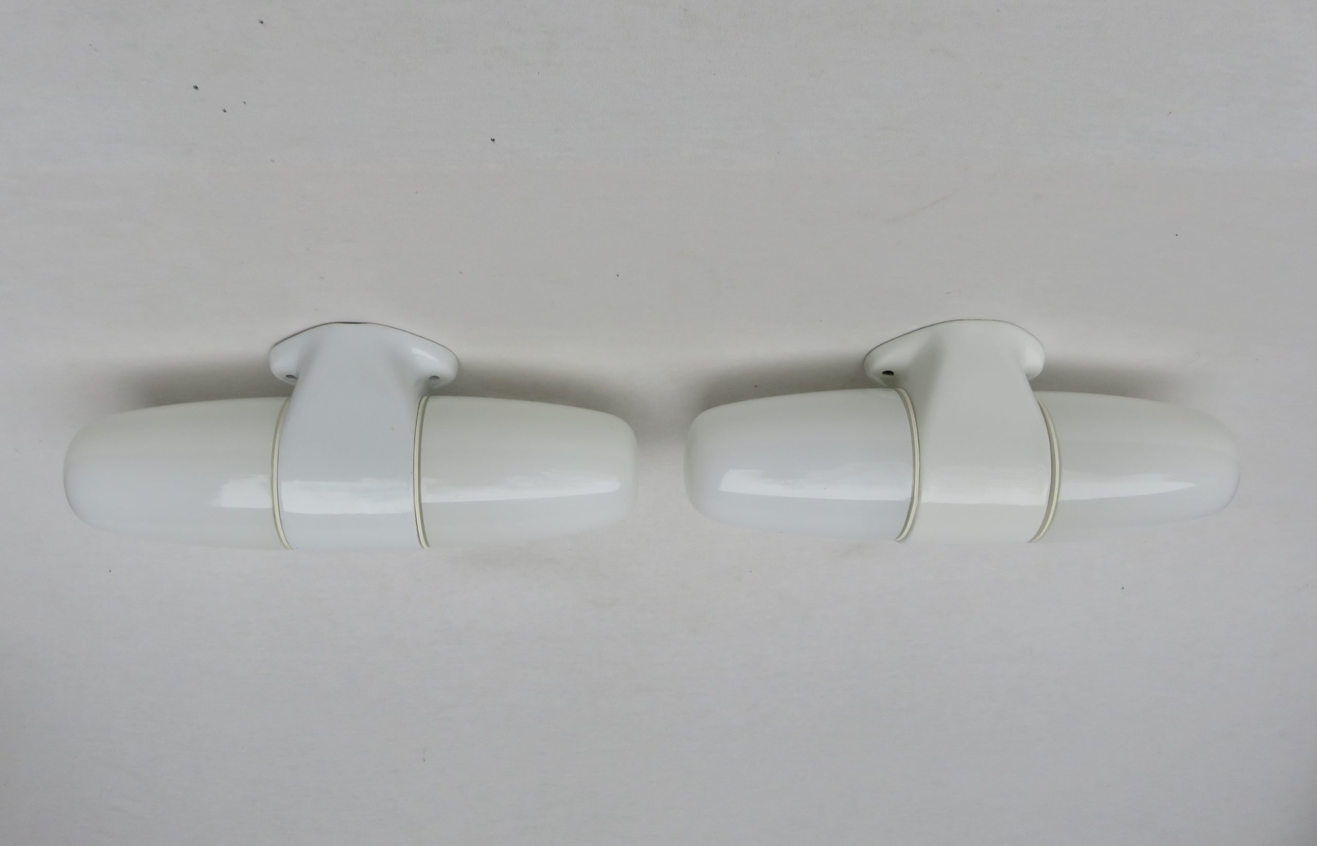 SP21 – 1 Paar Spiegelleuchten, Entwurf Wilhelm Wagenfeld für Lindner GmbH, Bamberg, WVZ 345, Entwurf 1955, H220, L95, in weiß