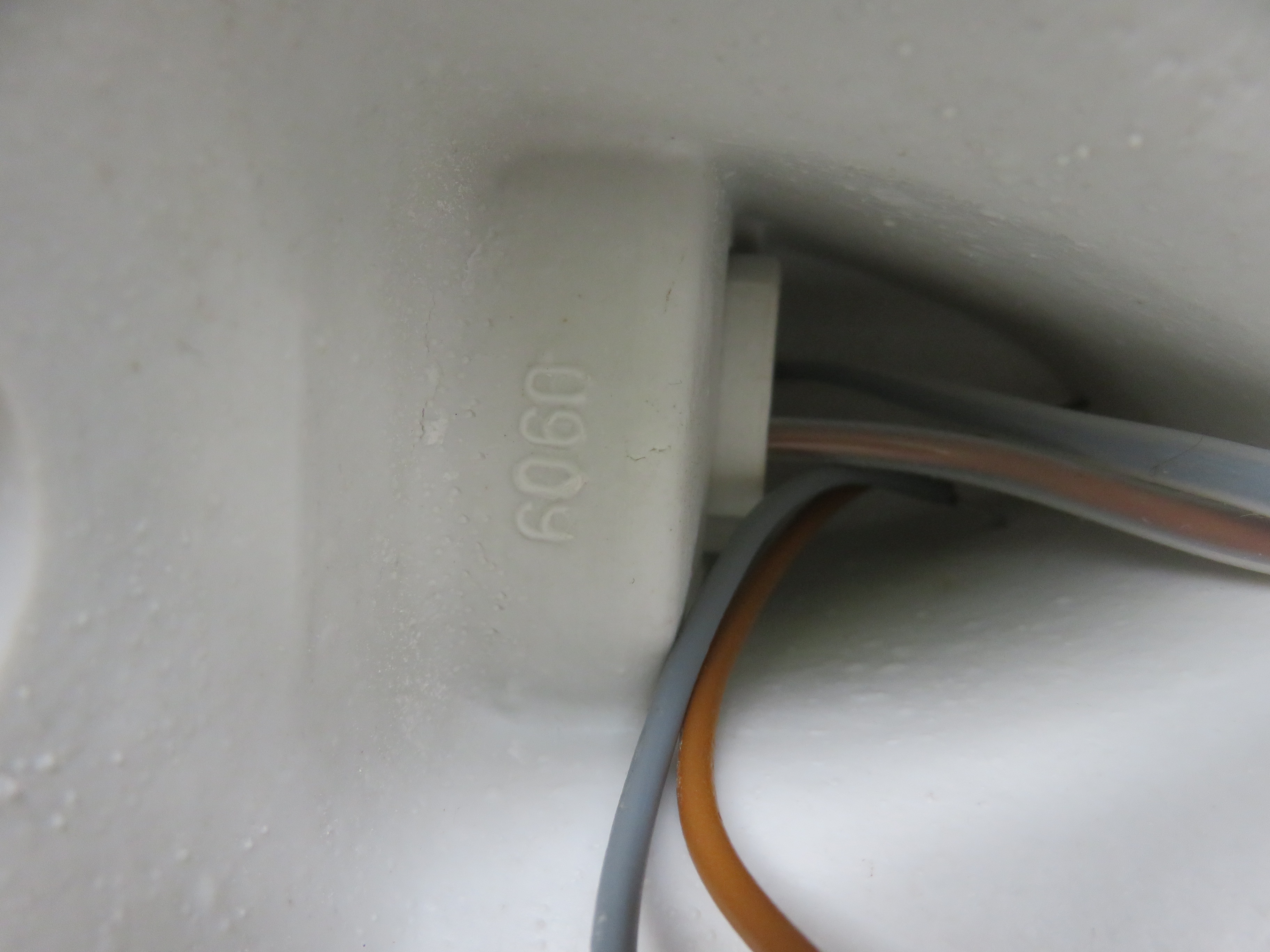 Die Wandhalterung hat an einem Befestigungsloch einen minimalen flachen Chip, der durch die Halteschraube mit Nylonunterlegscheibe (zum Schutz der Keramik) abgedeckt wird. Eines des Gläser hat eine offene Luftblase mit Ascheeinschlüssen.