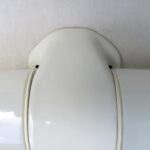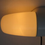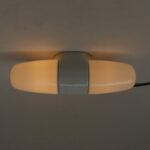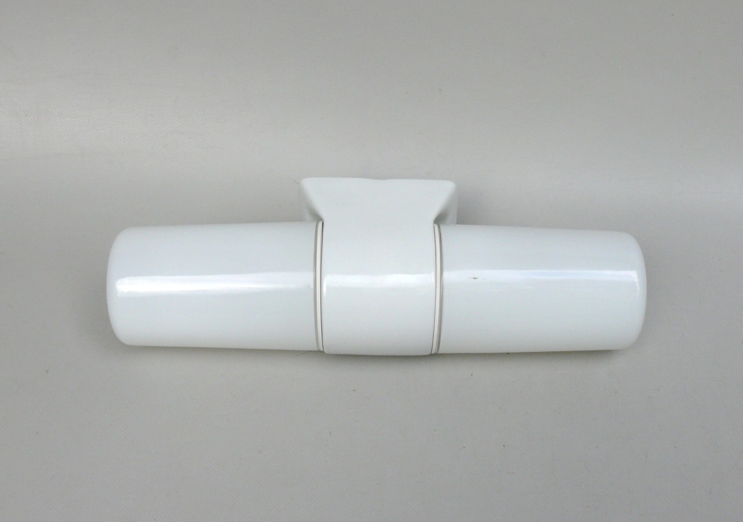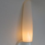 SP3 – SOLD – Spiegelleuchte, Entwurf Wilhelm Wagenfeld für Lindner GmbH, Bamberg, WVZ 402, Entwurf 1963, H 350, L 110, in weiß – „Die Große“