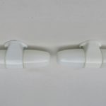 SP23 – 1 Paar Wandleuchten, Entwurf Wilhelm Wagenfeld für Lindner GmbH, Bamberg, WVZ 402, Entwurf 1963, H 278, L 85 in weiß – Die Kleinen –