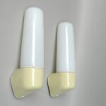 SP6 – 2 Paar Spiegelleuchten, Entwurf Wilhelm Wagenfeld für Lindner GmbH, Bamberg, WVZ 380, Entwurf 1960, H 272, L 95, in hellgelb – Die Kleinen