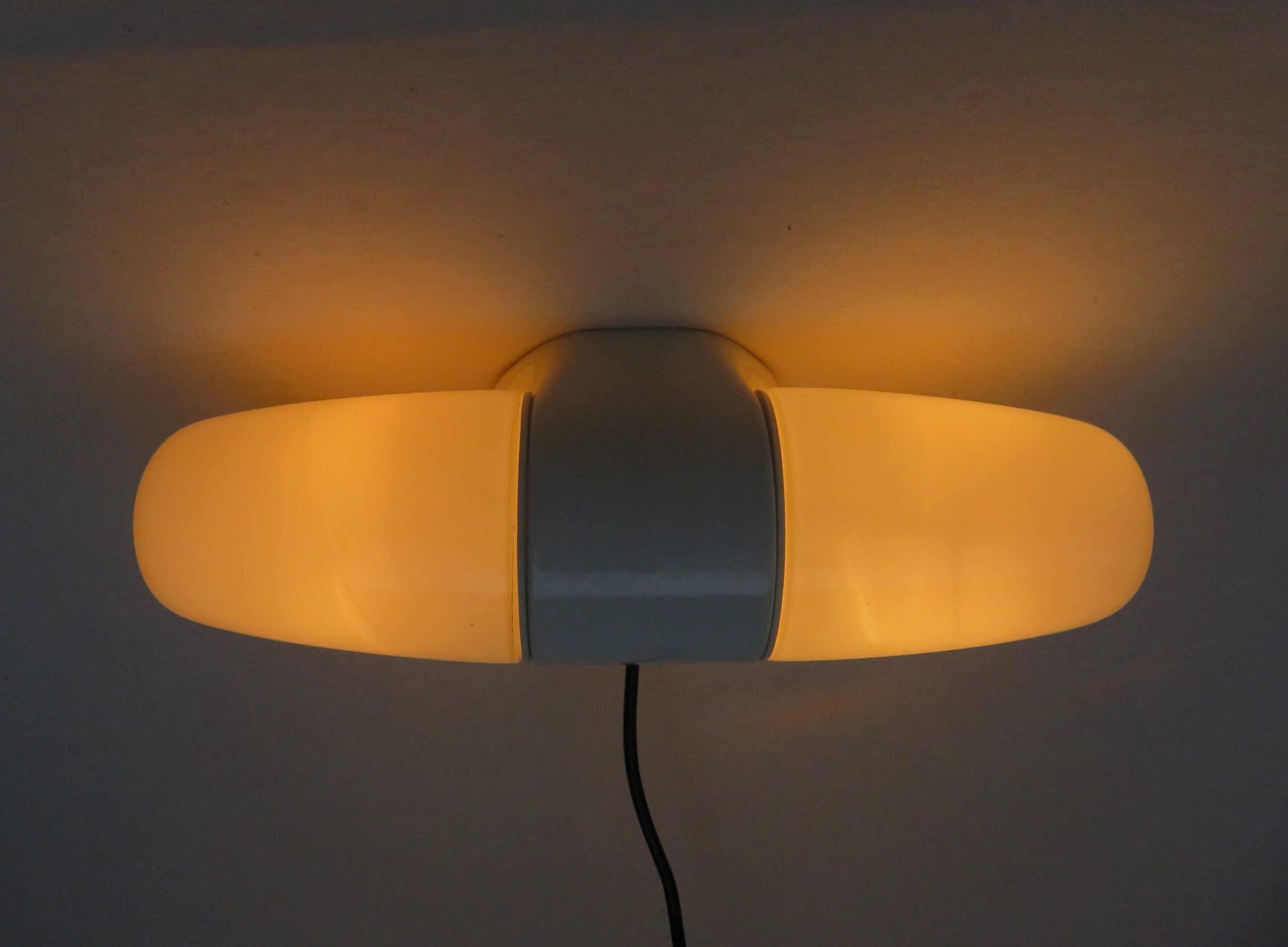 Eine der Leuchten hat einen leichten Brandfehler an der Wandhalterung – ca. 0,5 cm.