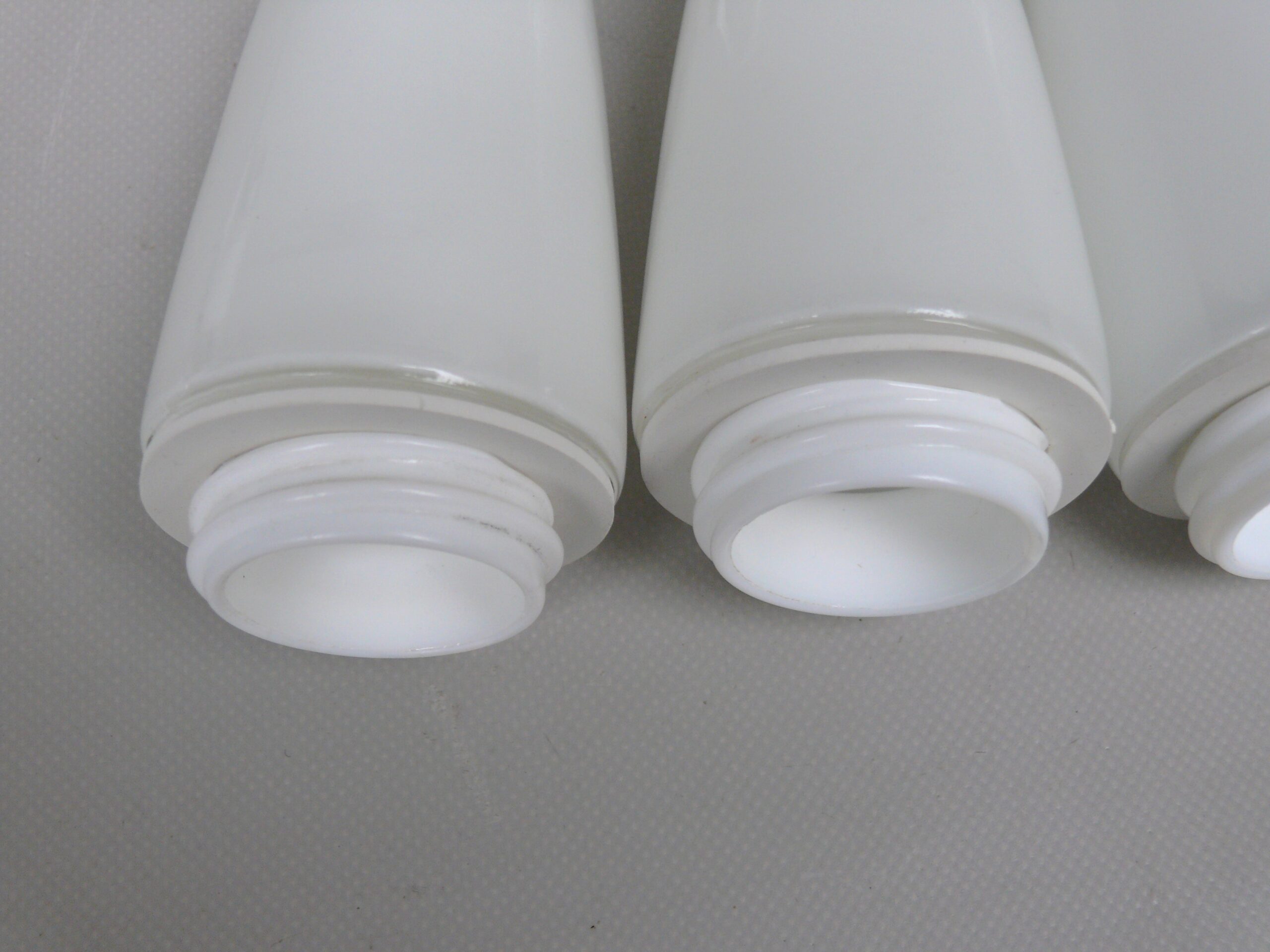 Die Leuchten haben am Sockel von Innen am Gewinde für die Lampenschirme leichte Fehlstellen, die Gläser sitzen jedoch fest.