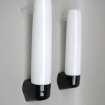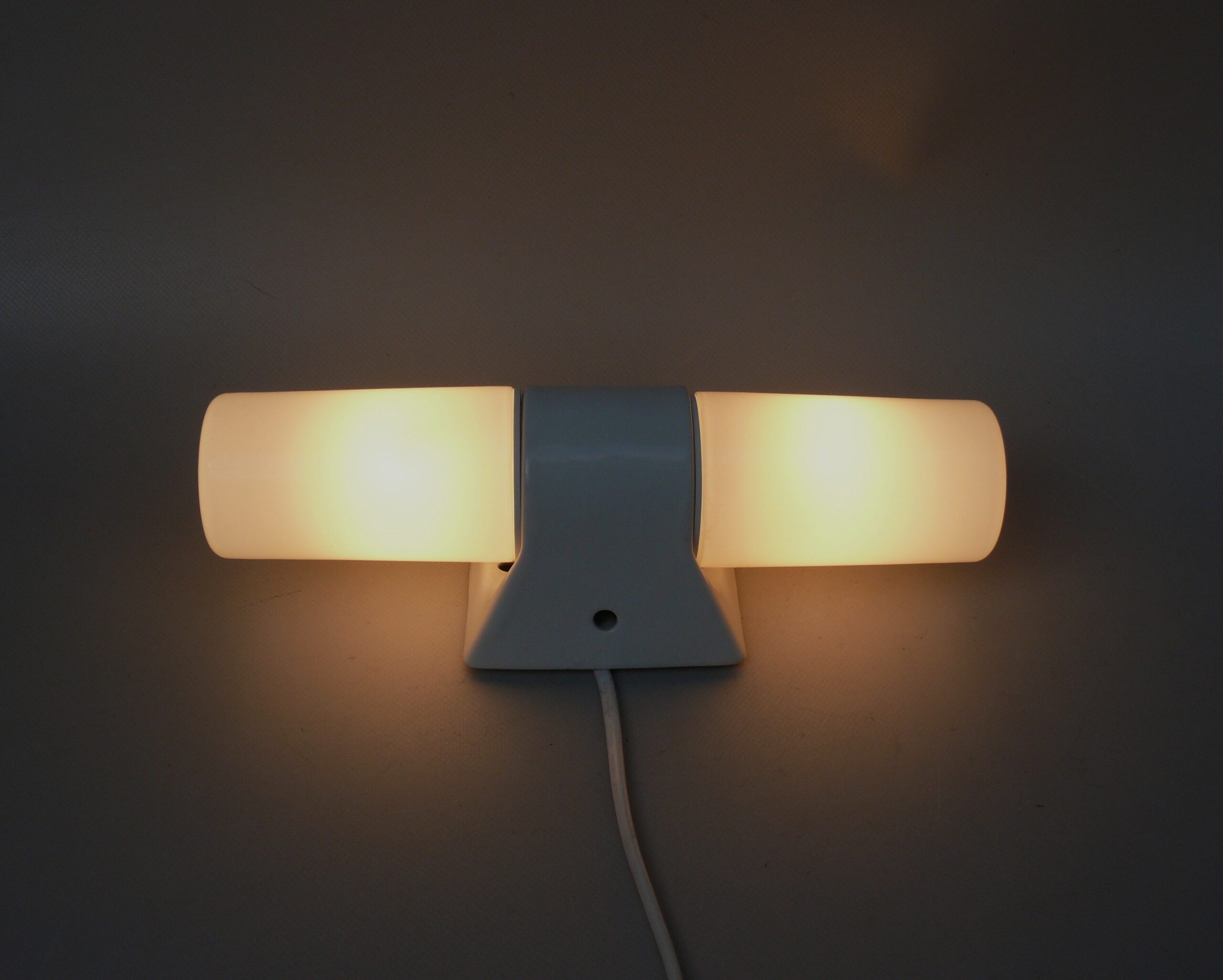 SP11 – 1 Paar Spiegelleuchten, Entwurf Wilhelm Wagenfeld für Lindner GmbH, Bamberg, WVZ 380, Entwurf 1960, H 272, L 95, in weiß – Die Kleinen