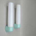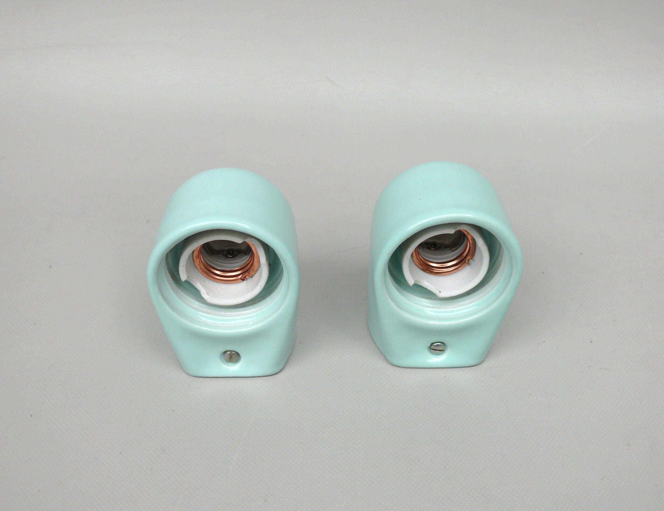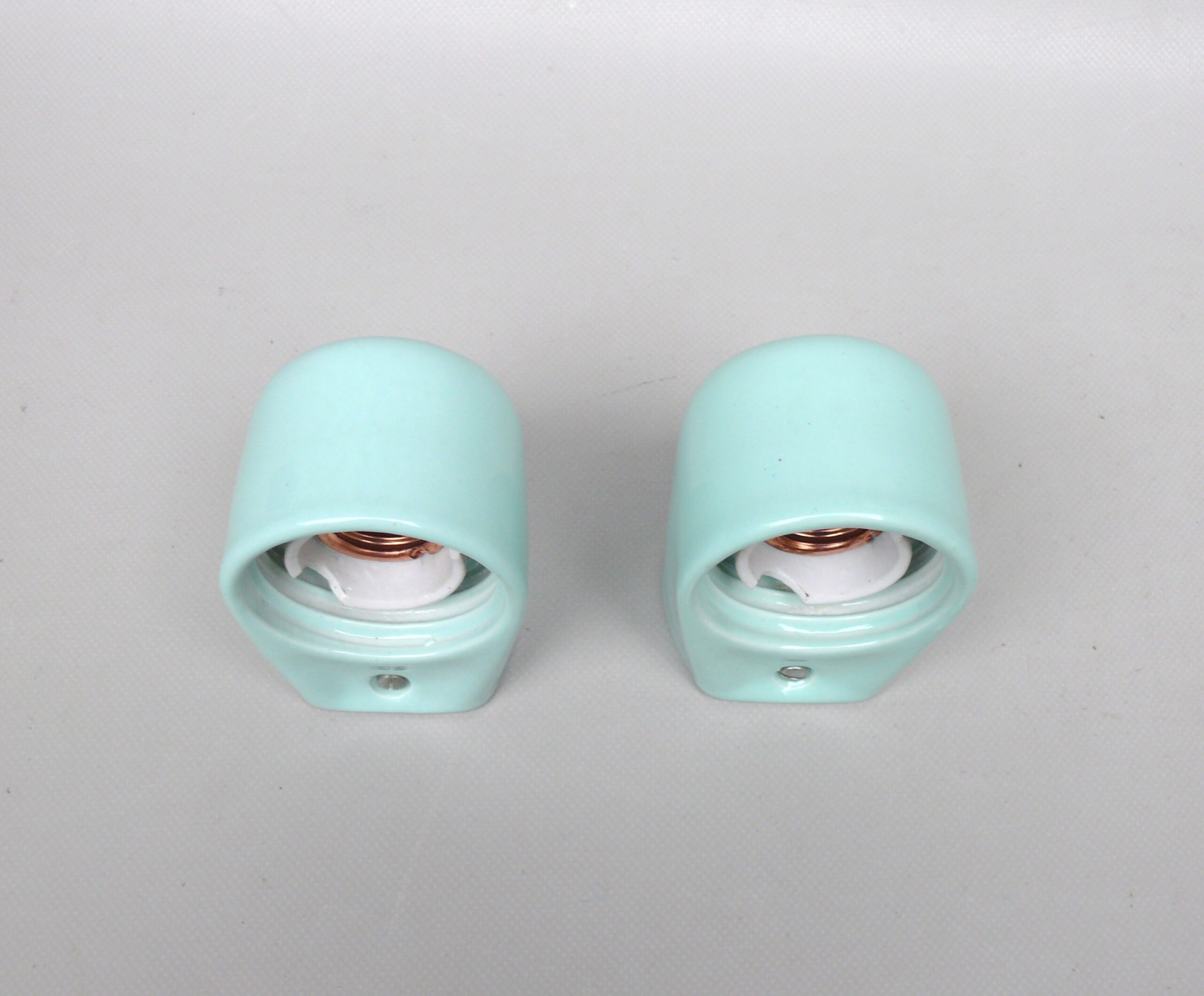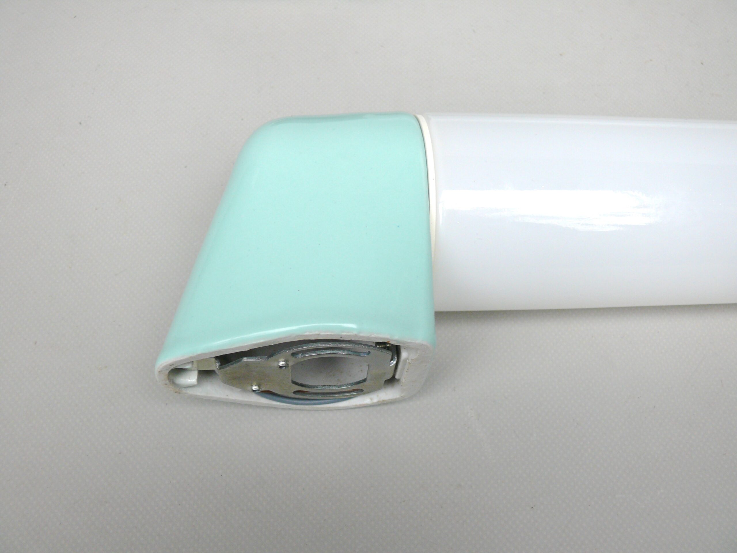 SP14 – 1 Paar Spiegelleuchten, Entwurf Wilhelm Wagenfeld für Lindner GmbH, Bamberg, WVZ 380, Entwurf 1960, H 272, L 95, in mintgrün