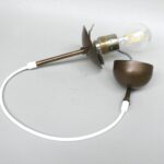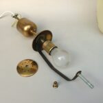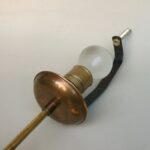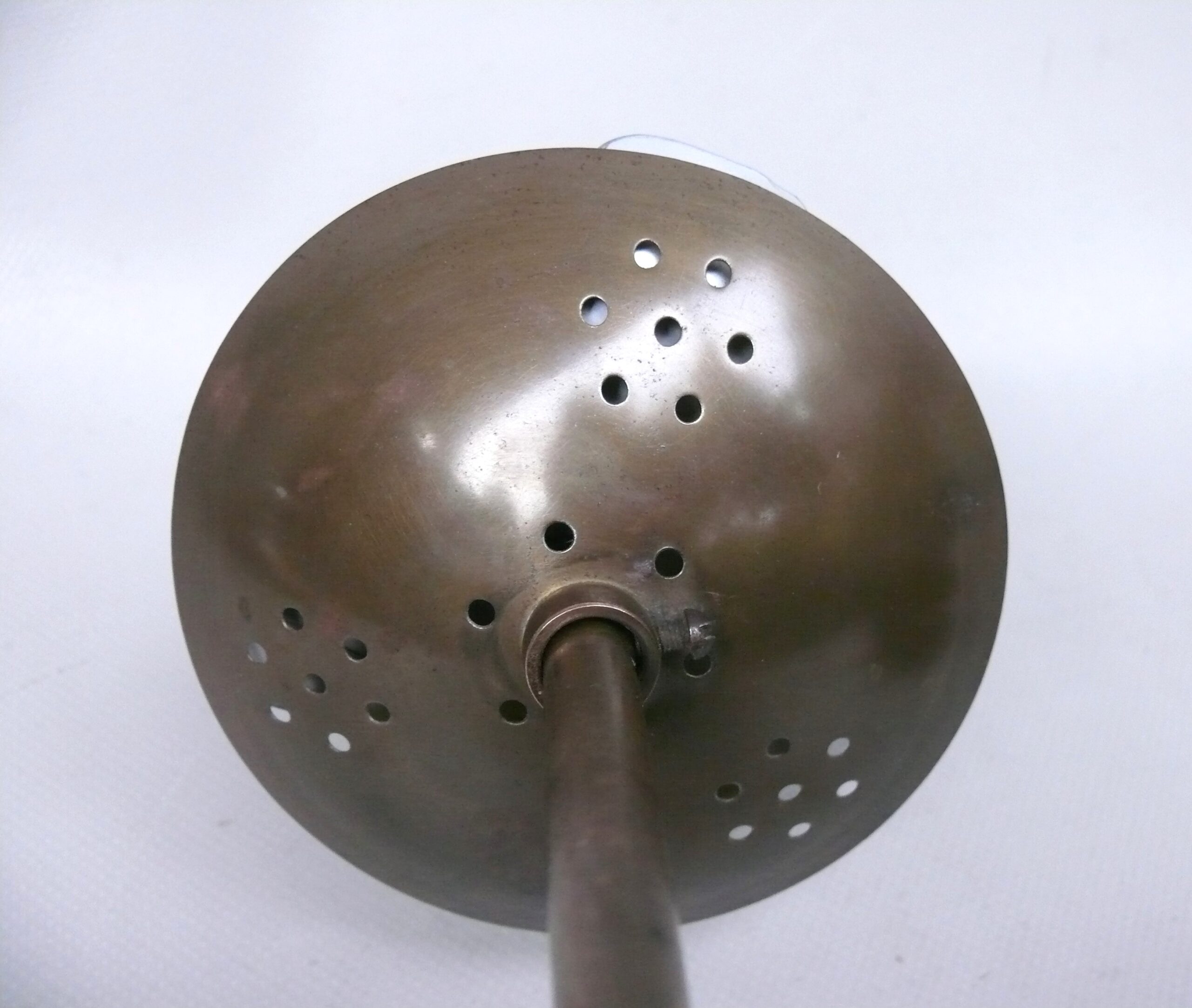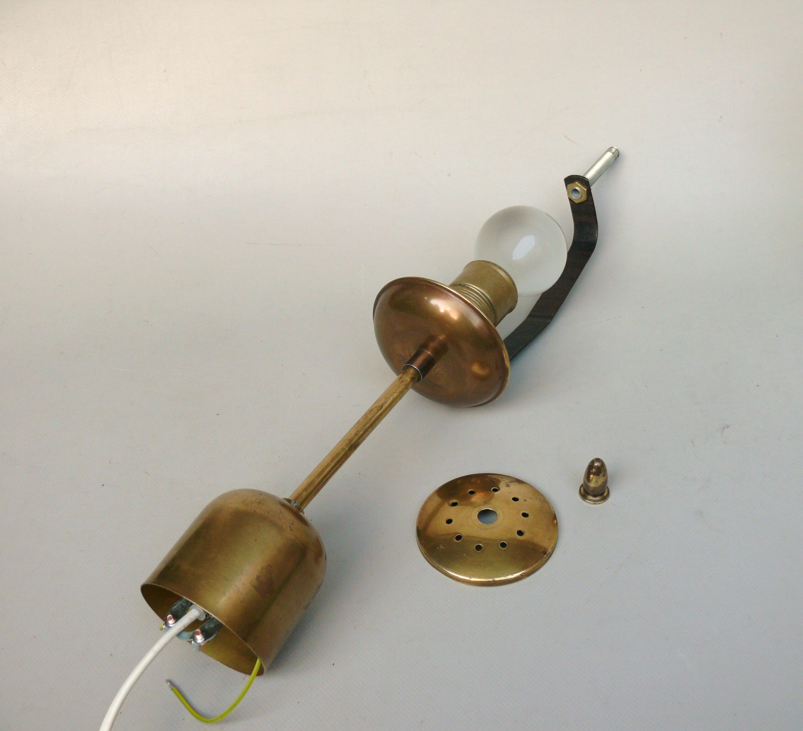 Die Halterung (Mönchskappe), der Abschlußdeckel unten sowie der Deckenbaldachin sind aus Messing.