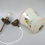 Eine seltene Wandleuchte für ein Kinderzimmer mit dem Motiv „Hans im Glück“, bekannt aus der Märchensammlung der Gebrüder Grimm, hergestellt in den 50er Jahren.