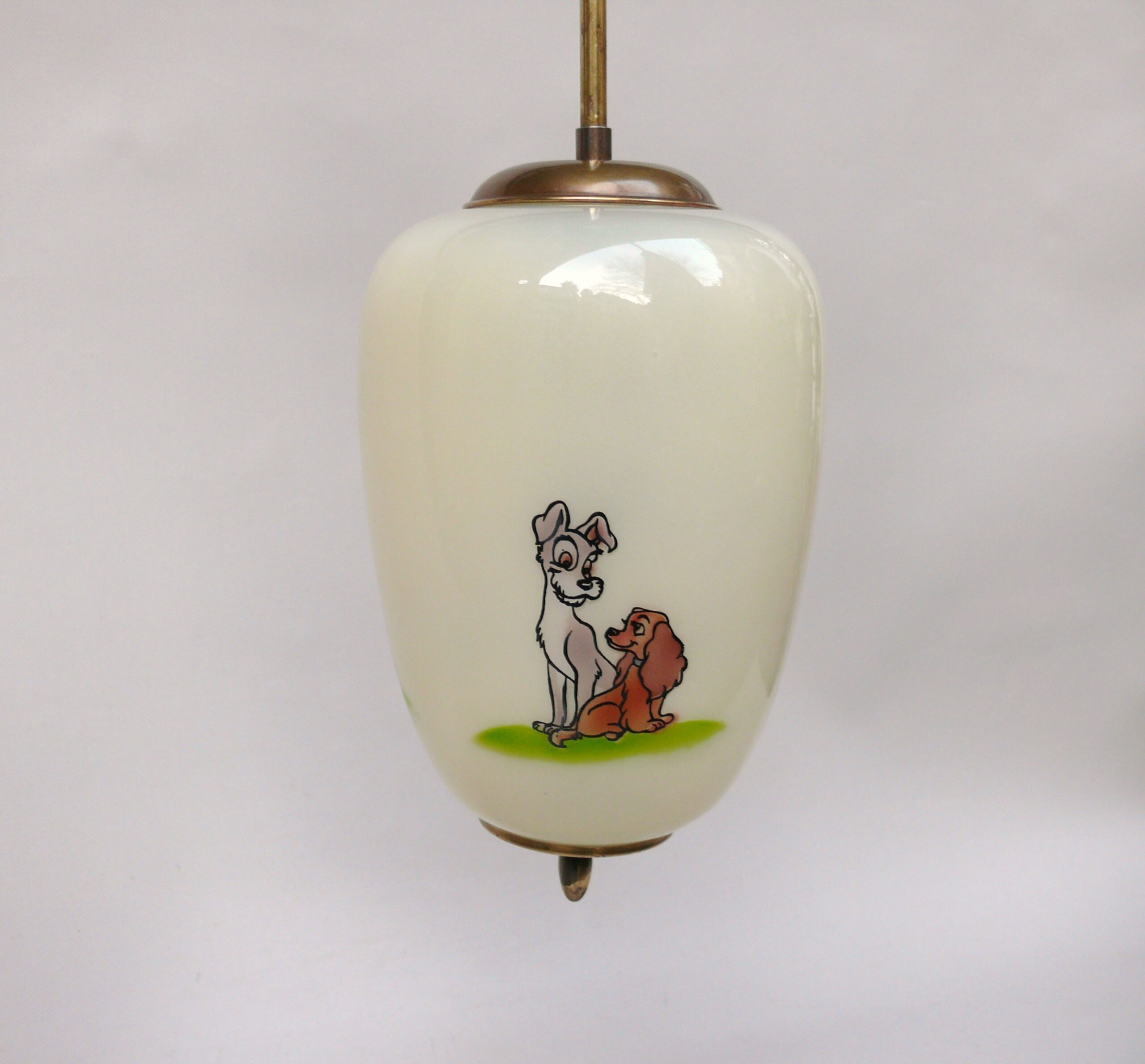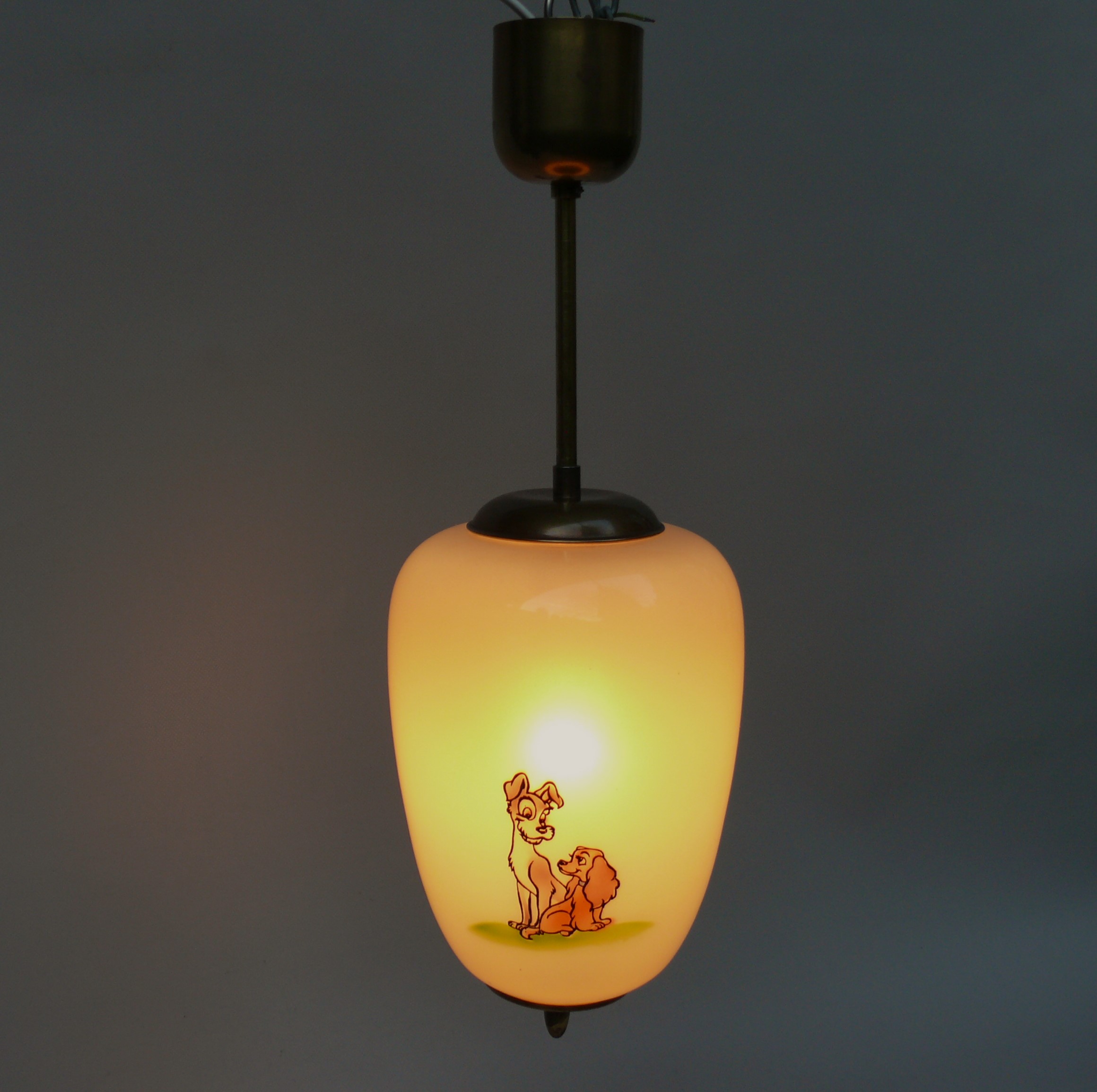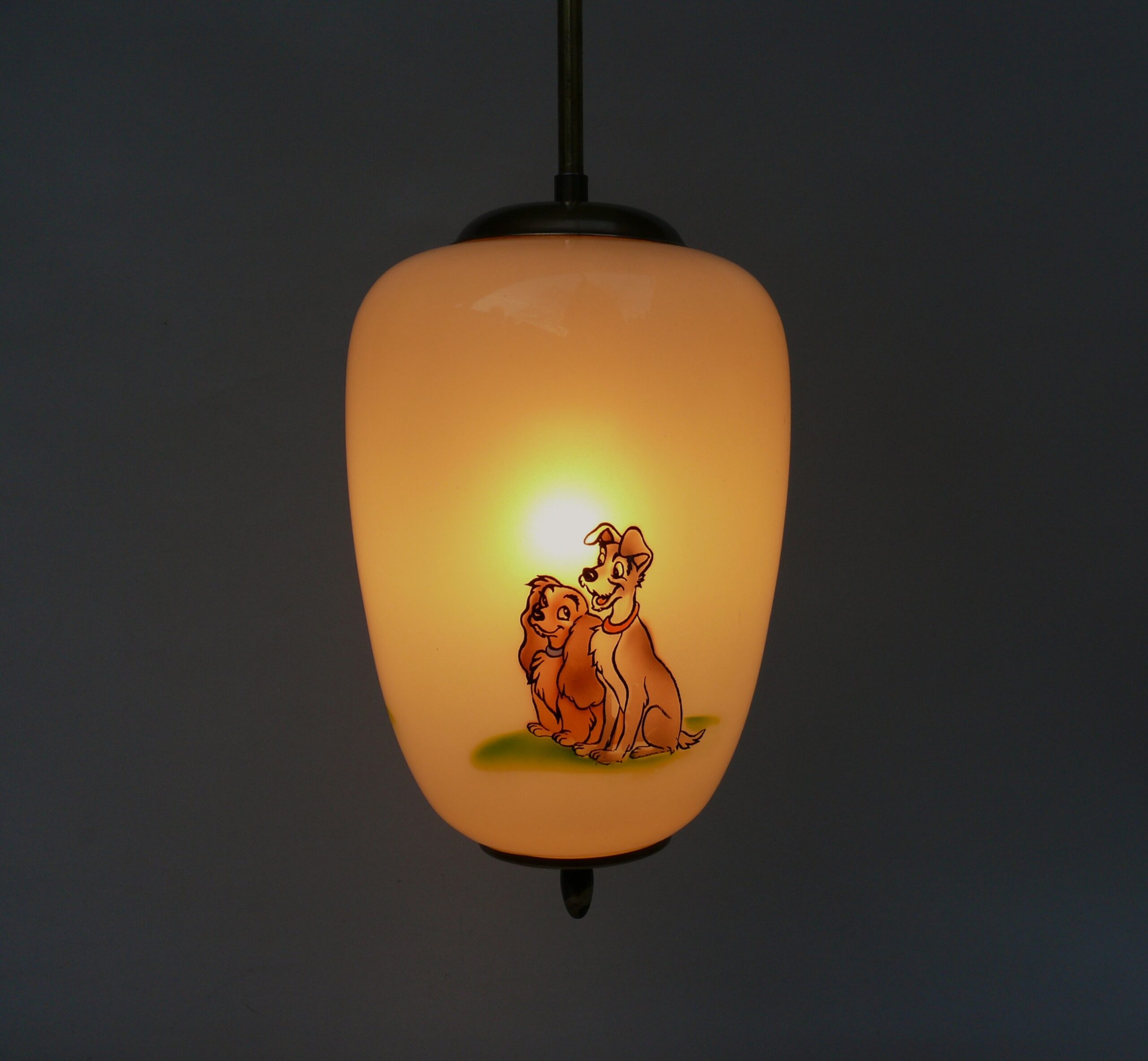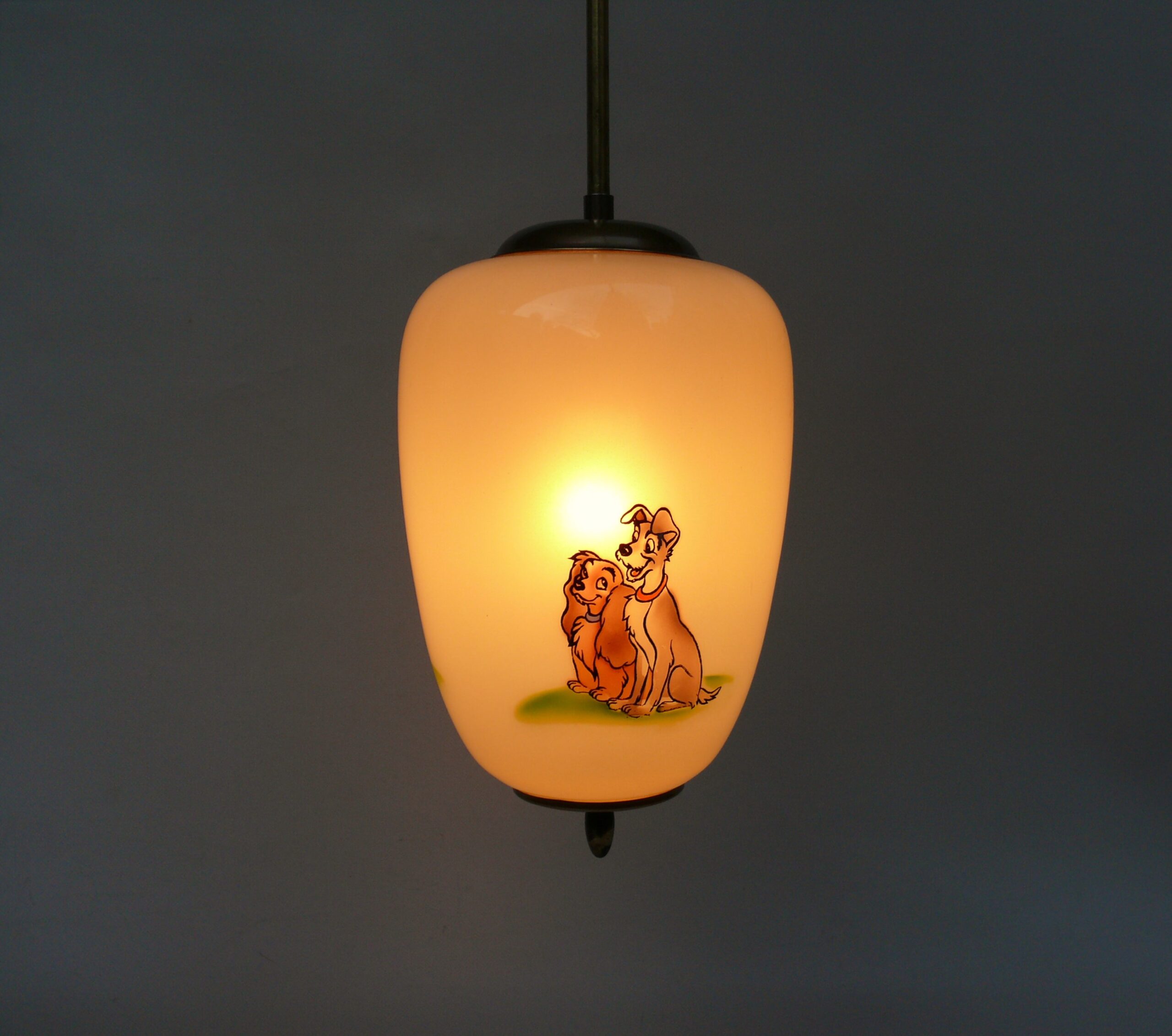 KI13 – Deckenleuchte, 50er Jahre, Doria, Walt Disney – Susi, Strolch und Jock, Deutschland