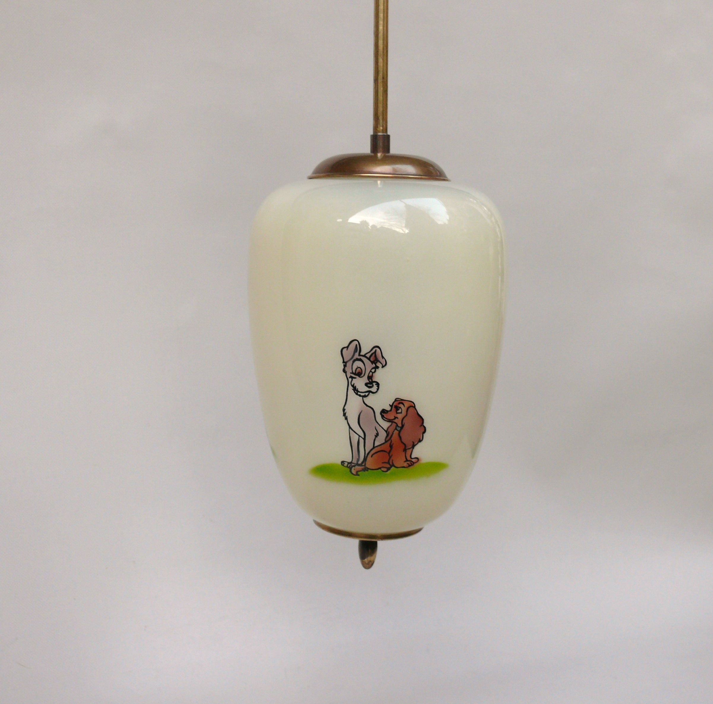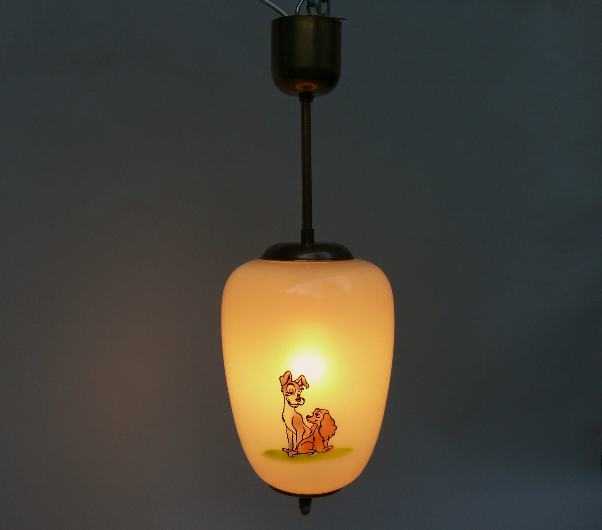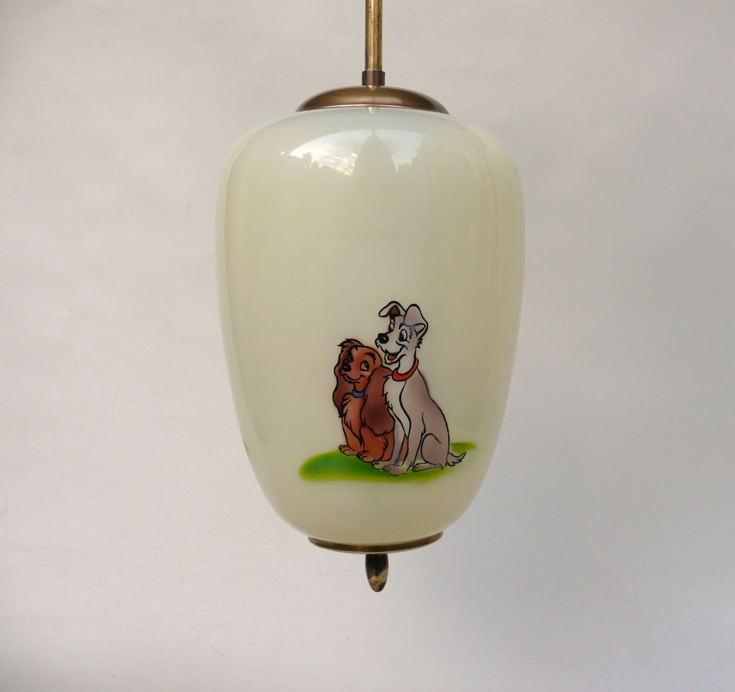KI13 – Deckenleuchte, 50er Jahre, Doria, Walt Disney – Susi, Strolch und Jock, Deutschland