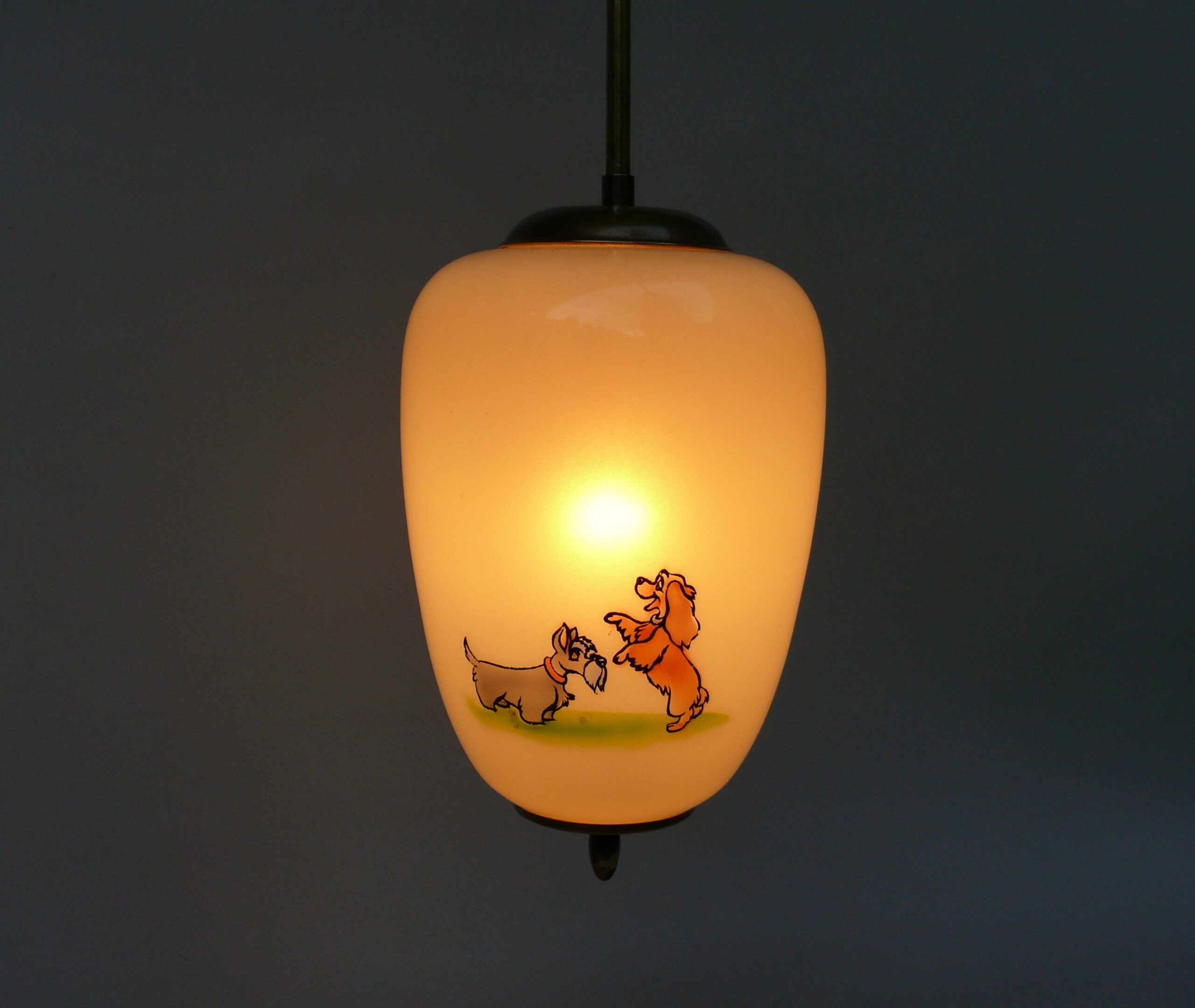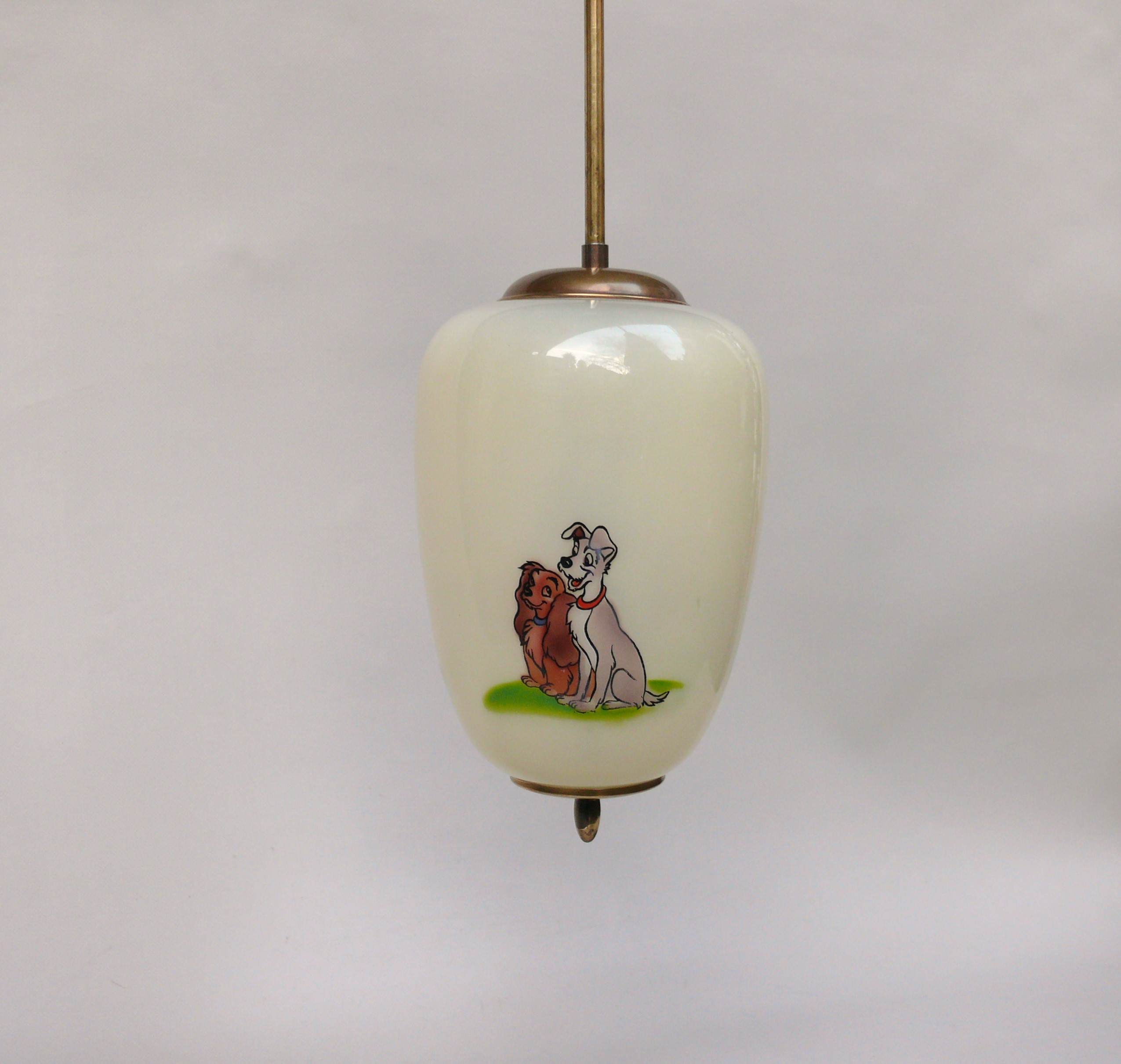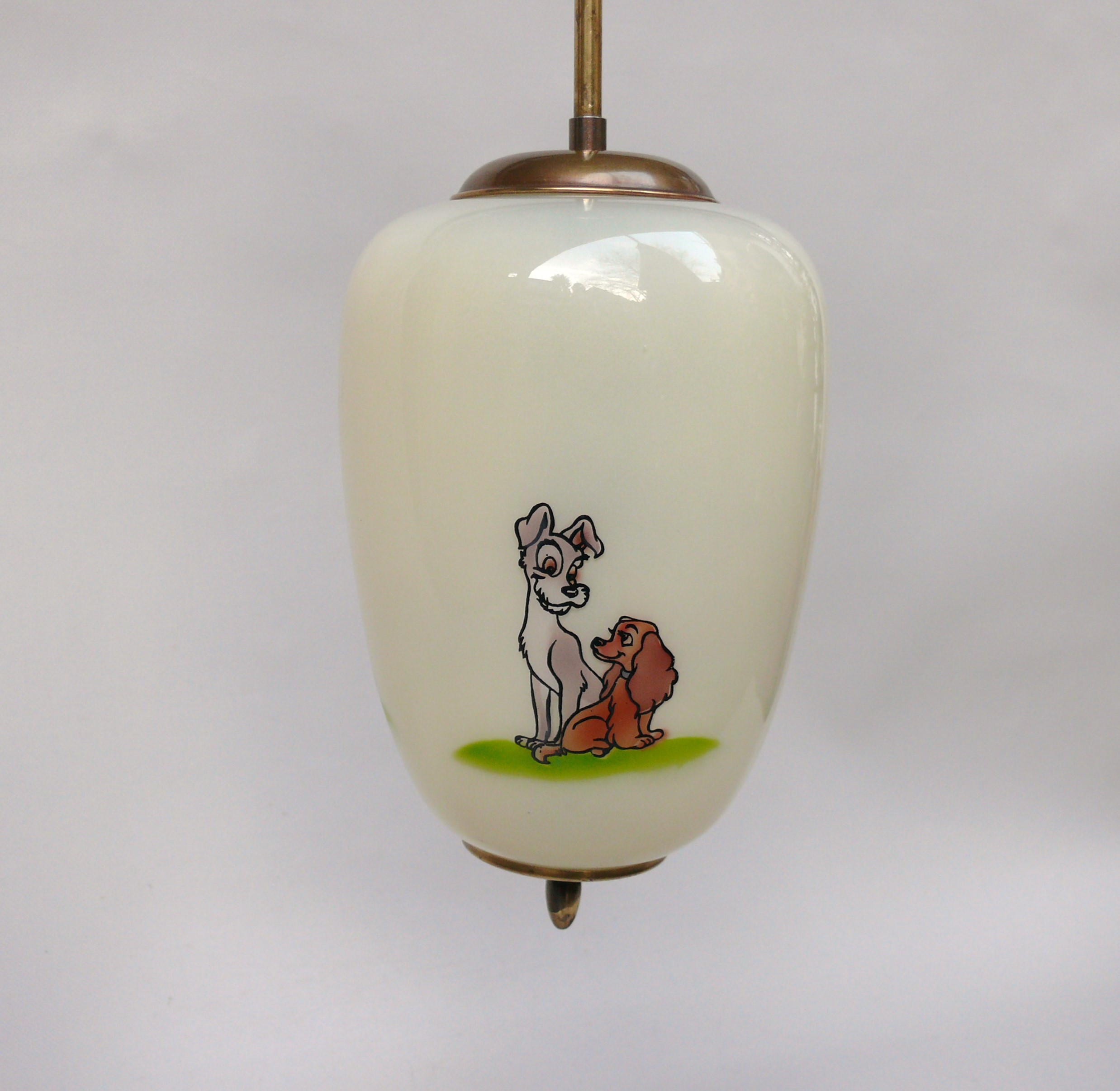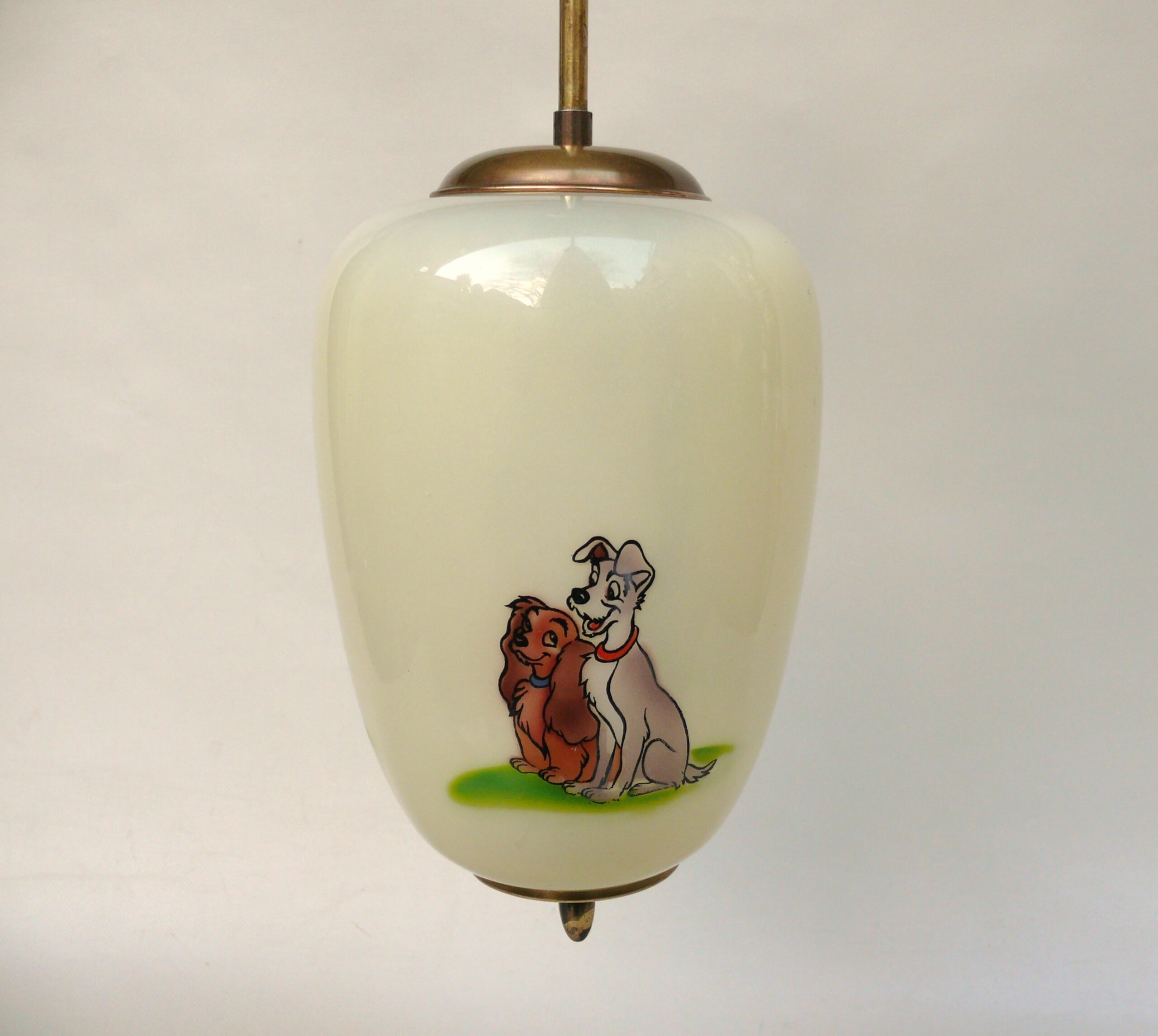 KI13 – Deckenleuchte, 50er Jahre, Doria, Walt Disney – Susi, Strolch und Jock, Deutschland