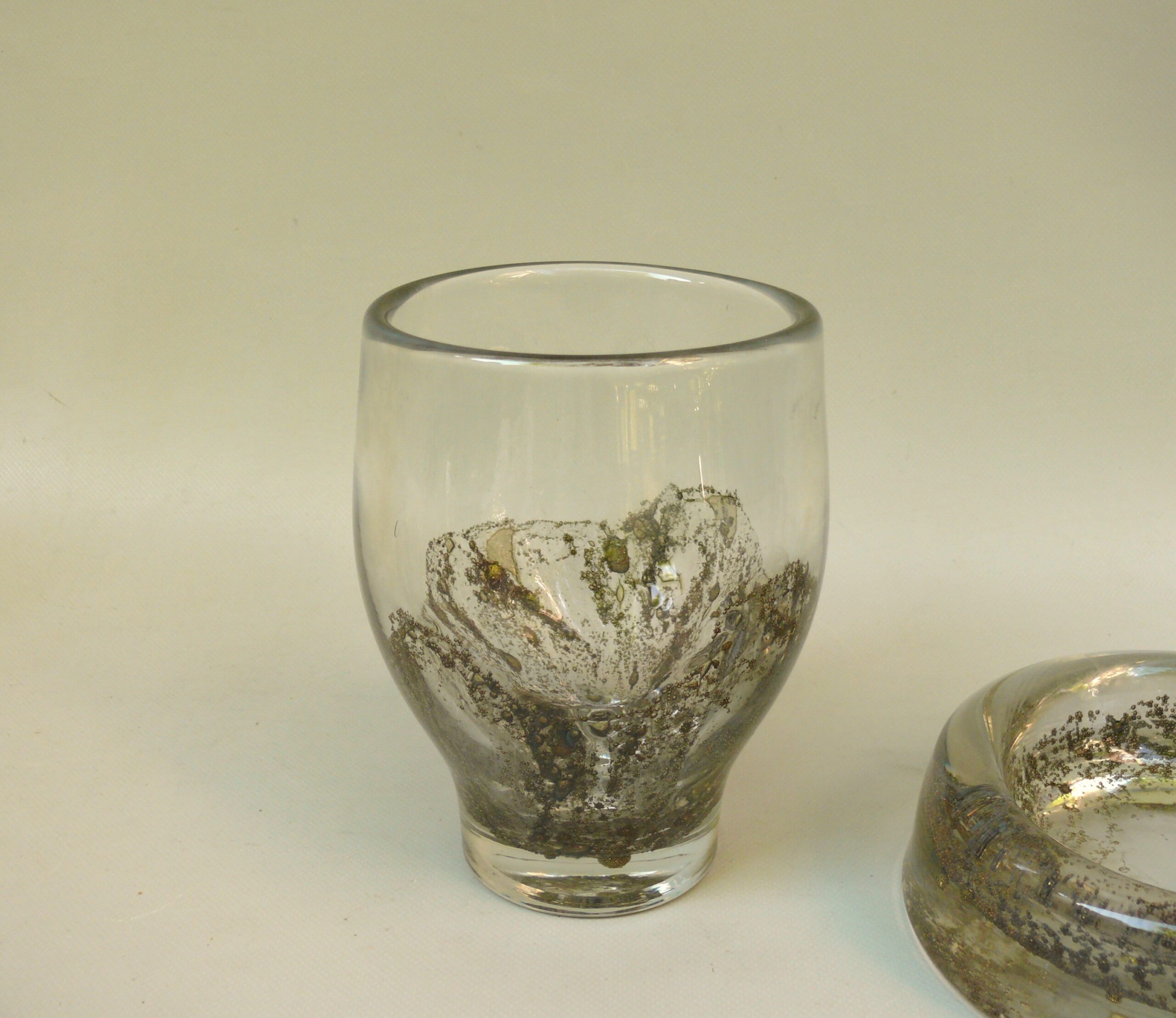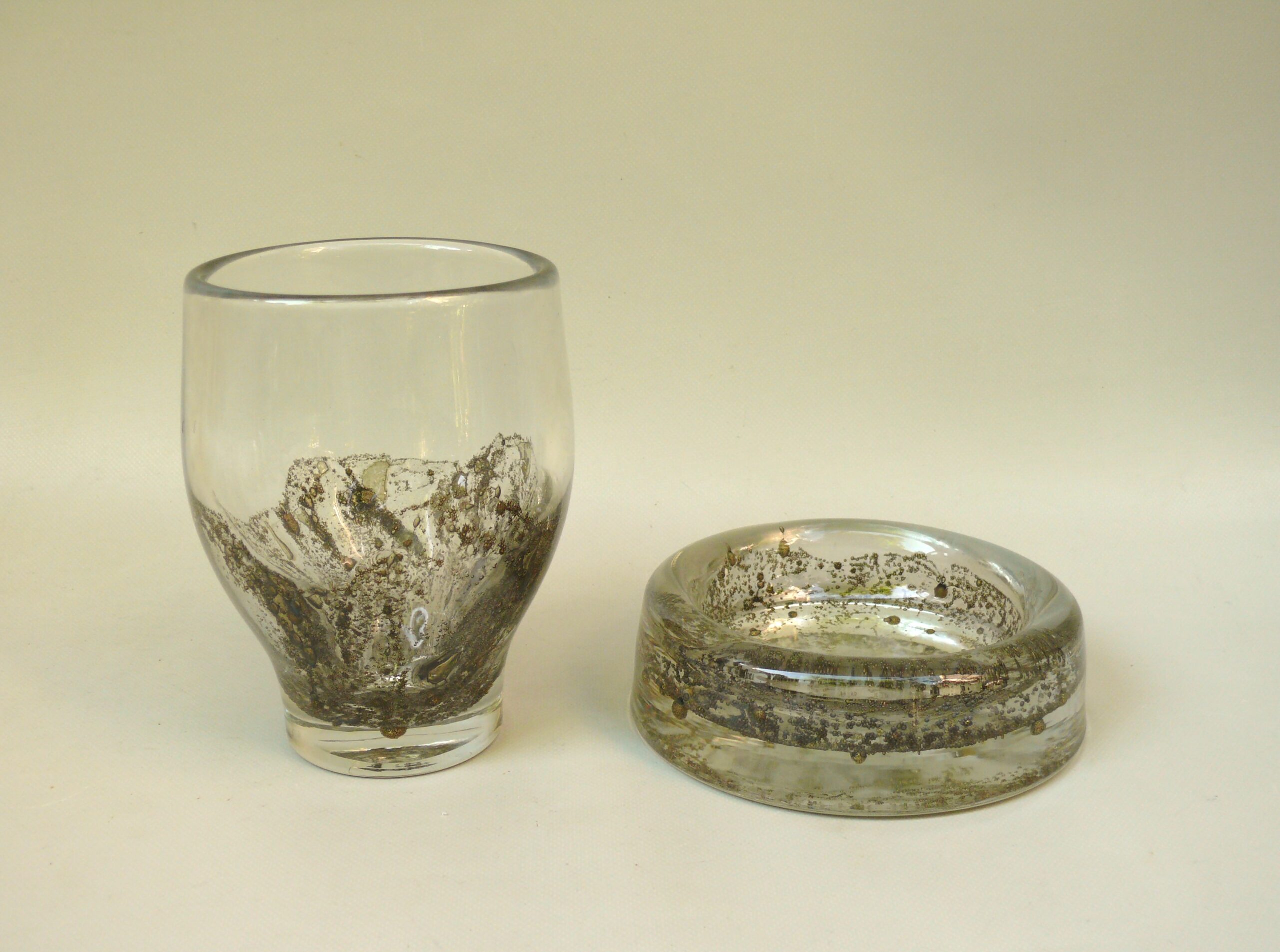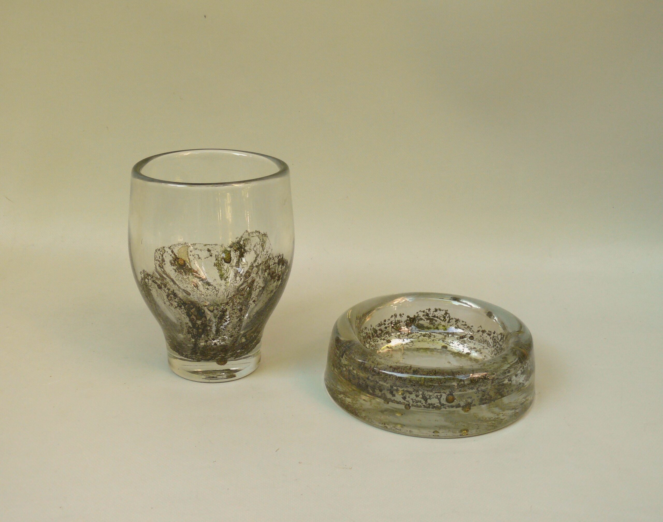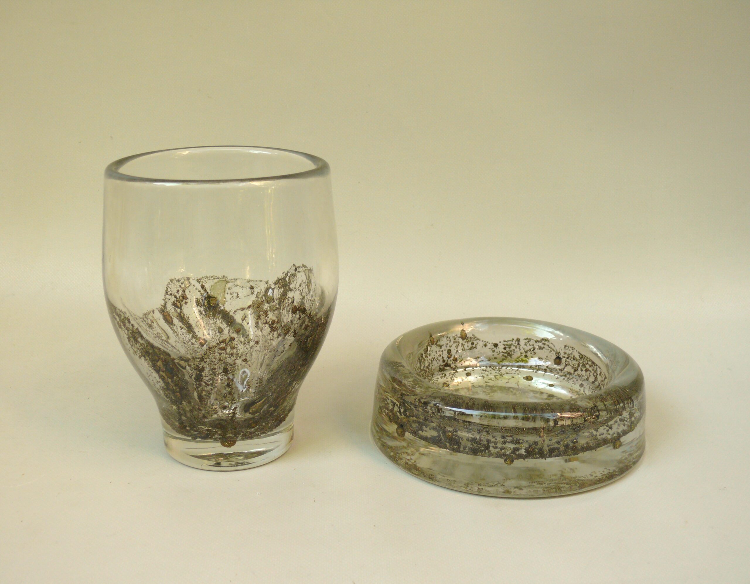 BV63 – Vase und Schale, Peill & Putzler, Deutschland, 70er Jahre, Klarglas mit goldfarbenen Einschlüssen