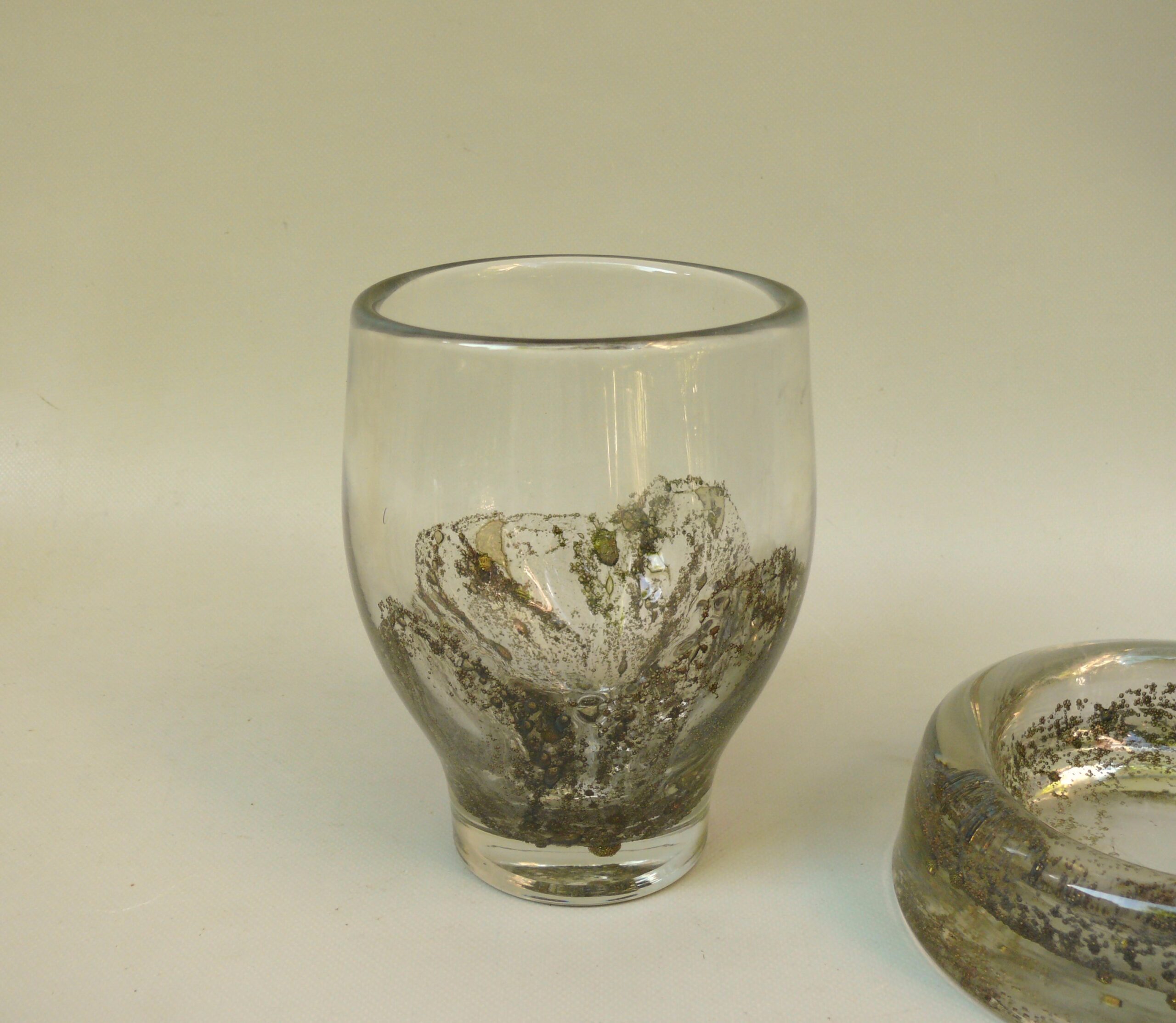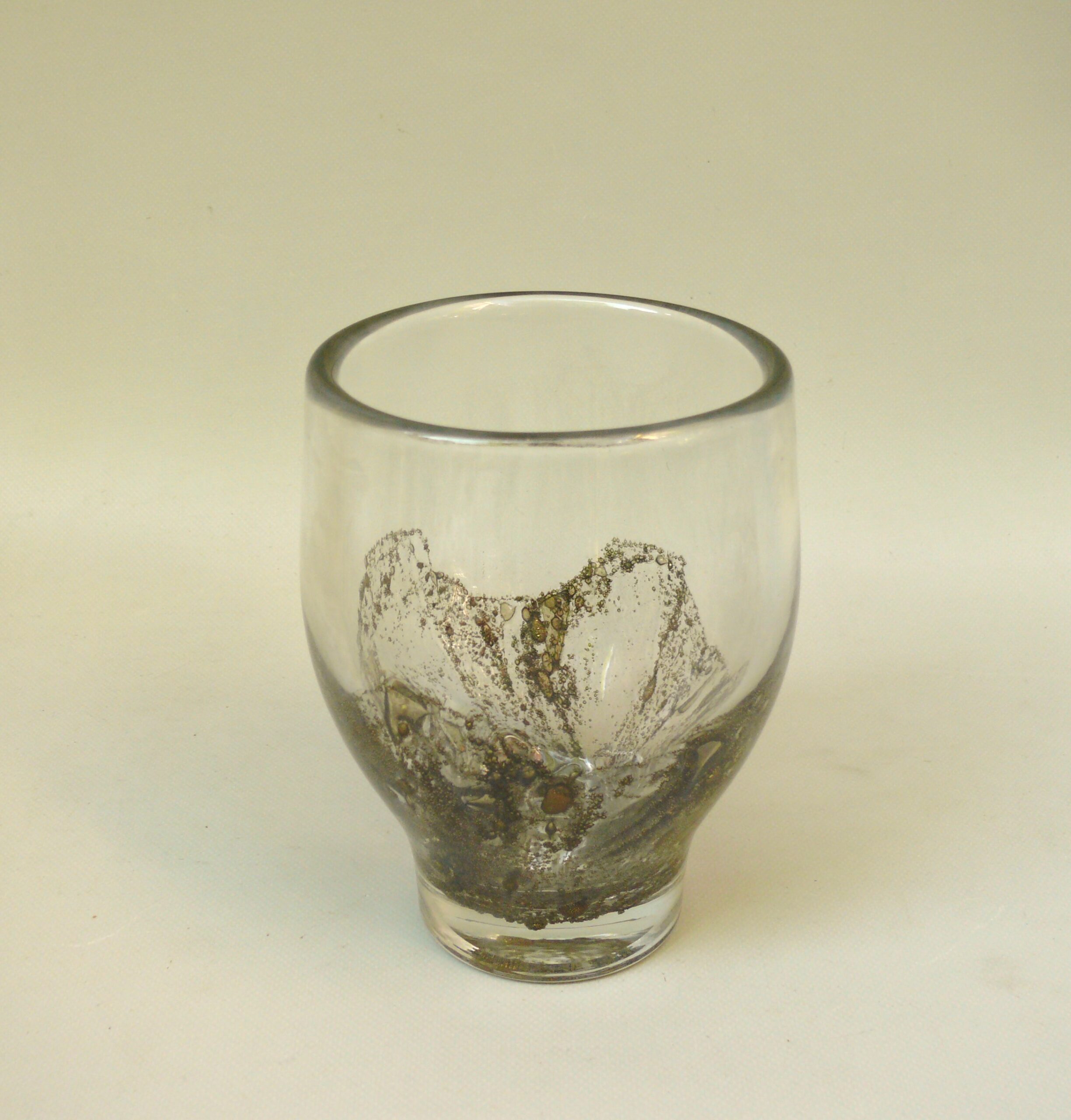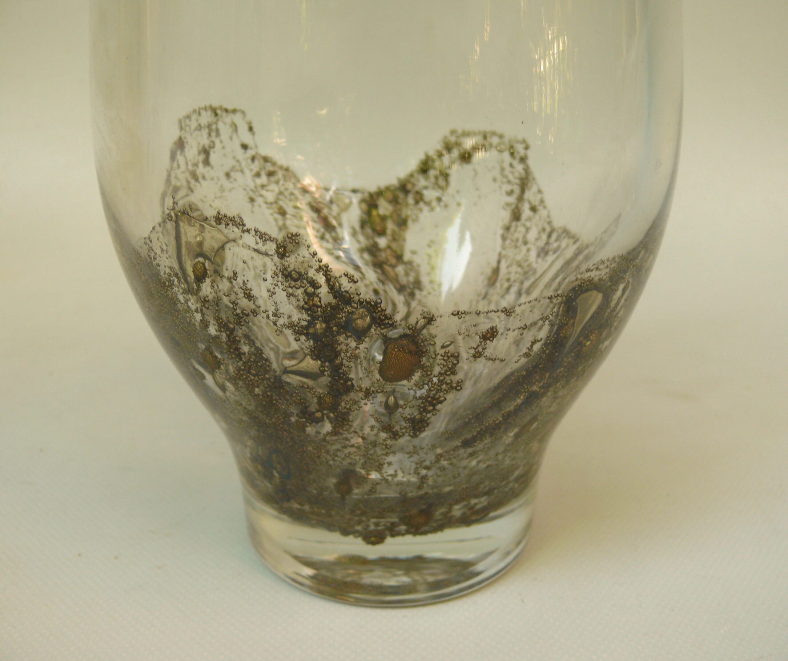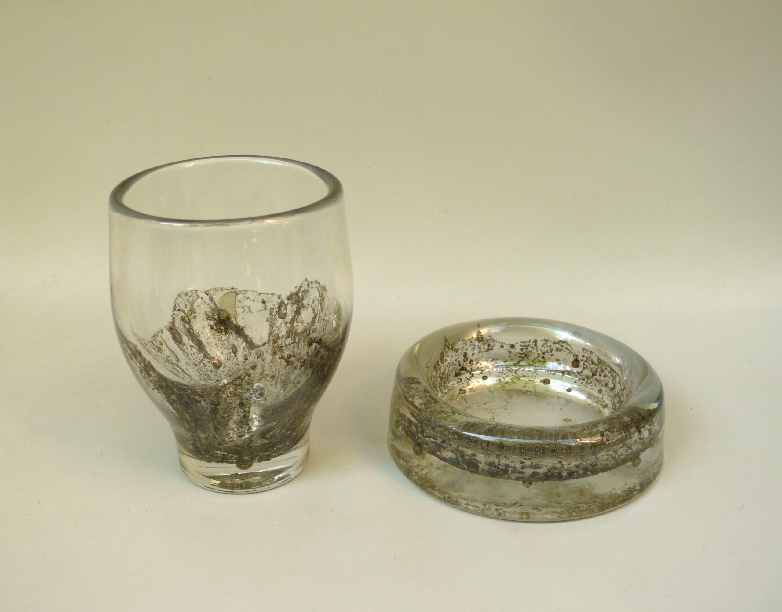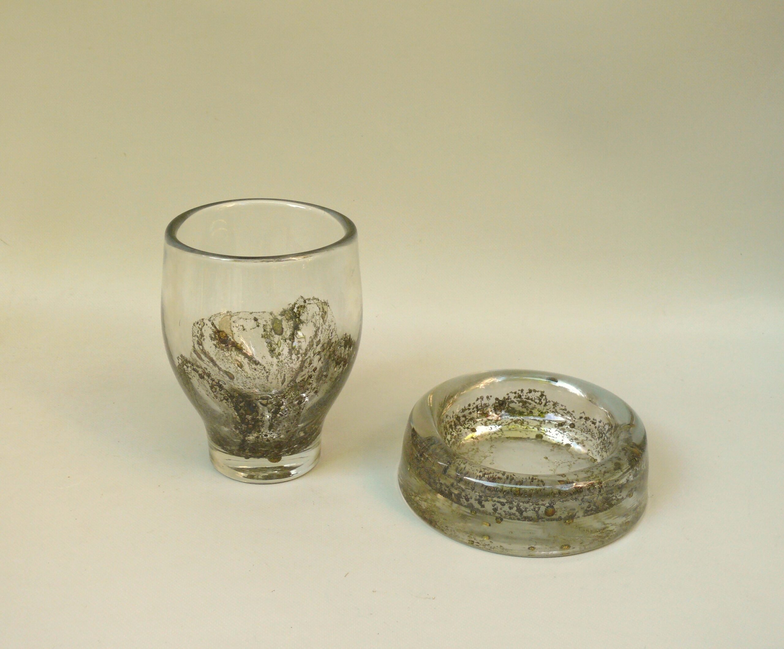 BV63 – Vase und Schale, Peill & Putzler, Deutschland, 70er Jahre, Klarglas mit goldfarbenen Einschlüssen