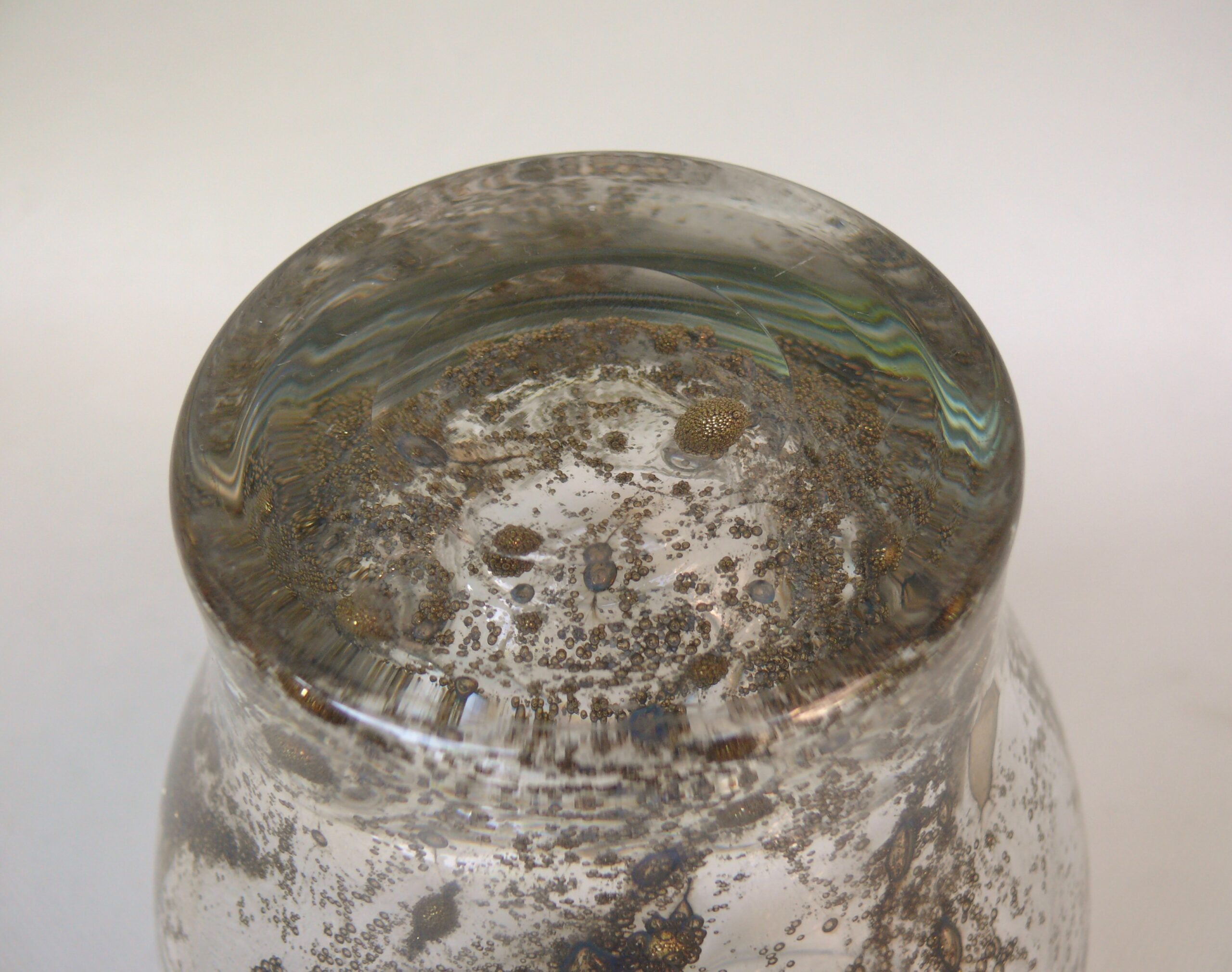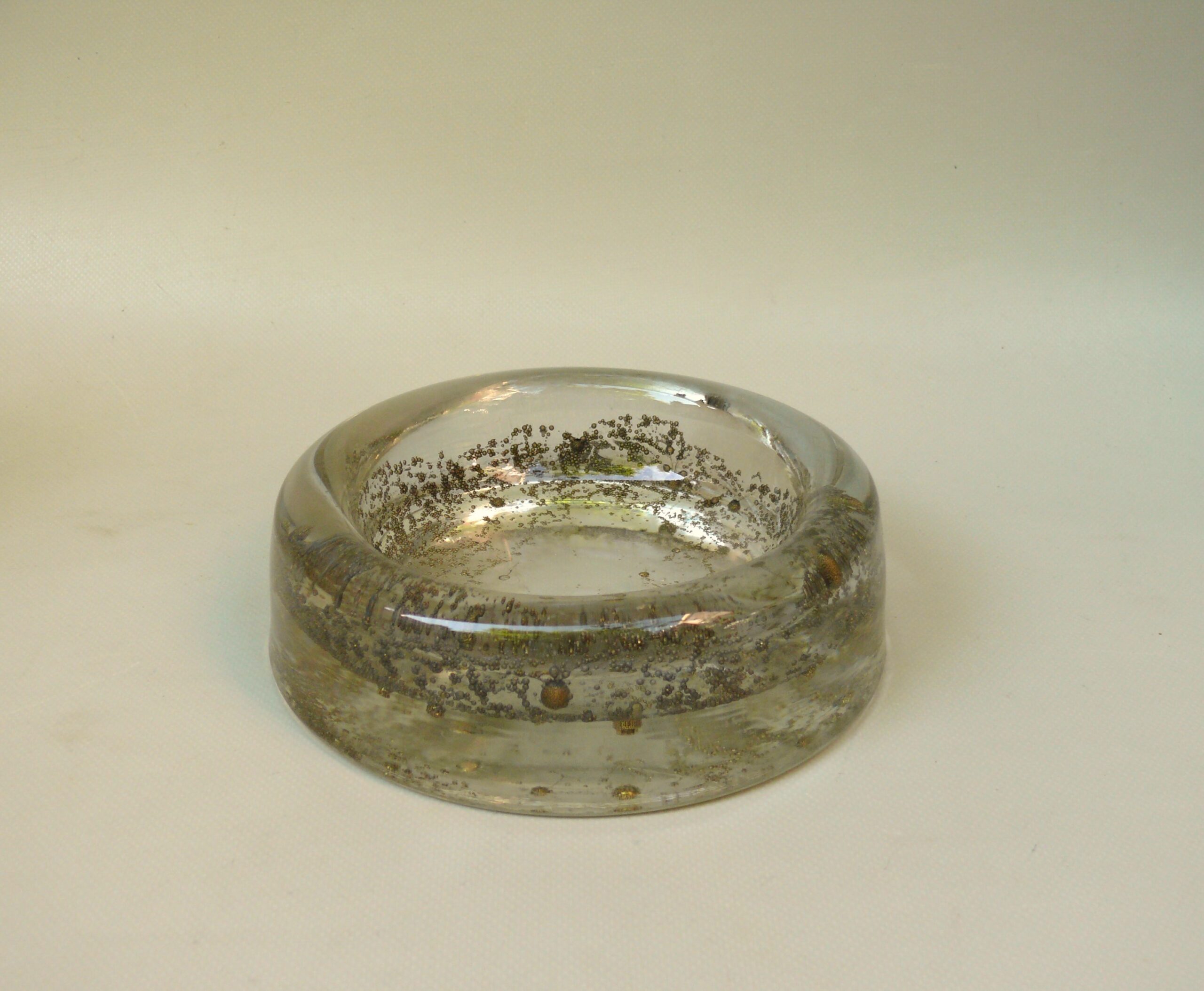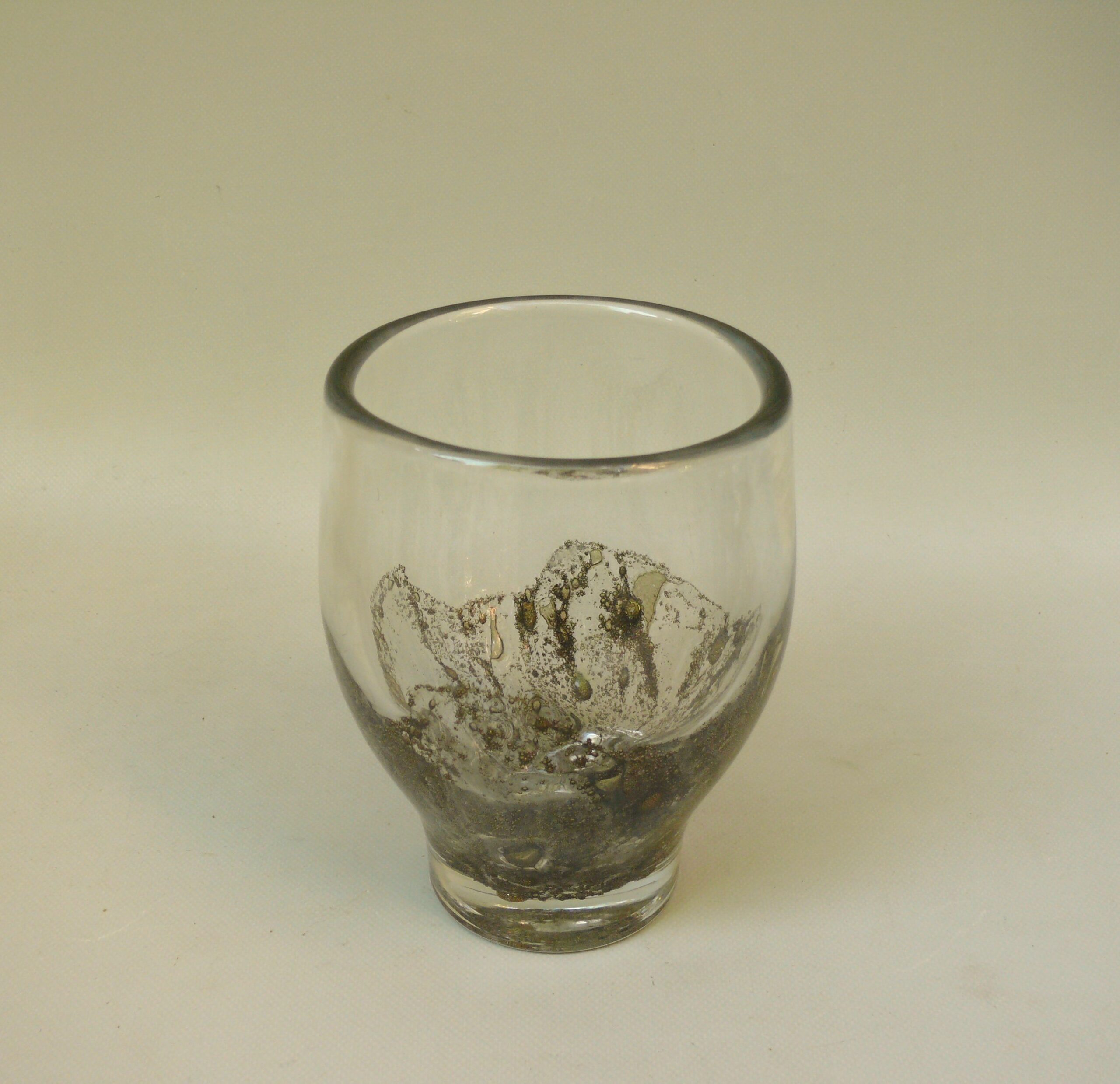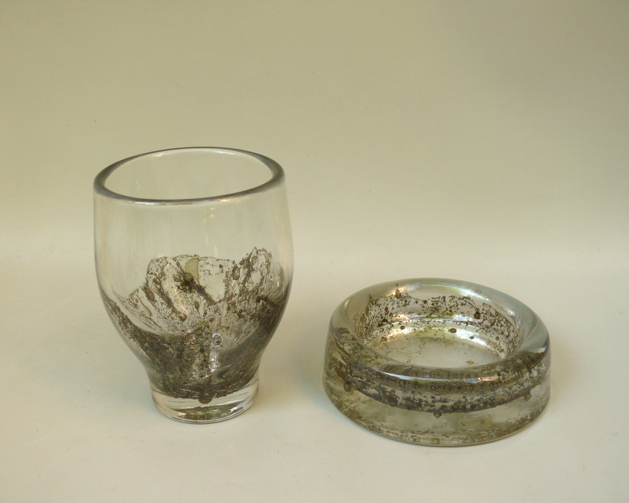 BV63 – Vase und Schale, Peill & Putzler, Deutschland, 70er Jahre, Klarglas mit goldfarbenen Einschlüssen