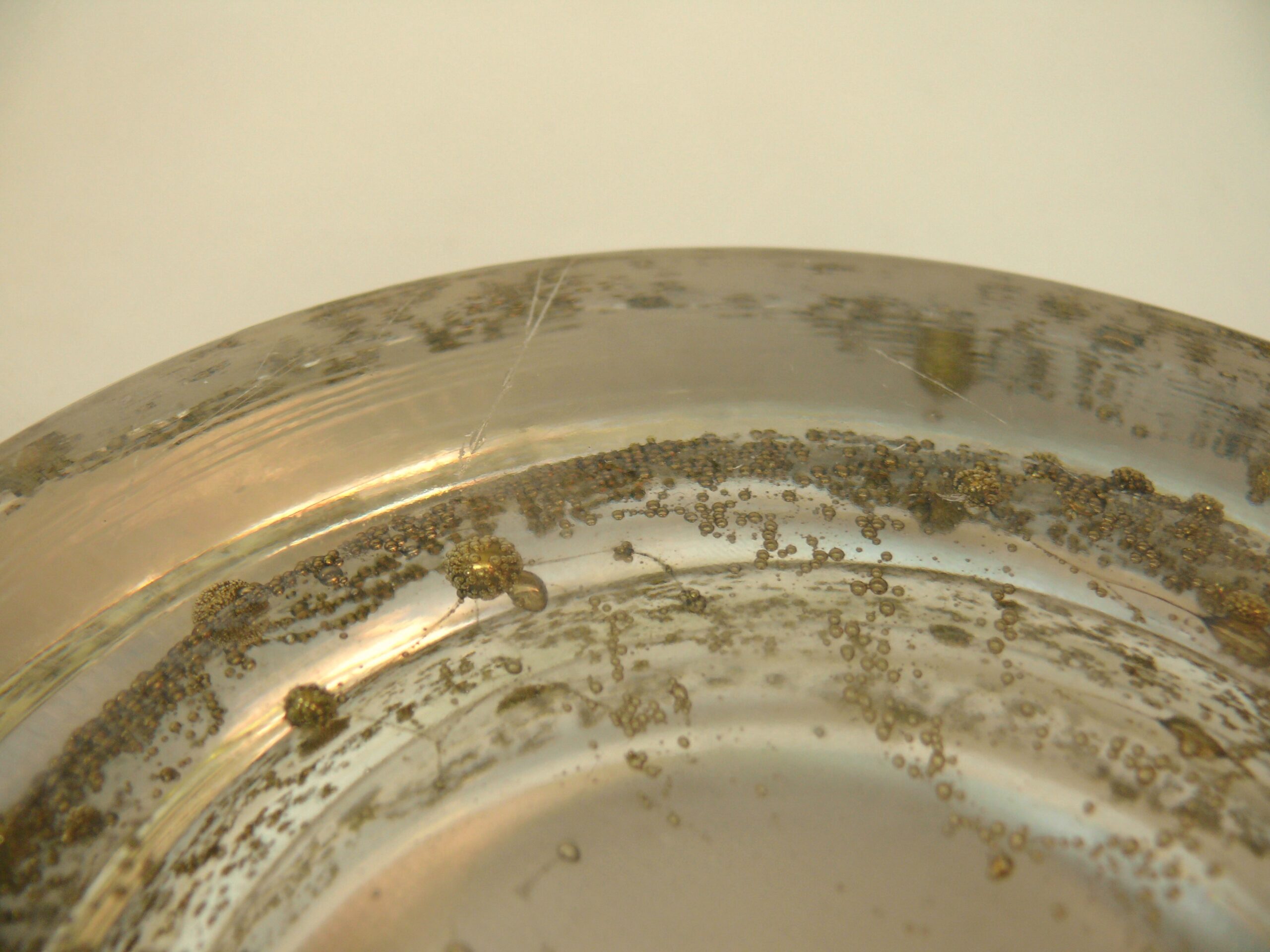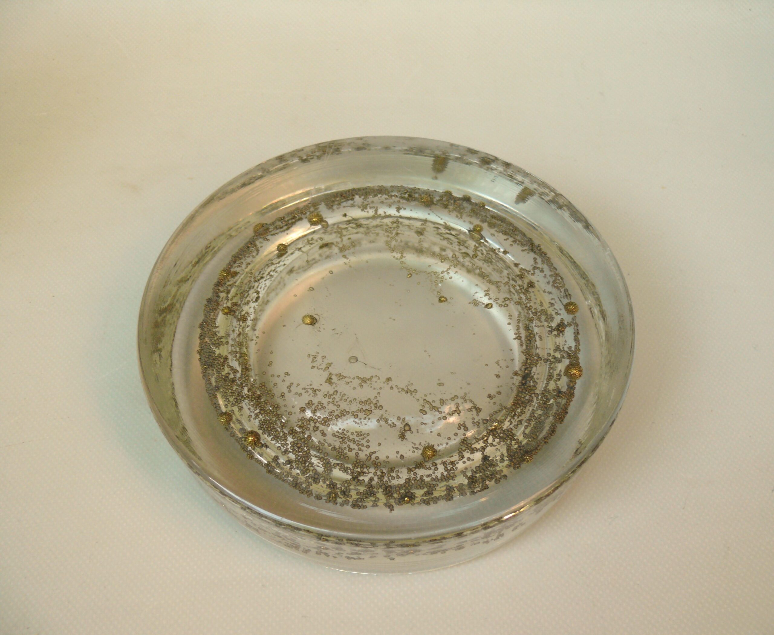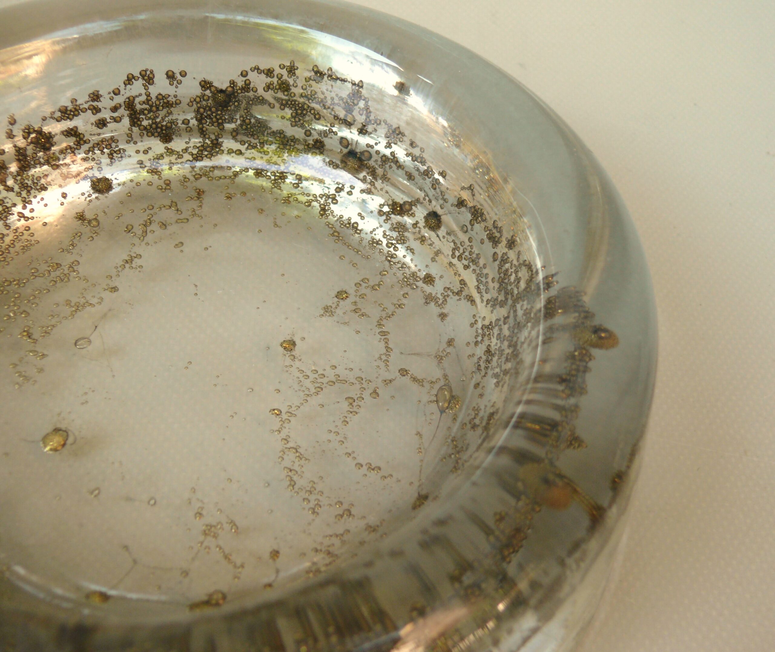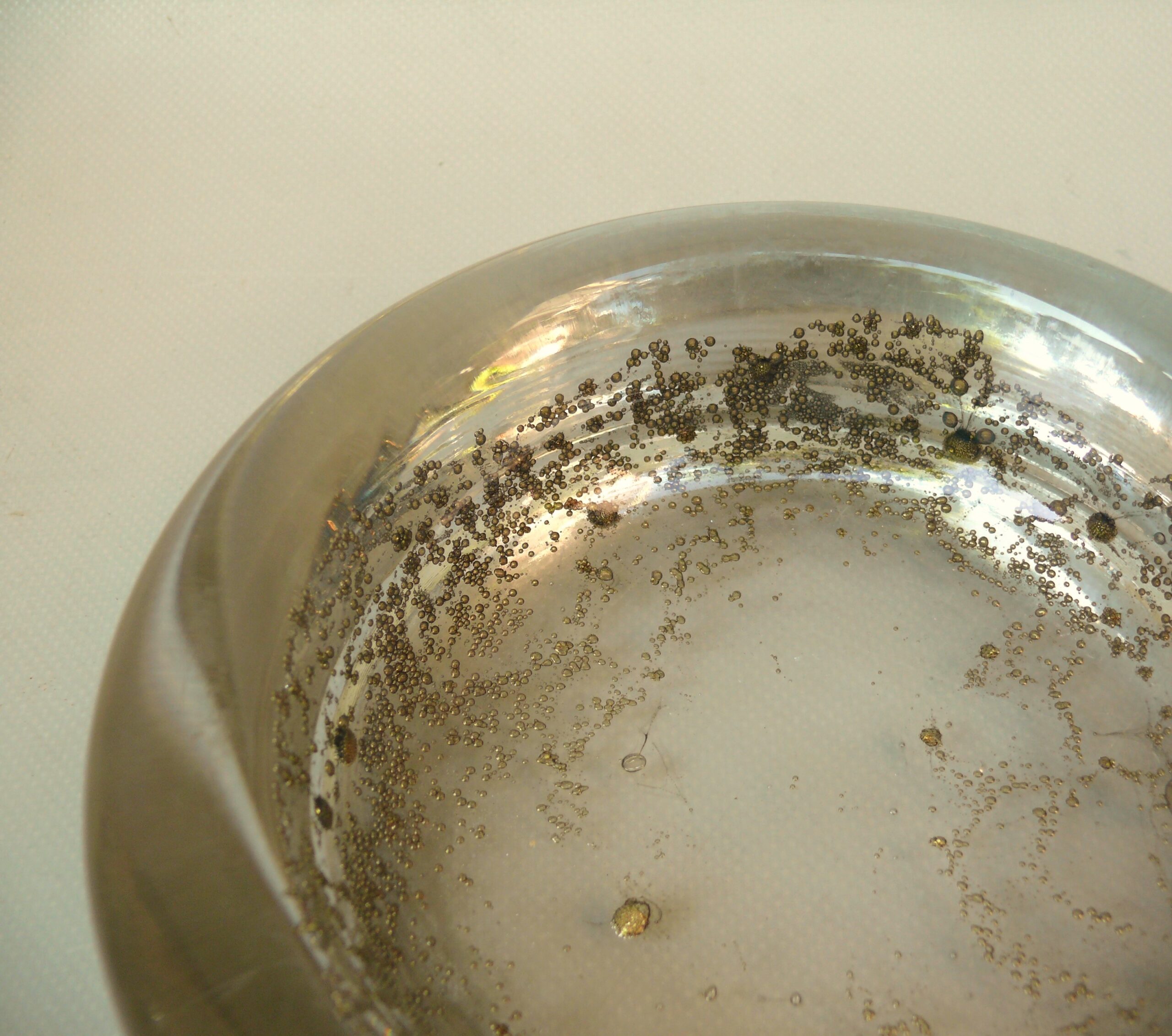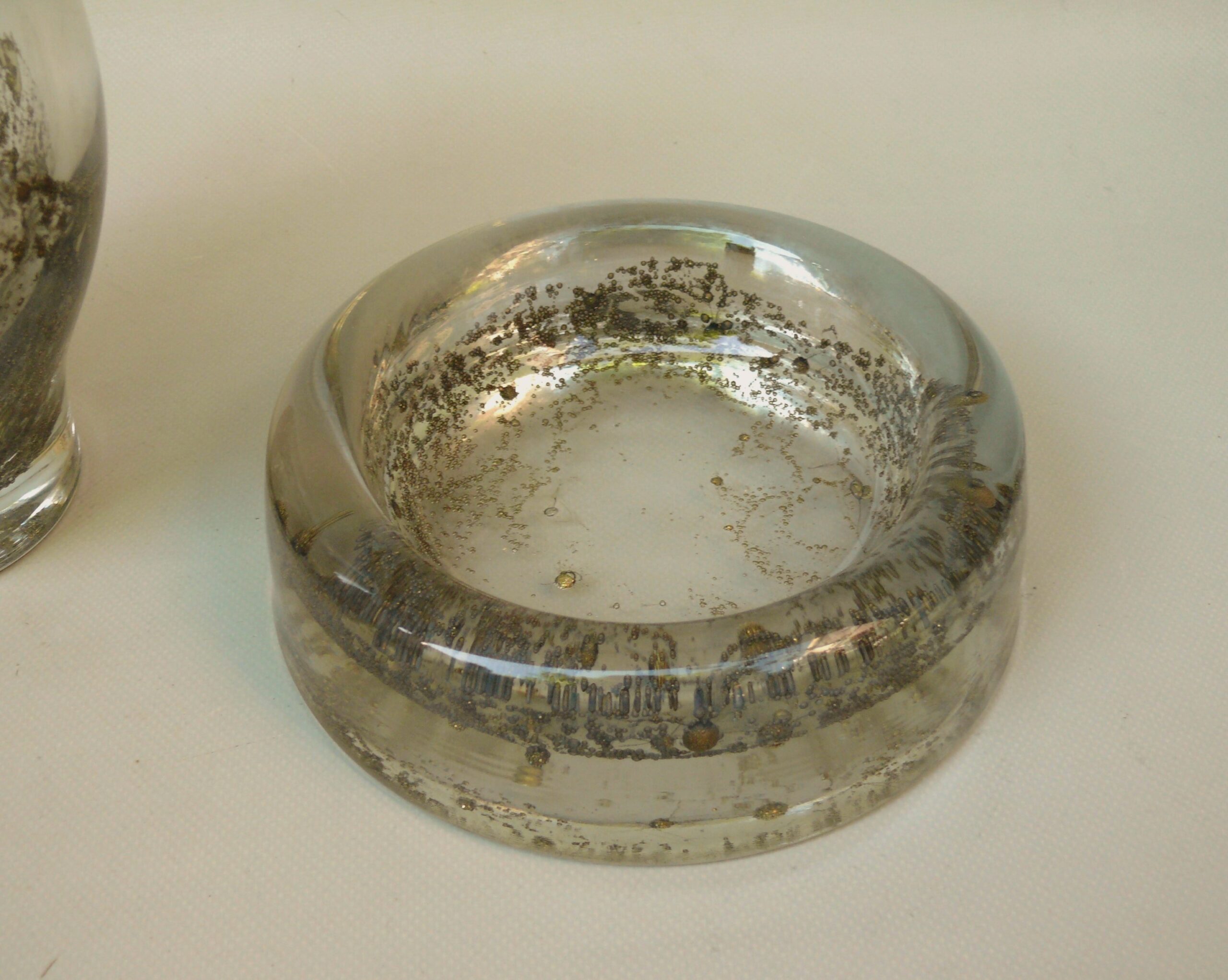 BV63 – Vase und Schale, Peill & Putzler, Deutschland, 70er Jahre, Klarglas mit goldfarbenen Einschlüssen
