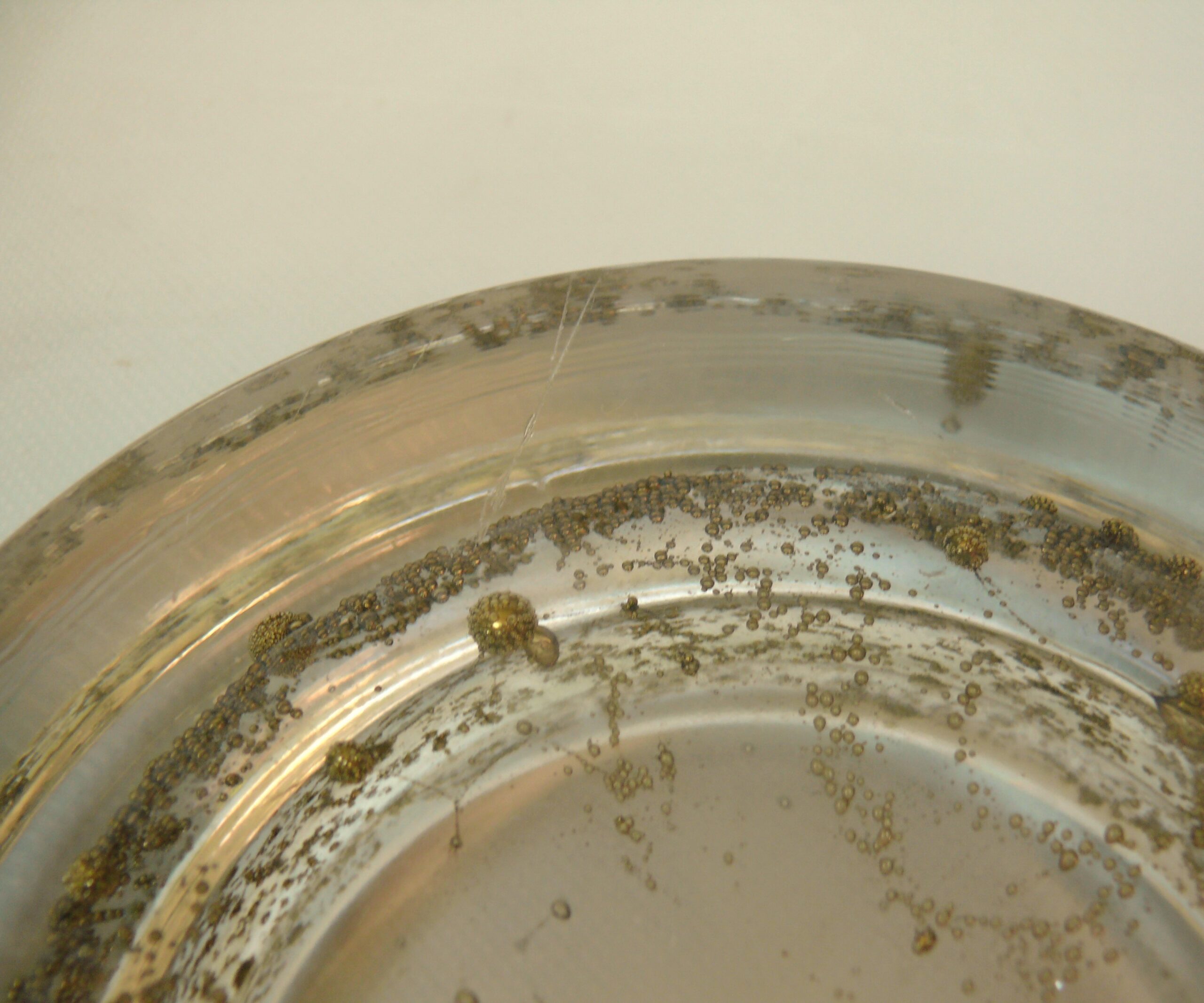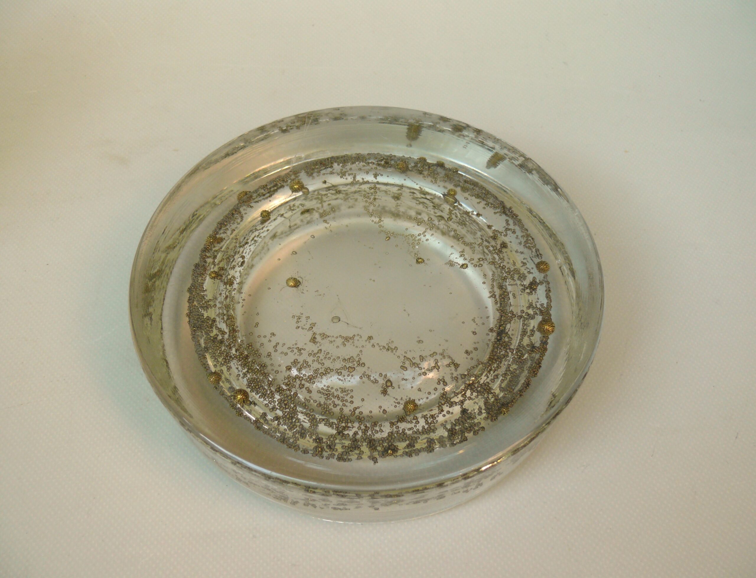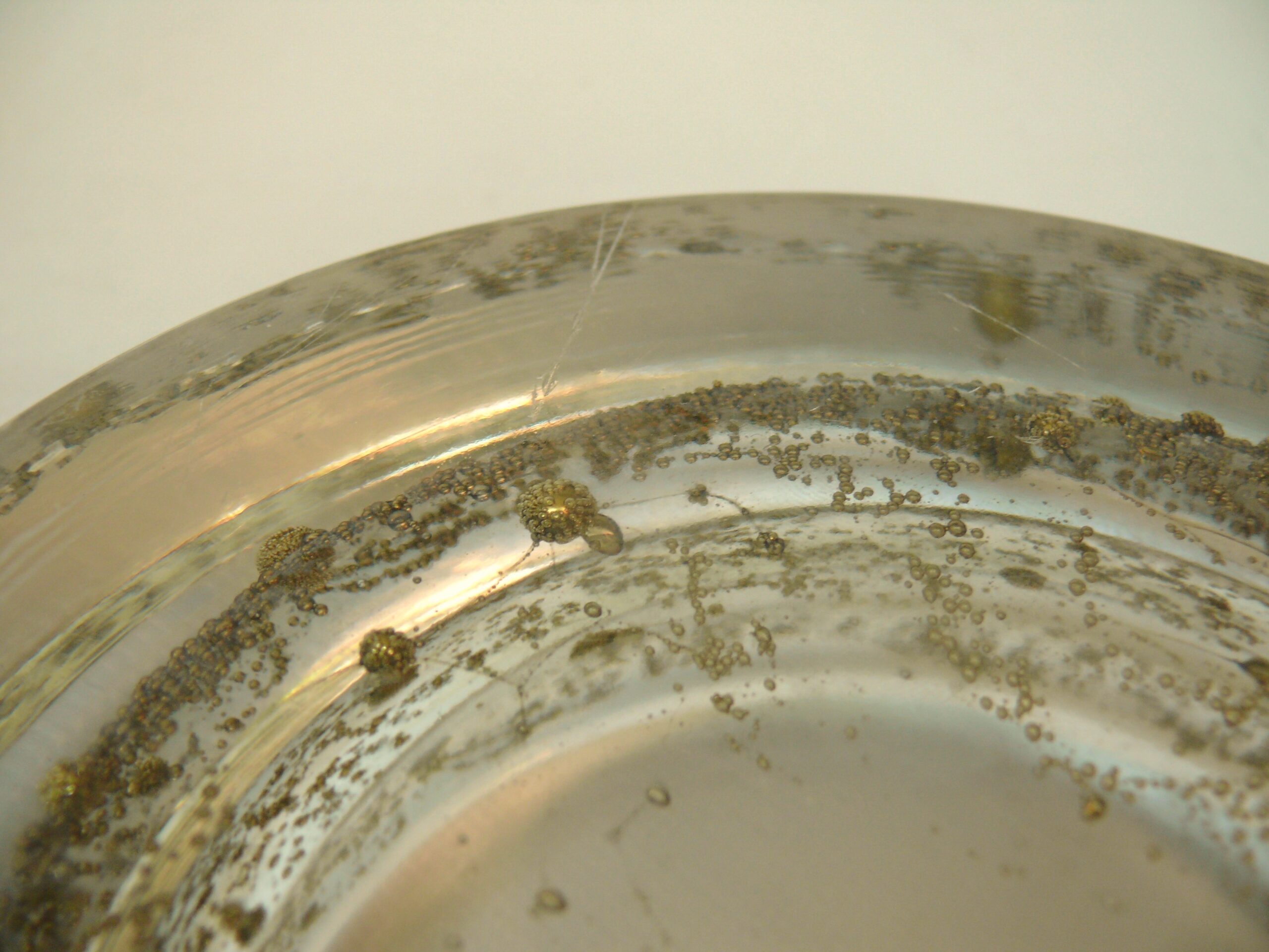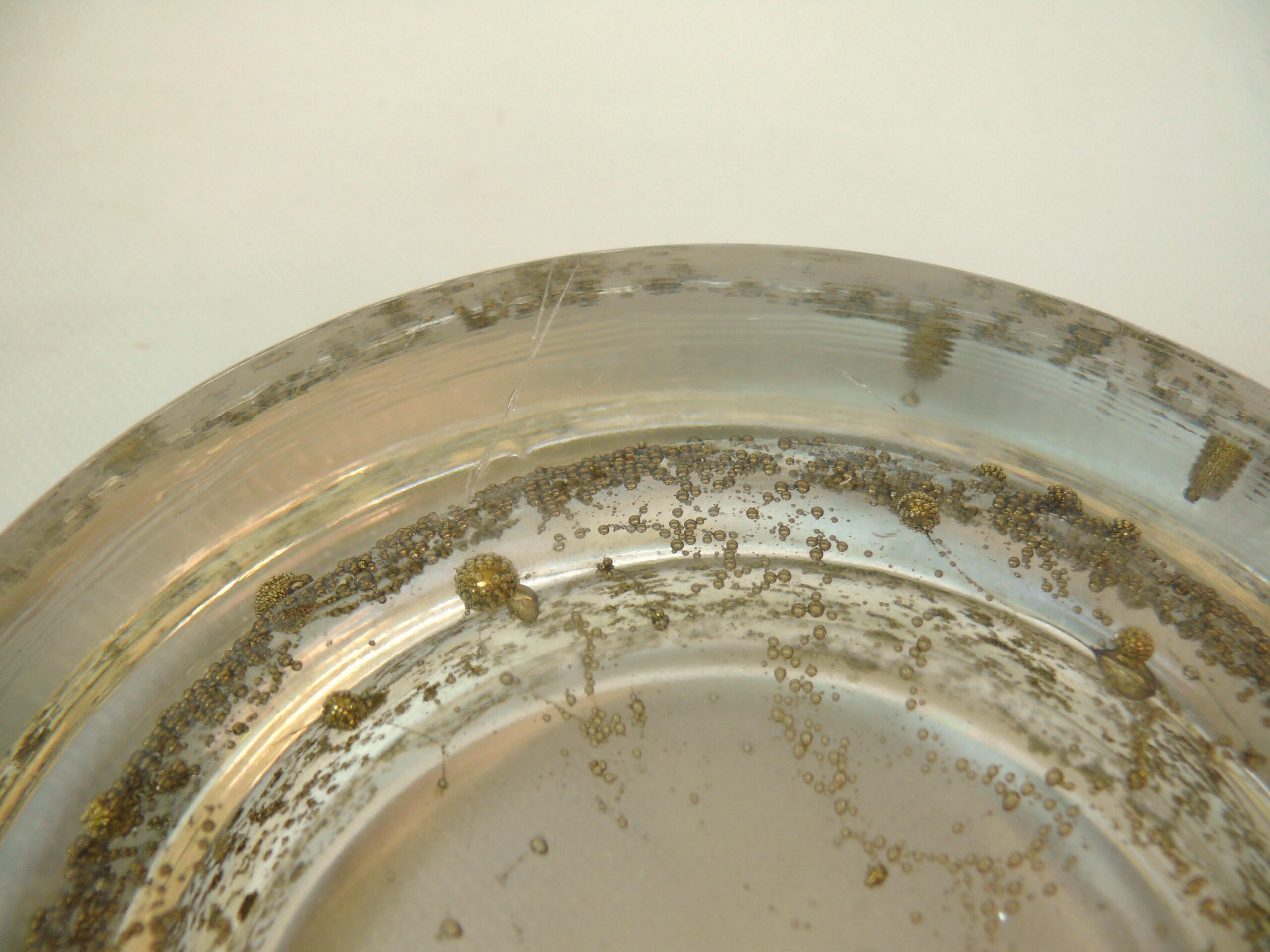 BV63 – Vase und Schale, Peill & Putzler, Deutschland, 70er Jahre, Klarglas mit goldfarbenen Einschlüssen