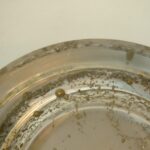 Die Patinierung der Bronze zeigt leichte Spuren der Zeit – hier im unteren Teil. Es sind stellenweise leichte Druckstellen vorhanden.