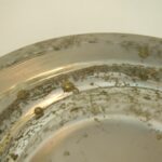 Sie zeigt lediglich geringe Spuren der Zeit. Es sind einige fertigungsbedingte Druckstellen an den Kanten vorhanden.