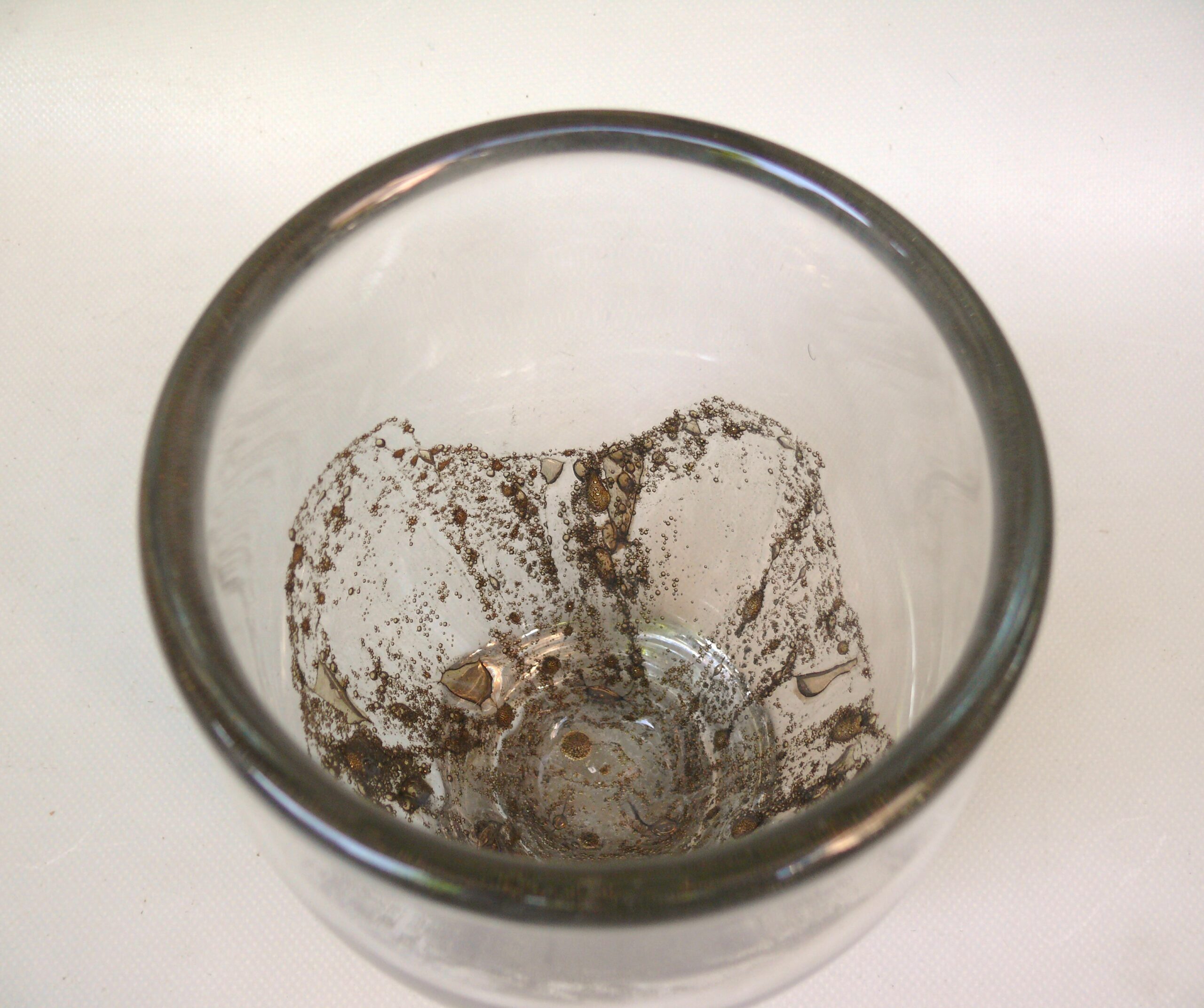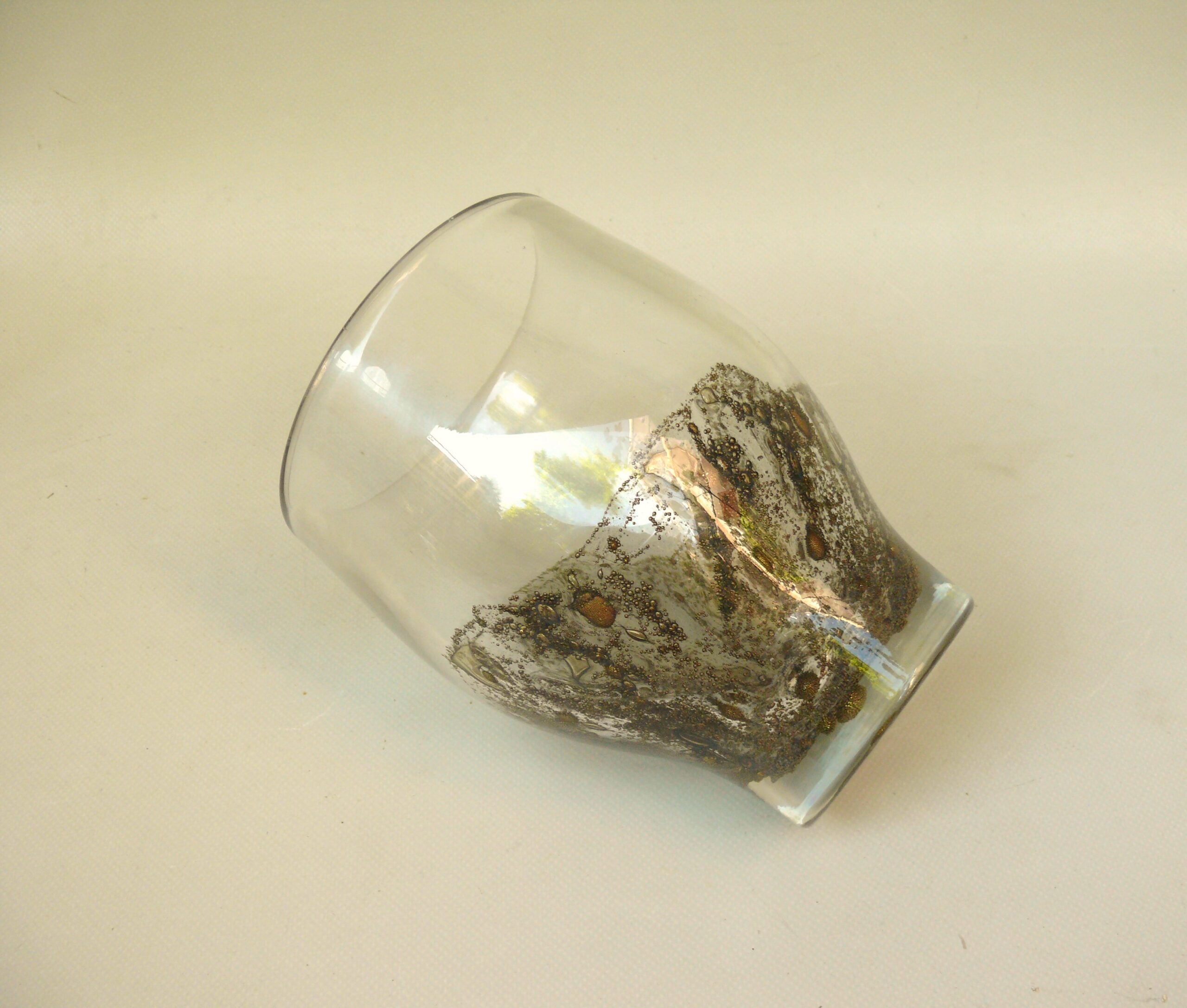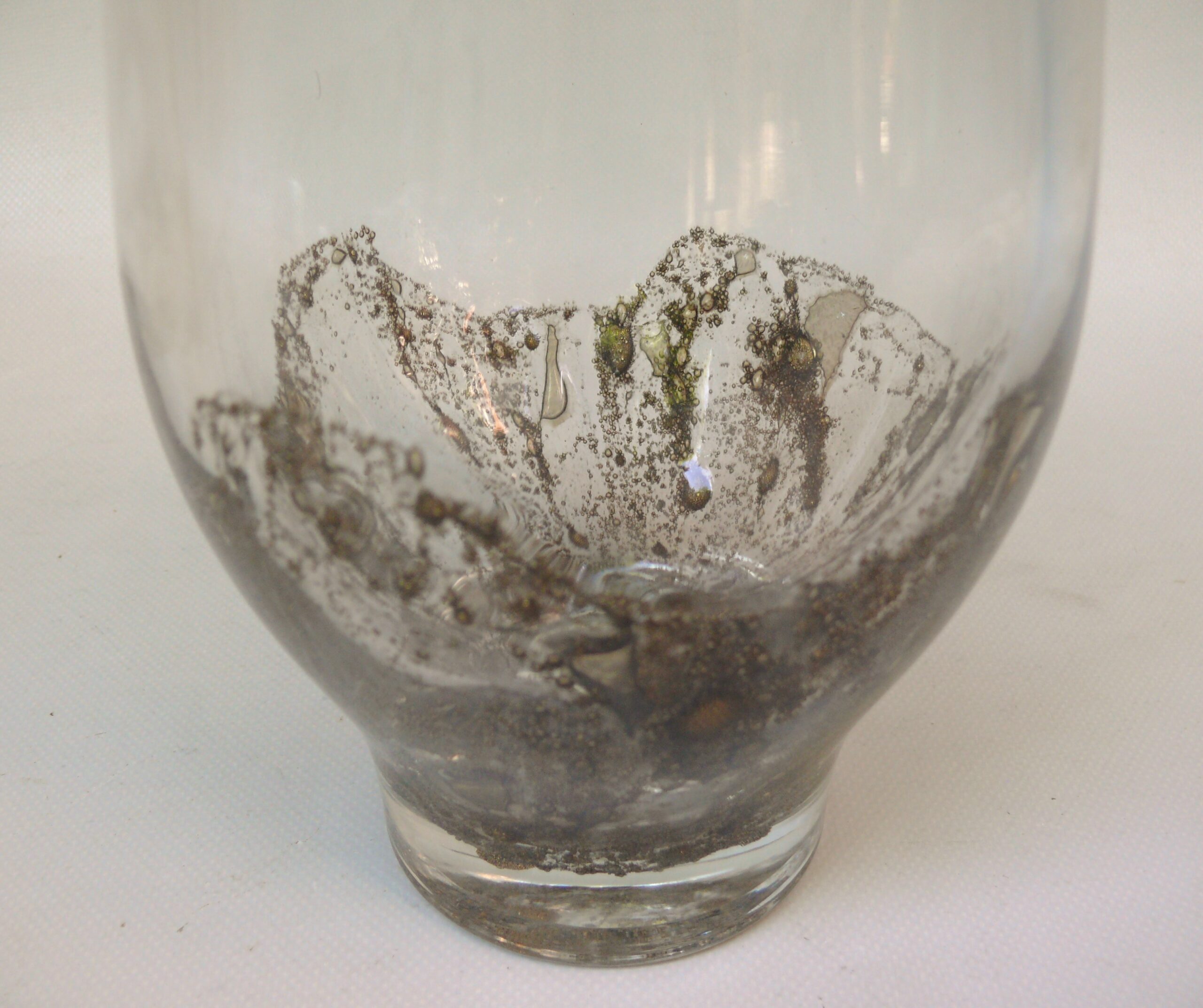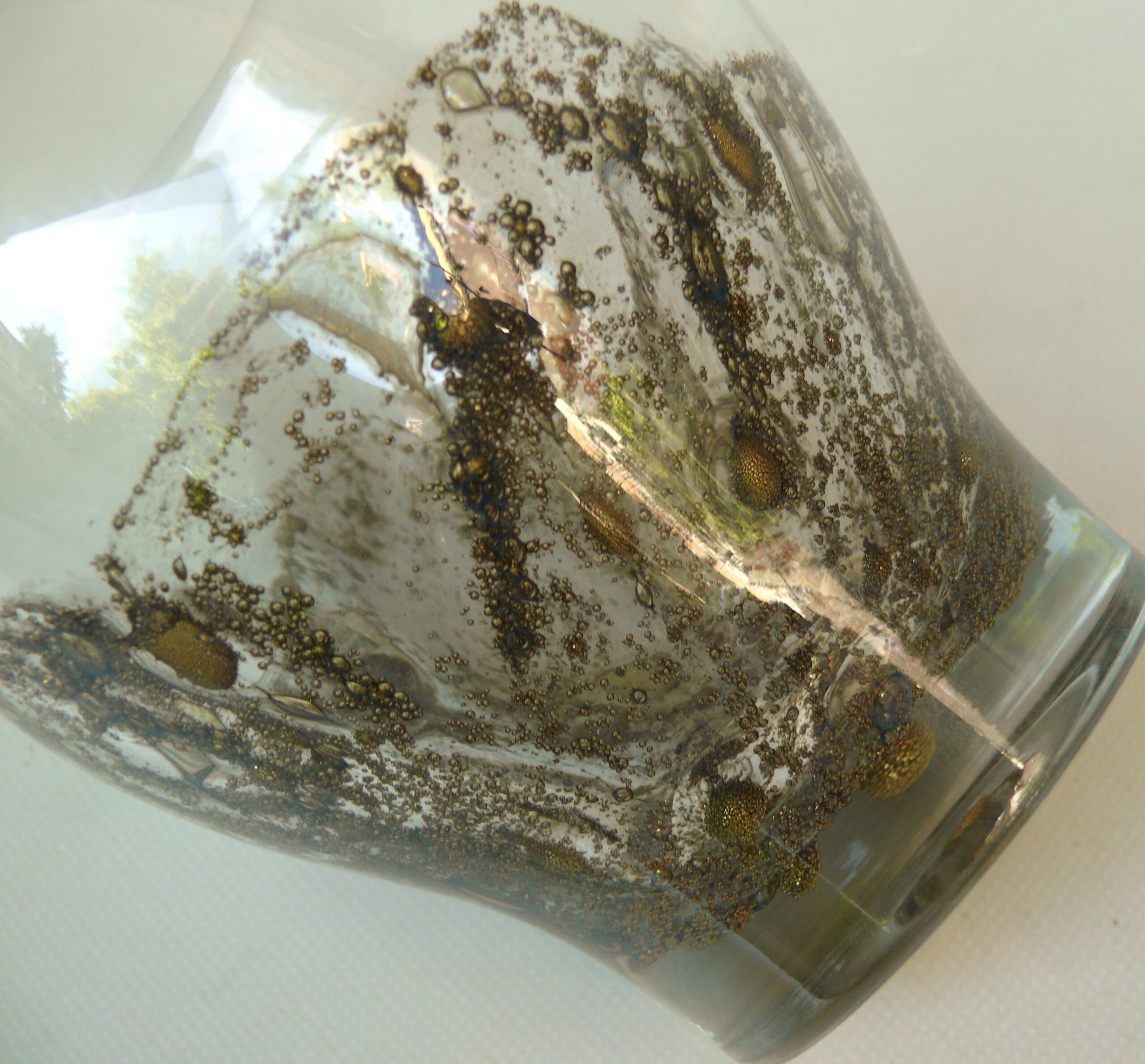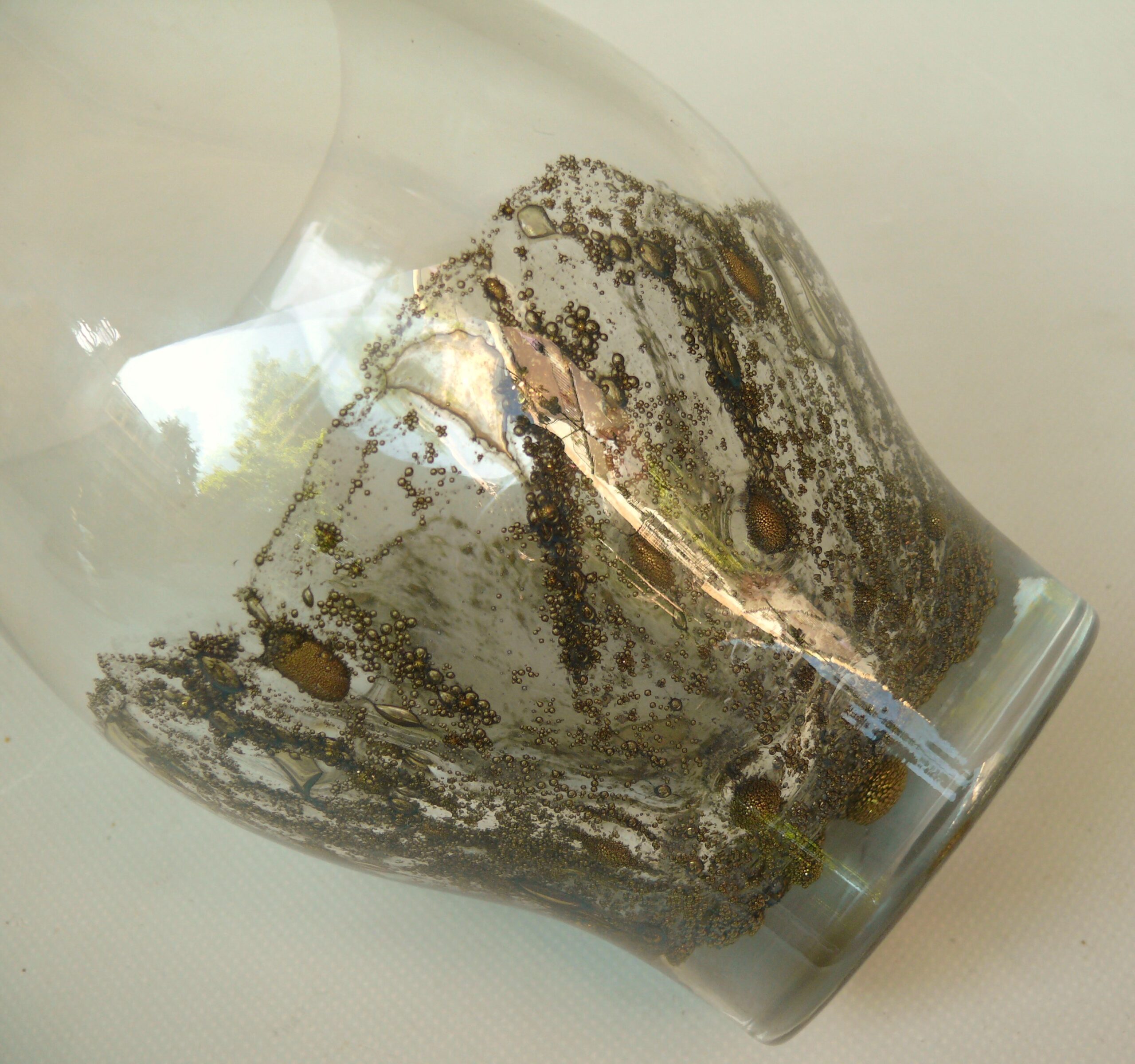 Die 4. Vase hat lebhafte Fertigungsspuren, Schlieren und Luftblasen, was seinen eigenen Charm hat.