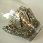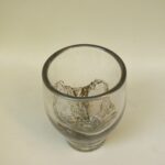 Die Vase ist mundgeblasen mit den typischen Luftblasen und hat ein geschliffenes Dekor (Blätter, Zweige), der Rand ist ebenfalls geschliffen. Das Glas ist dickwandig – 0,5 cm stark.