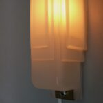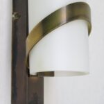 W80 – große, elegante Wandleuchte, 60er Jahre, Messing, Lampenschirme Überfangglas weiß