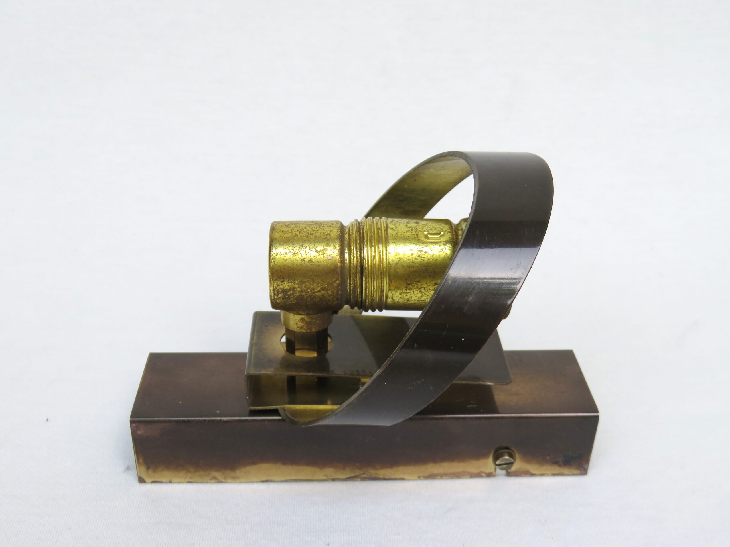 Der Messingkragen des emaillierten Lampenschirms ist bezeichnet mit Sparreflektor D.R.G.M. Der Lampenschirm wird auf die Fassung aufgelegt.