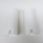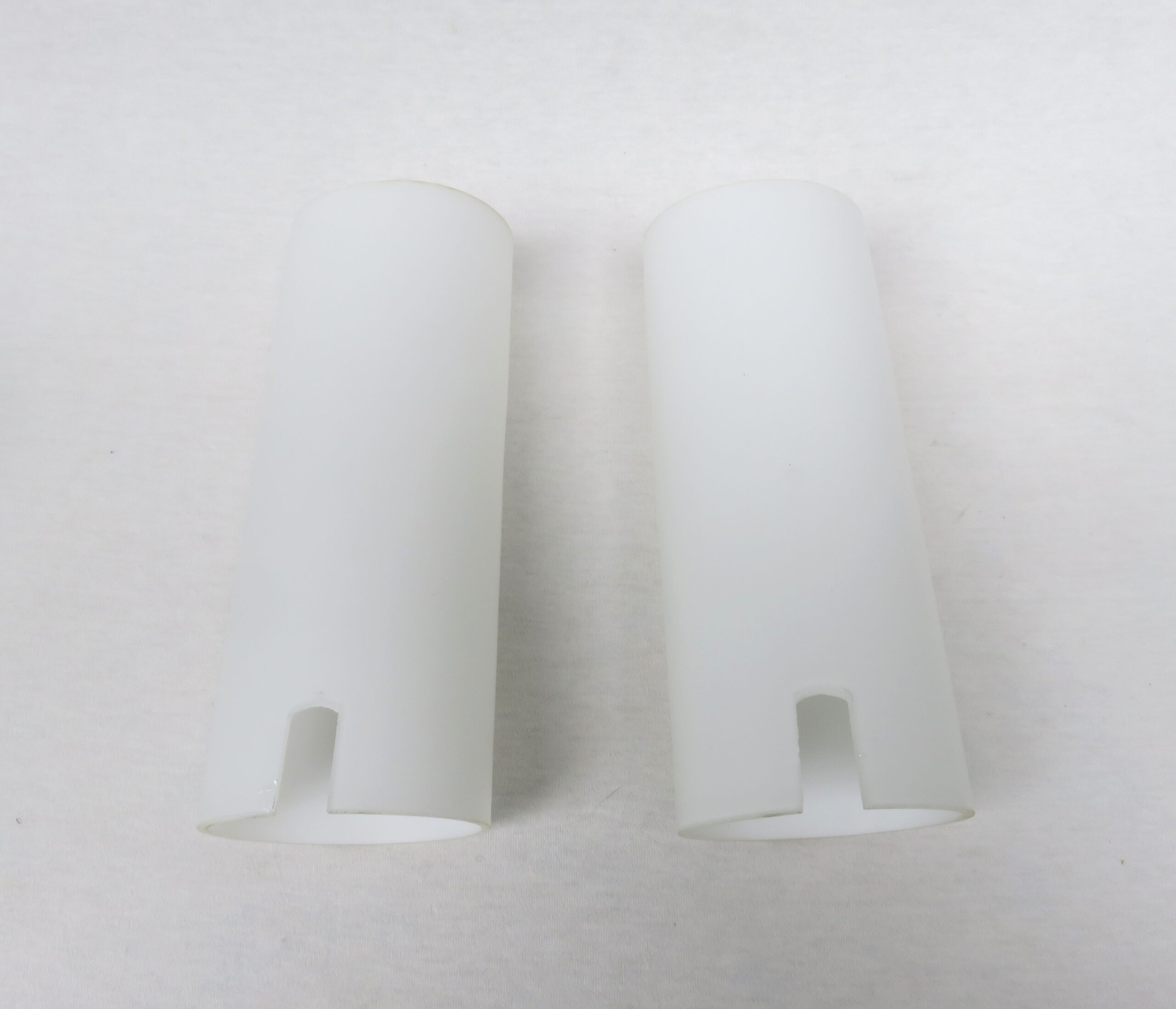 Die Lampenschirme sind Überfangglas weiß satiniert, haben einen Durchmesser von max. 6 cm und eine Höhe von 11 cm. Sie werden mittels 3 Klemmschrauben gehalten.