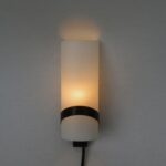 W13 – Wandleuchte, Art Deco, verchromt, weißer Überfangglasschirm – Tubus
