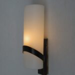 schwere kleine Wandleuchte, da die Wandhalterung aus dem Vollen gearbeitet wurde. Auch die oberen und unteren Halterungen für den Glastubus wurden aus dem Vollen gearbeitete.