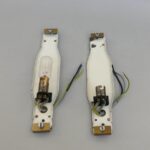 Der Chrom der. 1. Leuchte zeigt geringere Spuren der Zeit, es wurde seitlich ein Loch verschlossen. Der Chrom der 2. Leuchte zeigt stärkere Spuren der Zeit.