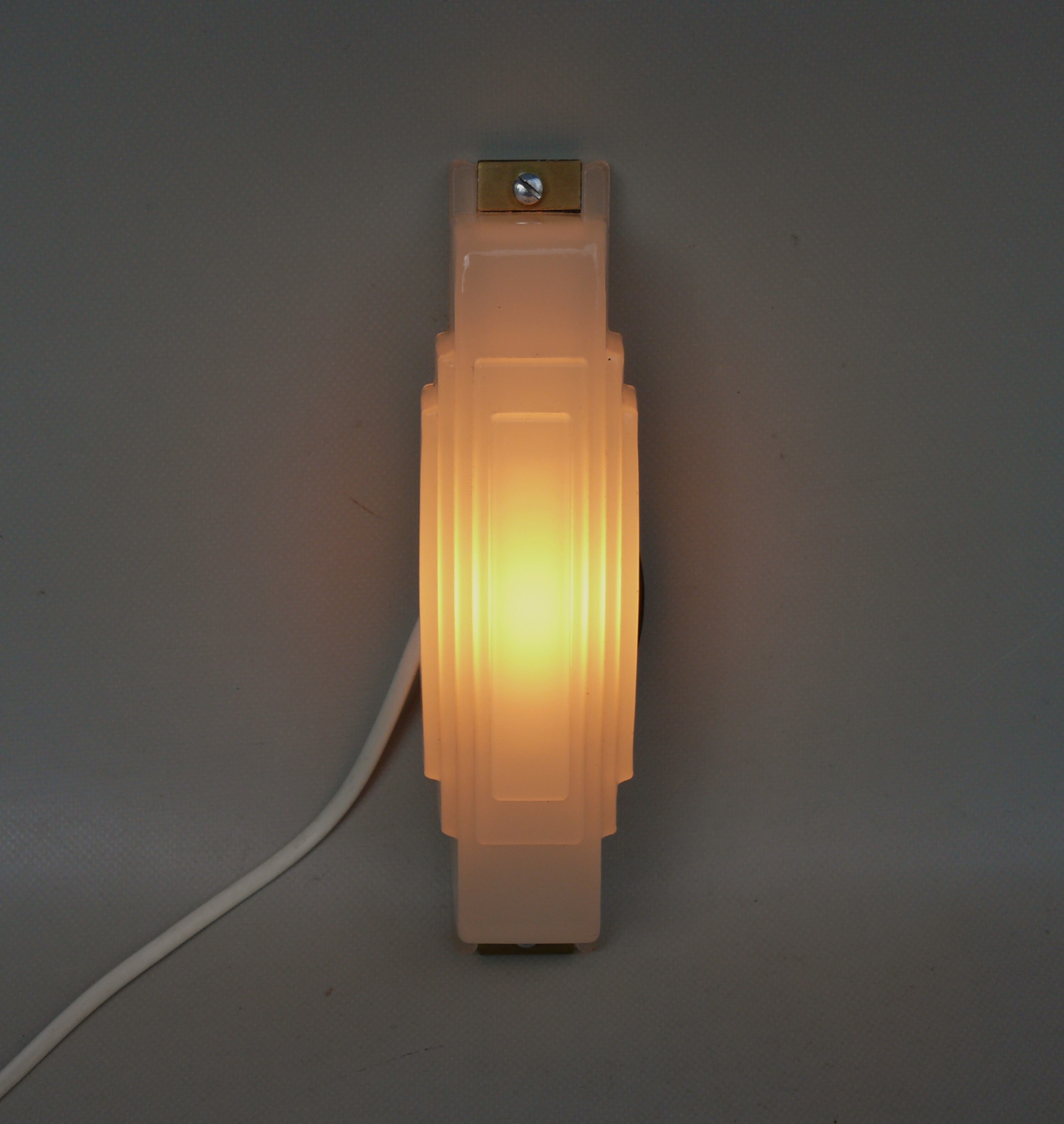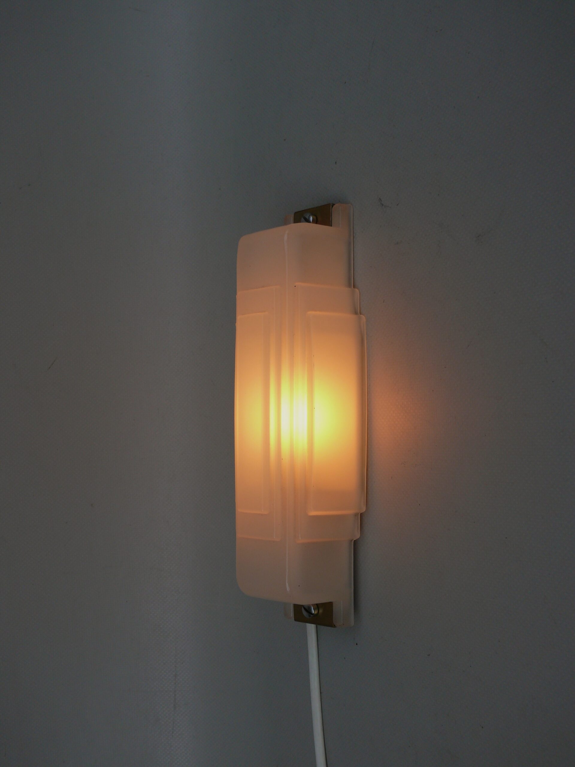 W8 – kleine Wandleuchte Art Deco, Messing, beiges Überfangglas, strenge Form