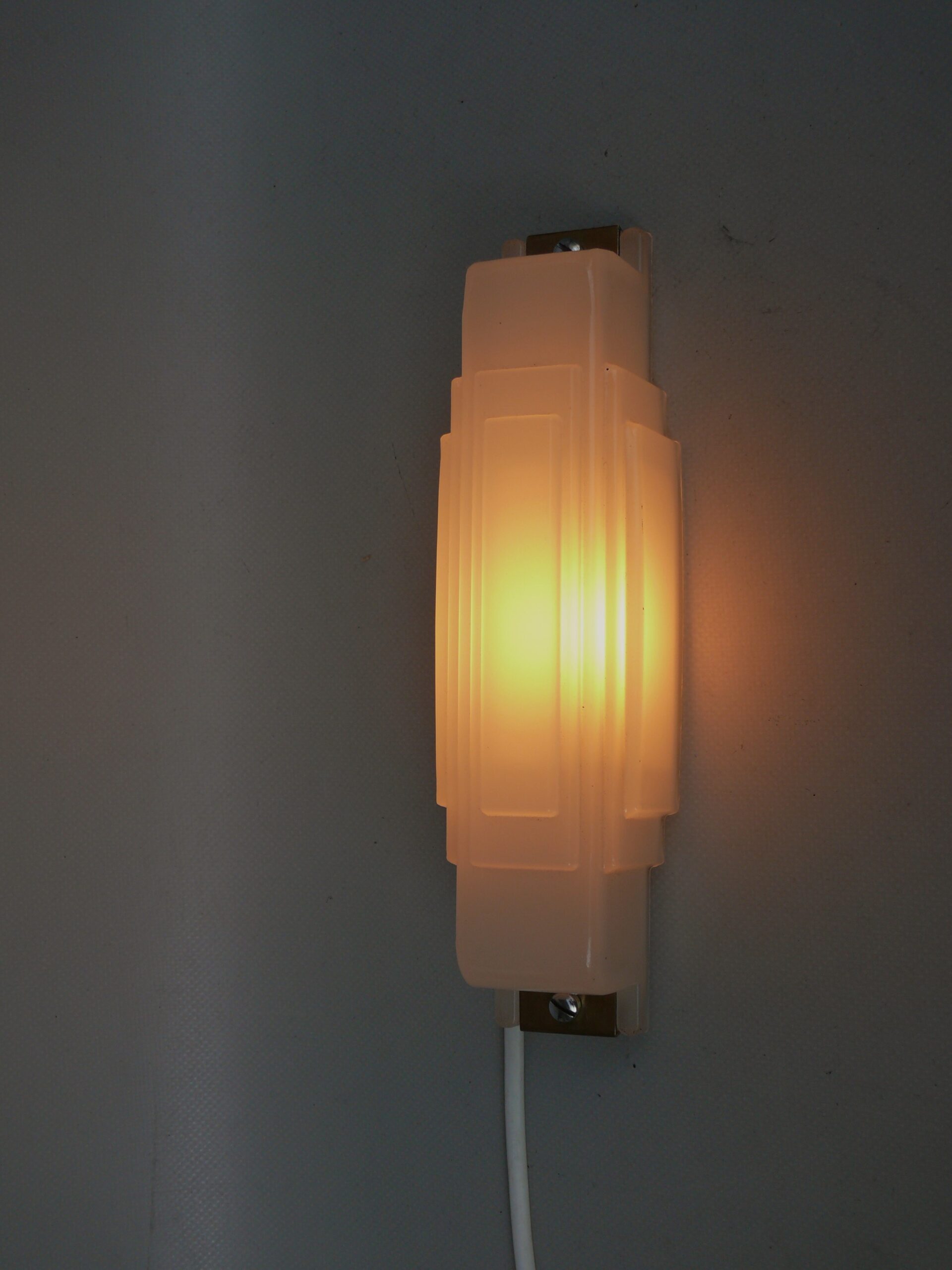 W17 – 1 Paar Wandleuchten, Tschechien, Art Deco, weißer Glastubus, verchromt – sehr guter Zustand