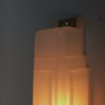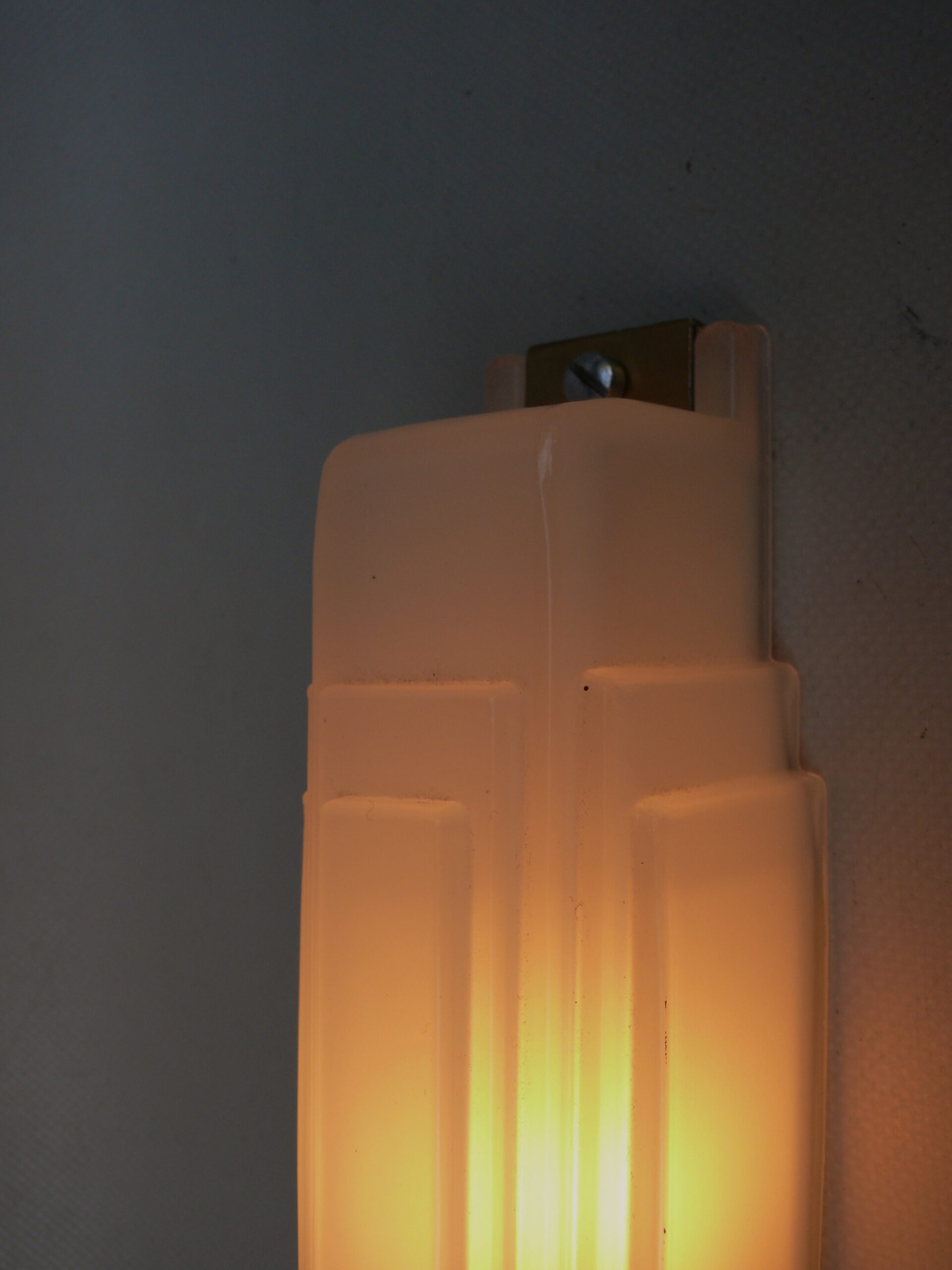 W22 – 1 Paar zierliche Wandleuchten „Skyscraper“, Art Deco, Frankreich satiniertes Opalinglas