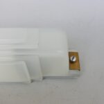 Die Leuchten sind aufwendig und detailverliebt gearbeitet: die Abdeckplatten aus Plexiglas sind mit einem Rahmen aus goldfarben eloxiertem Aluminium eingefaßt. Darauf sitzen die aus Messingrohr gebogenen Arme mit Tüllen aus schwarzem Bakelit. Die Arme sind asymetrisch angebracht.