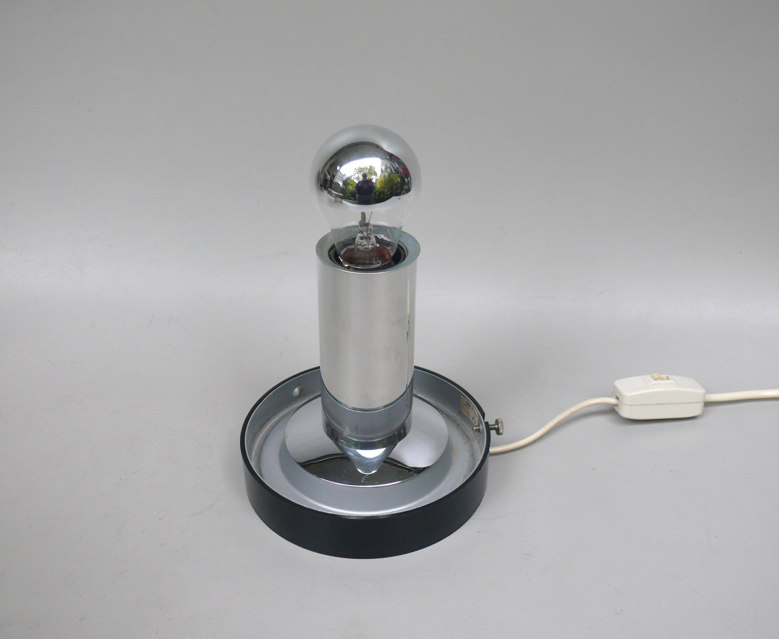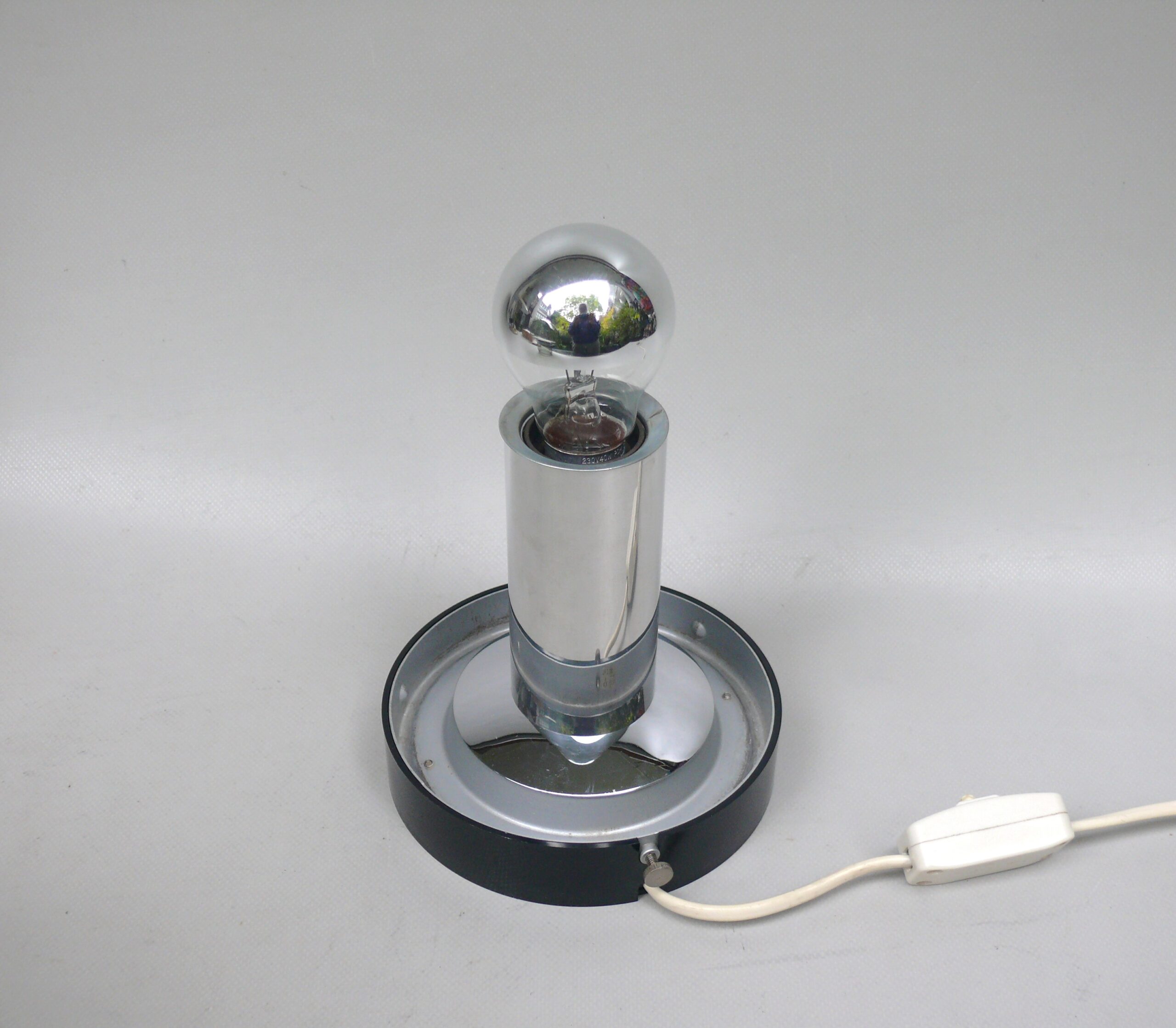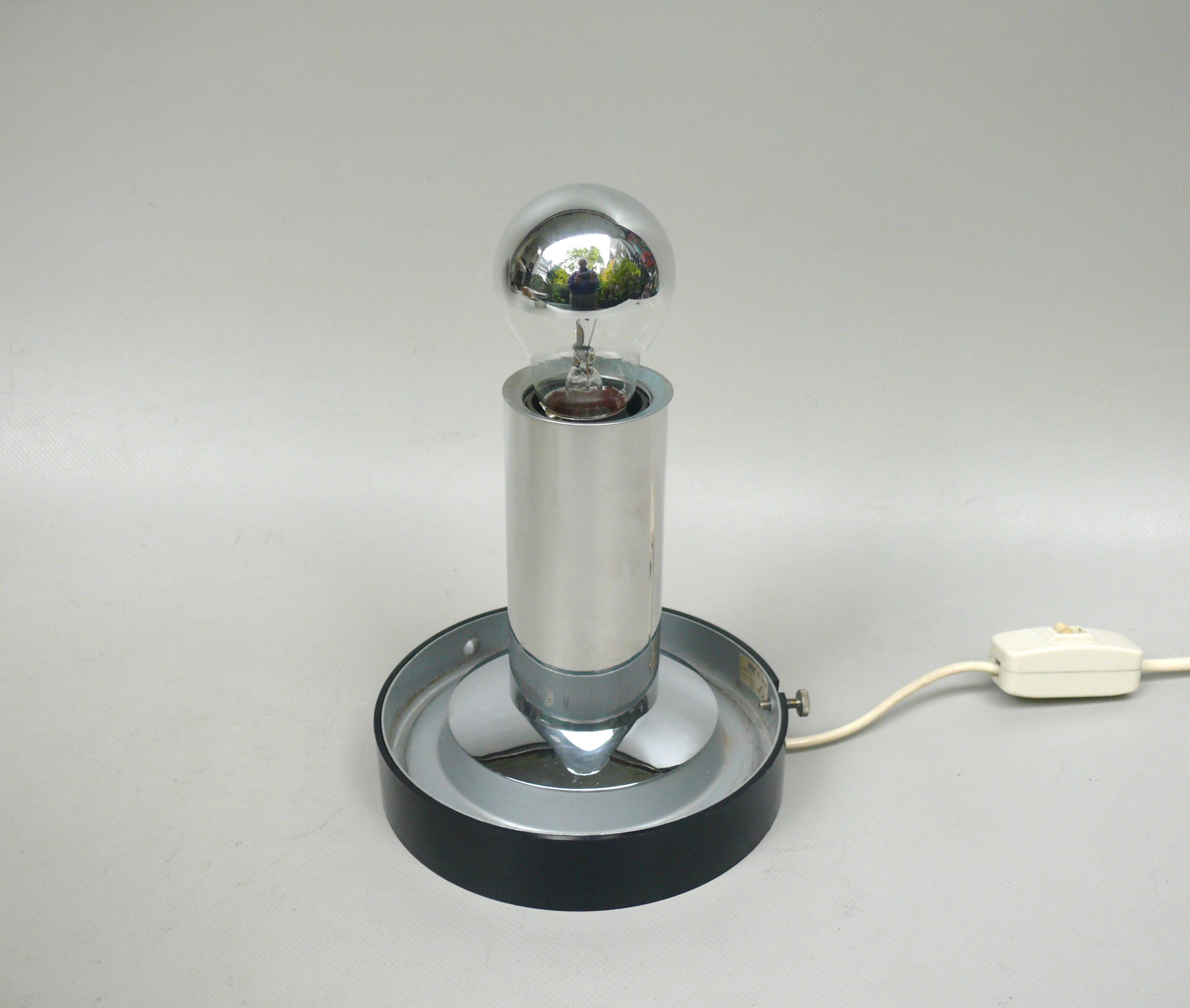 T107 – minimalistische Tischleuchte, Baulmann form-leuchte, 60er Jahre, Aluminium, schwarz lackiert, verchromt