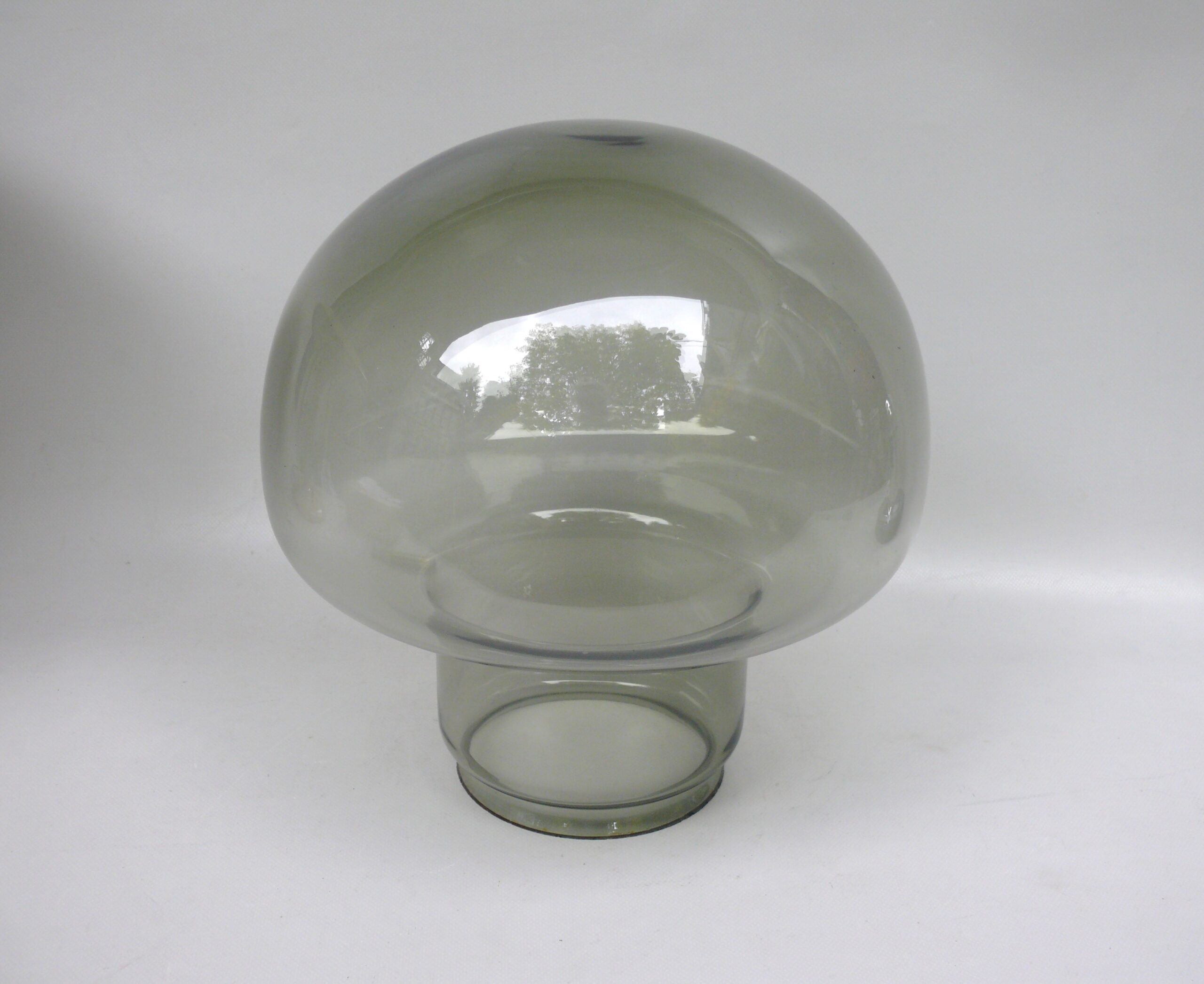 Der Glasschirm und -sockel sind mundgeblasen und zeigen die dafür typischen Luftblaseneinschlüsse.