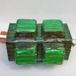 D233 – Deckenleuchte, 60er Jahre, Kunststoff grün / rot, Kupfer, Deutschland