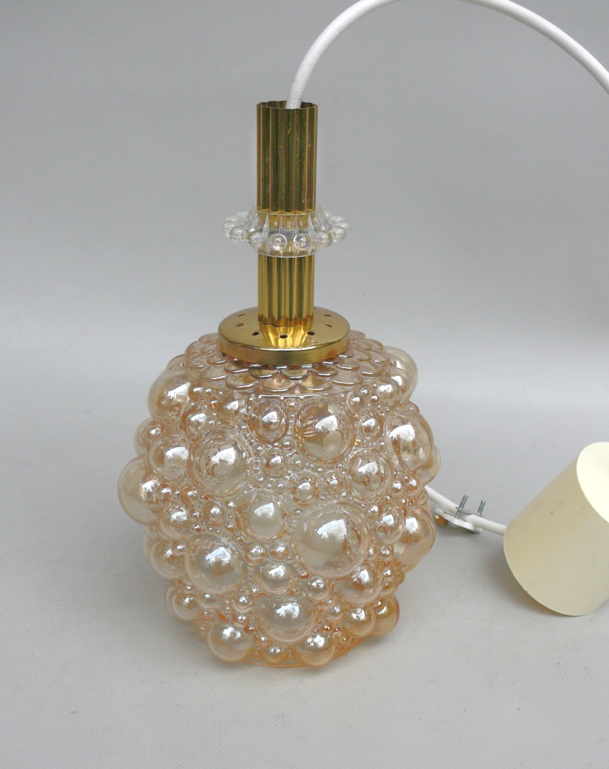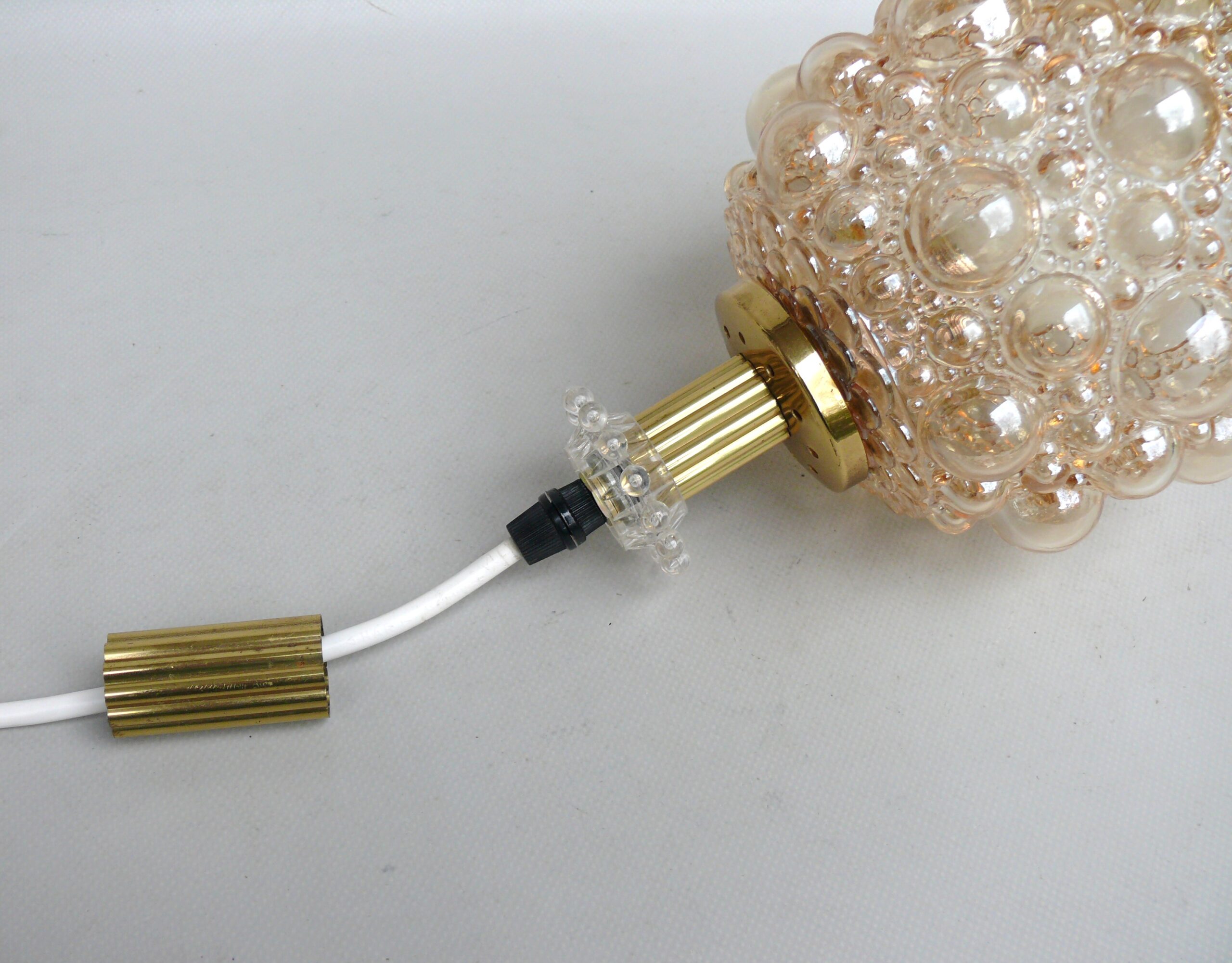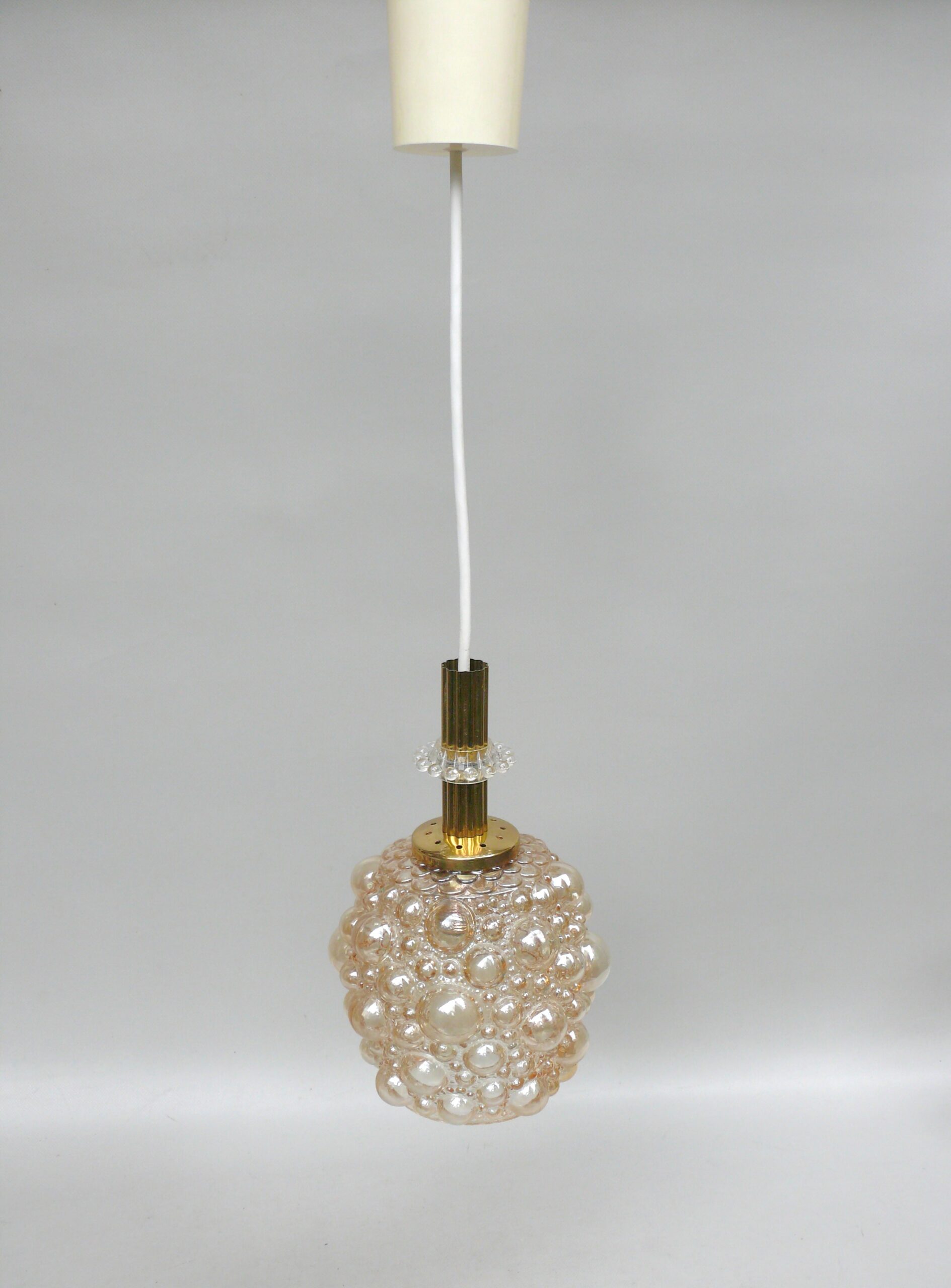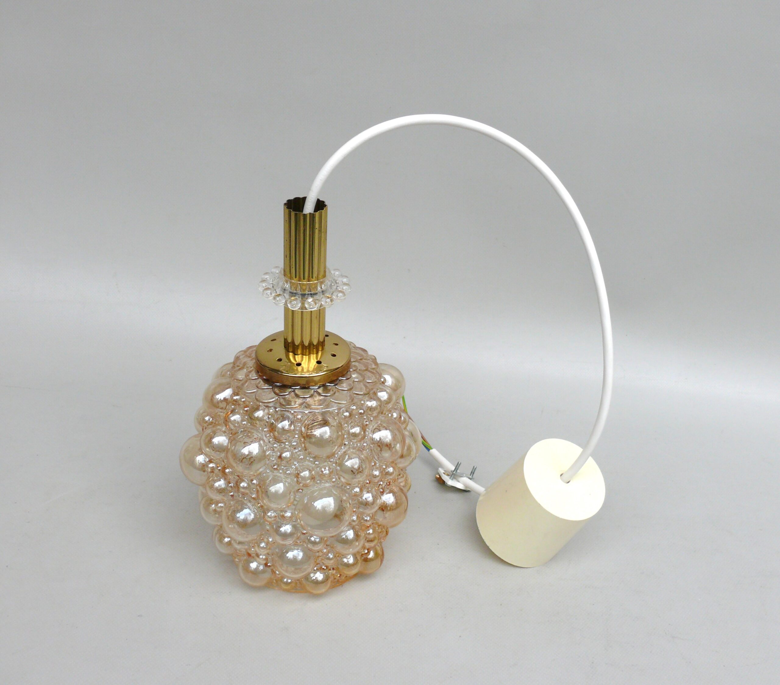 D234 – zierliche Deckenleuchte, 60er Jahre, im Stil von Helena Tynell, Bubbleglas amberfarben, Messing
