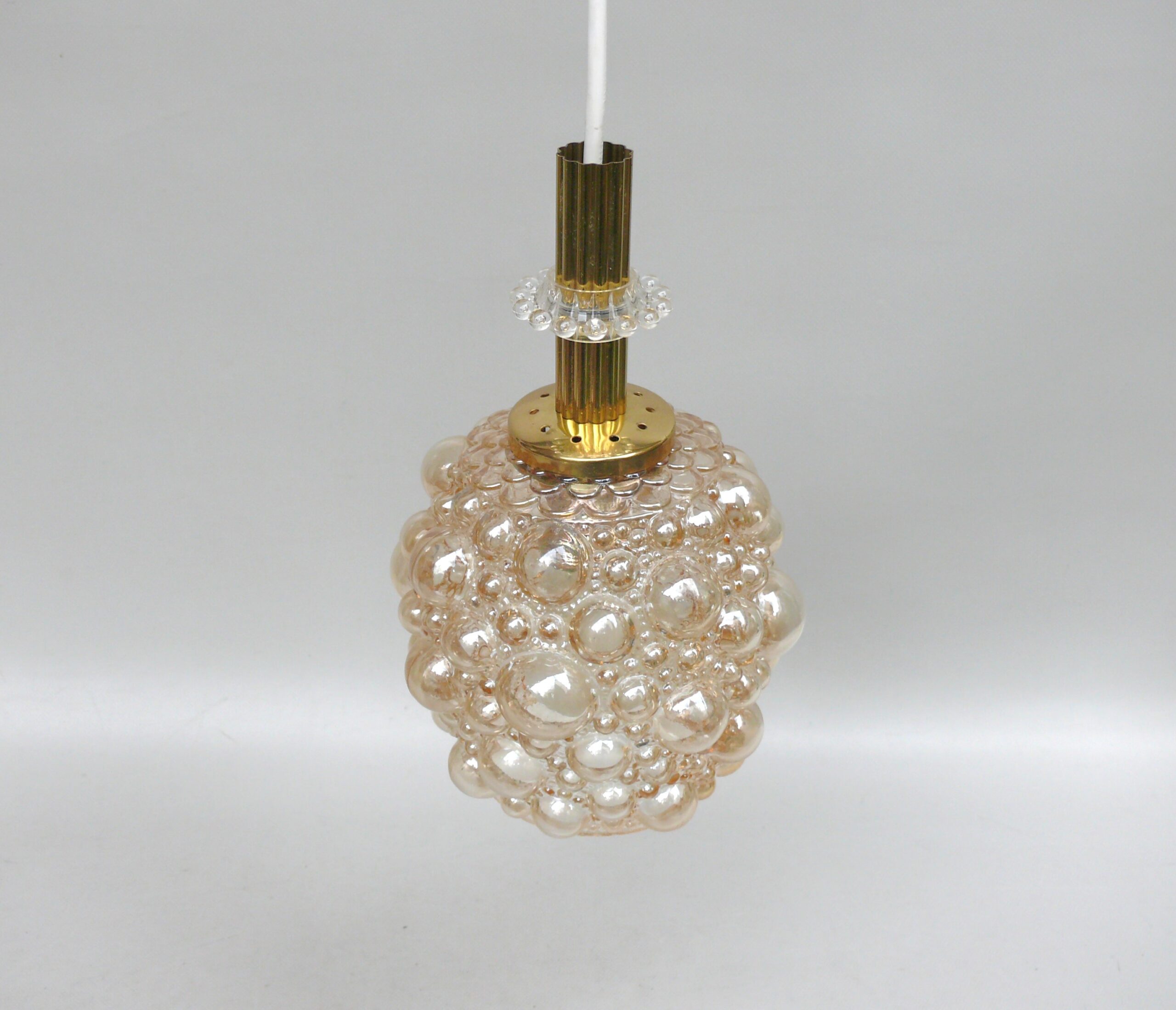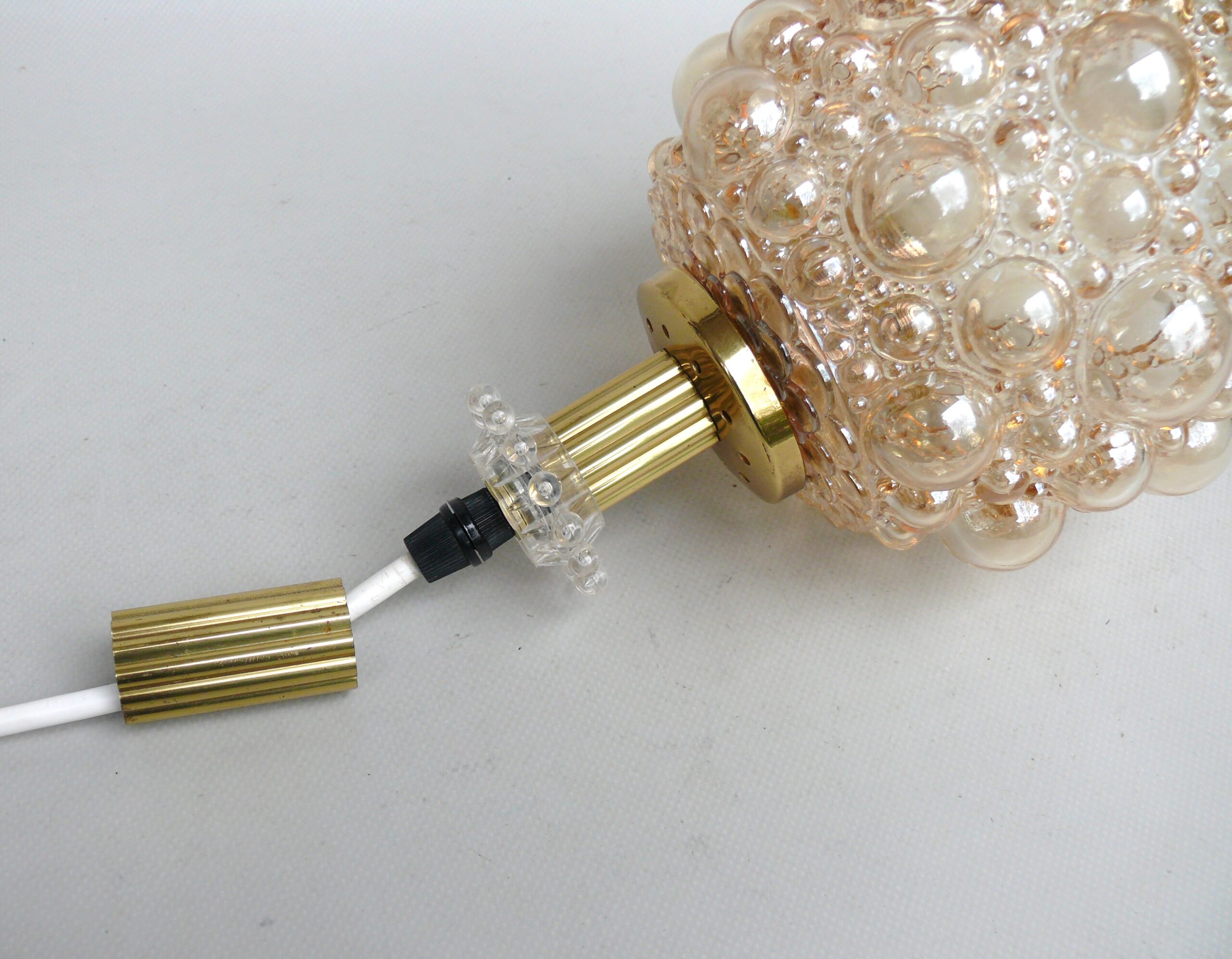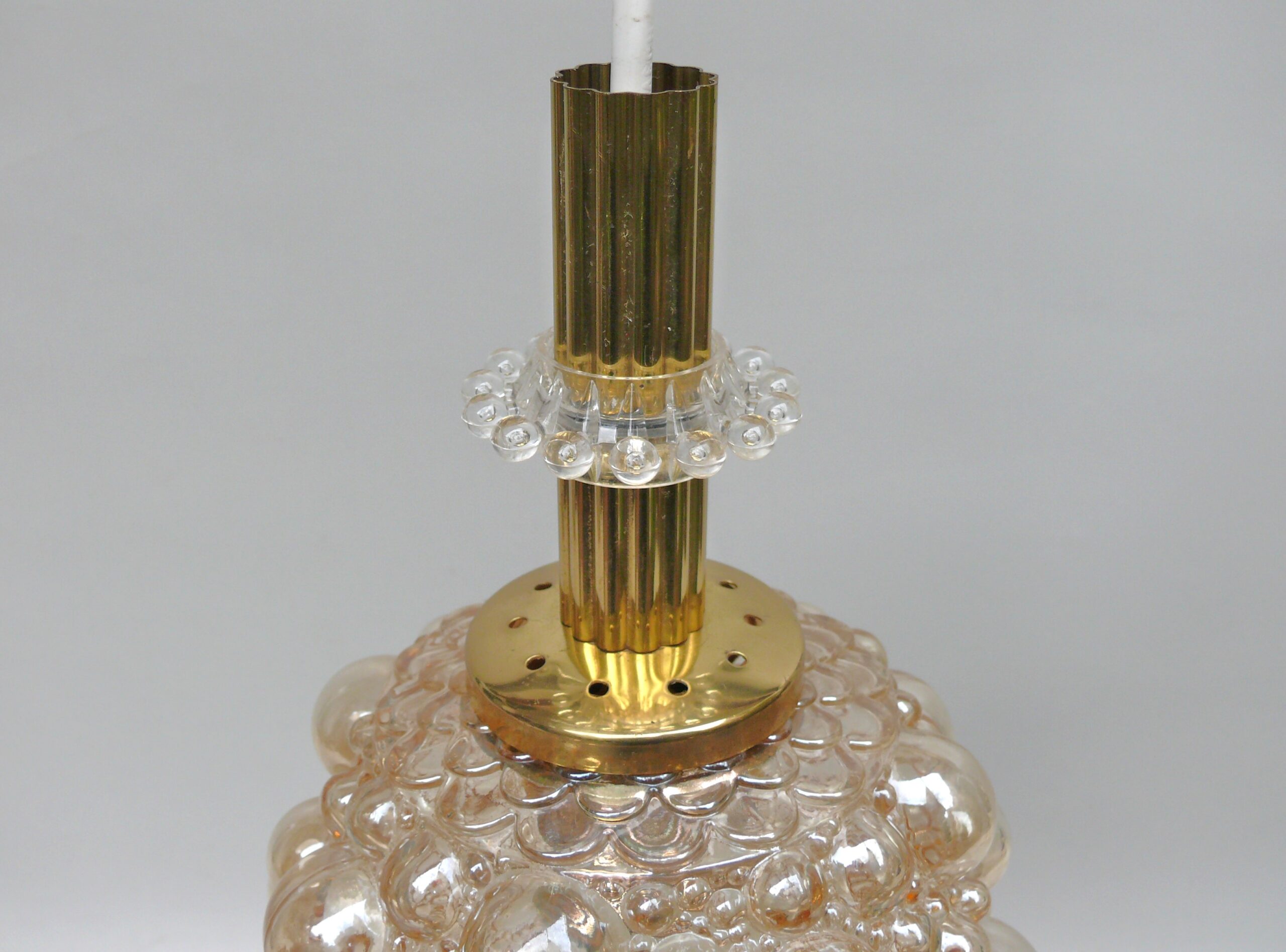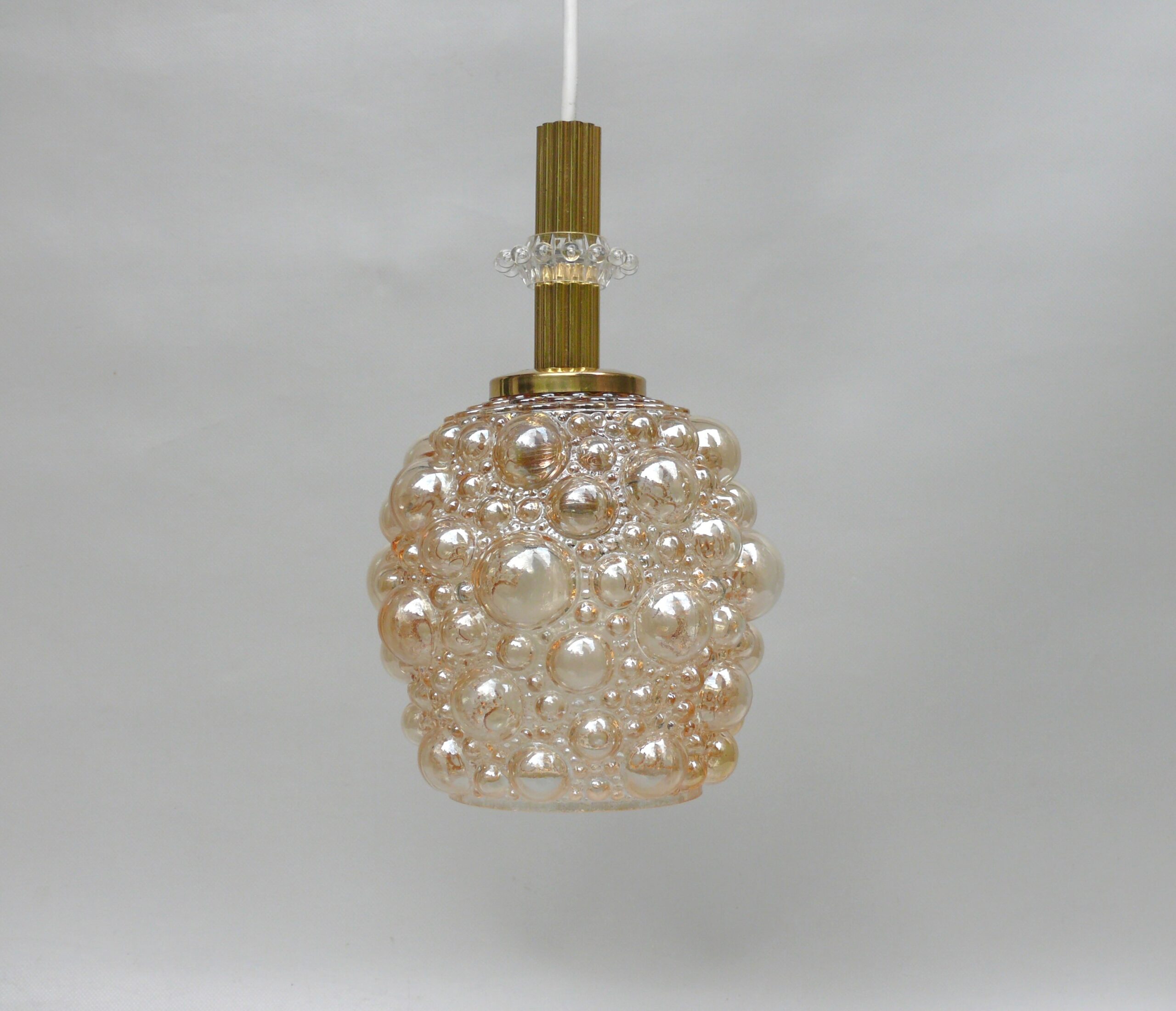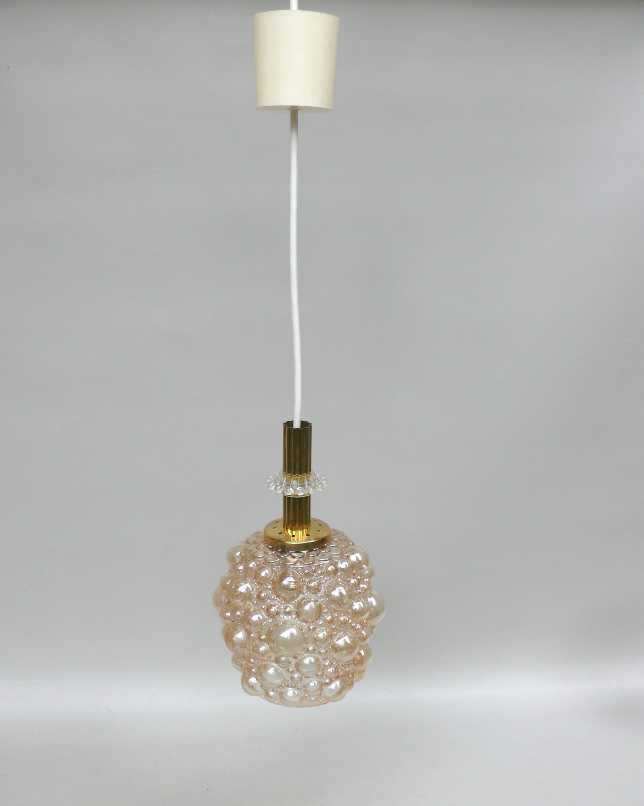 D234 – zierliche Deckenleuchte, 60er Jahre, im Stil von Helena Tynell, Bubbleglas amberfarben, Messing