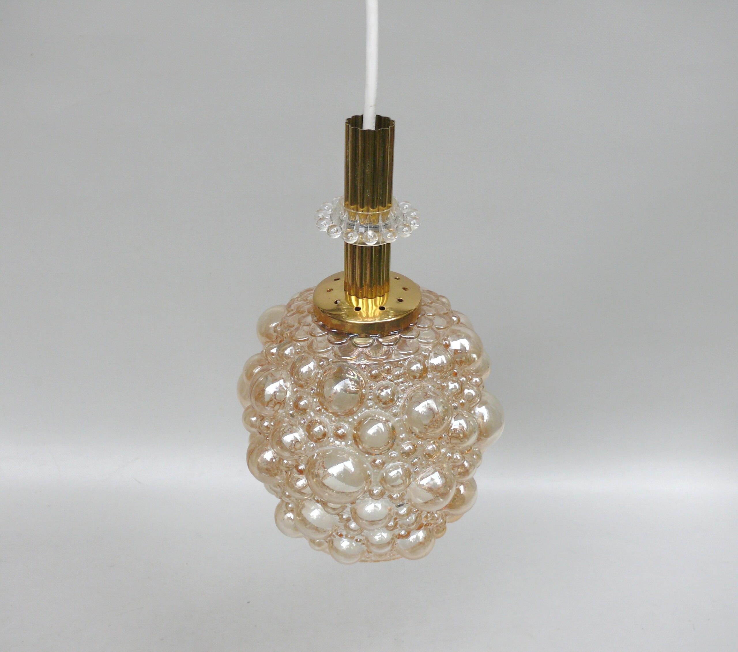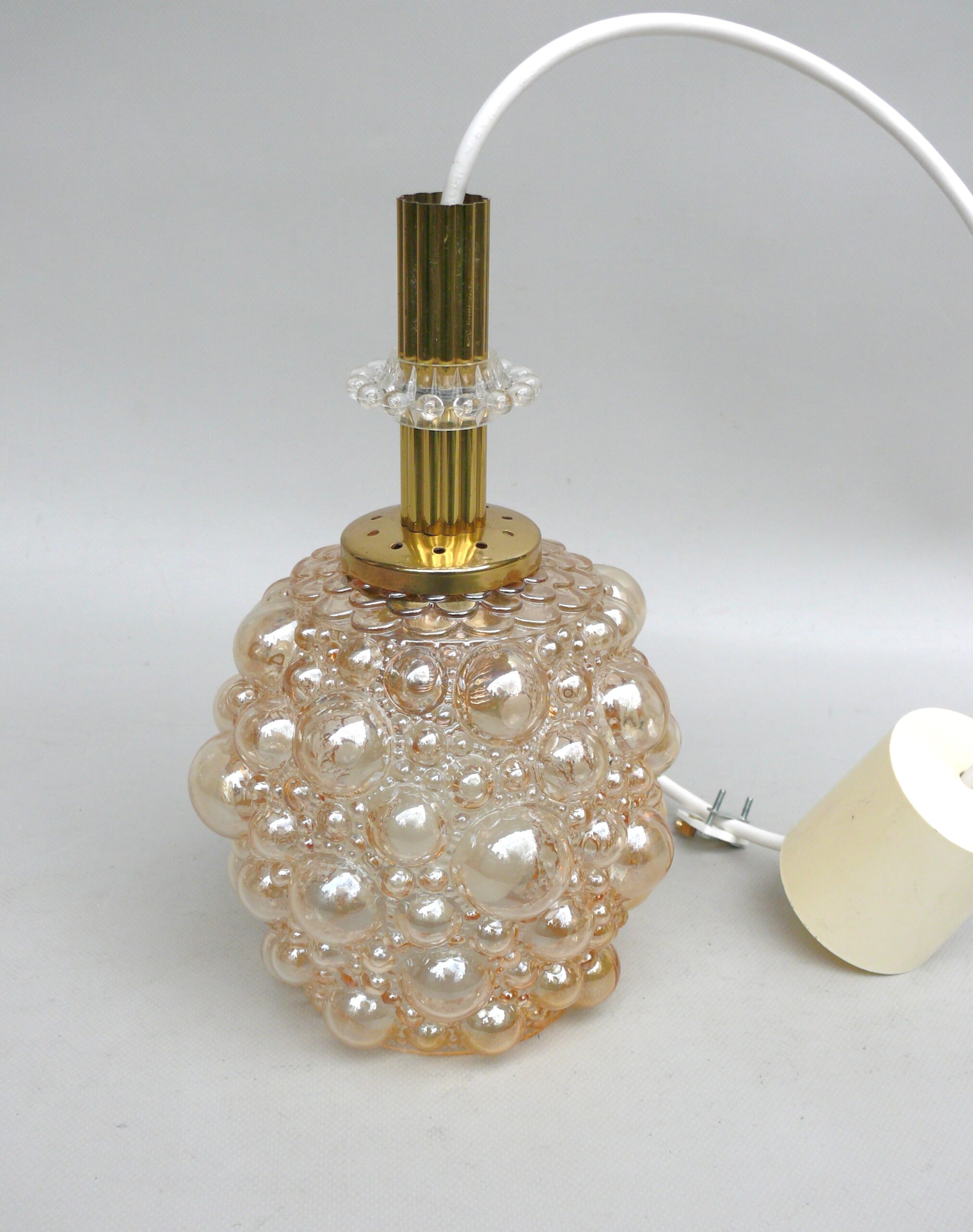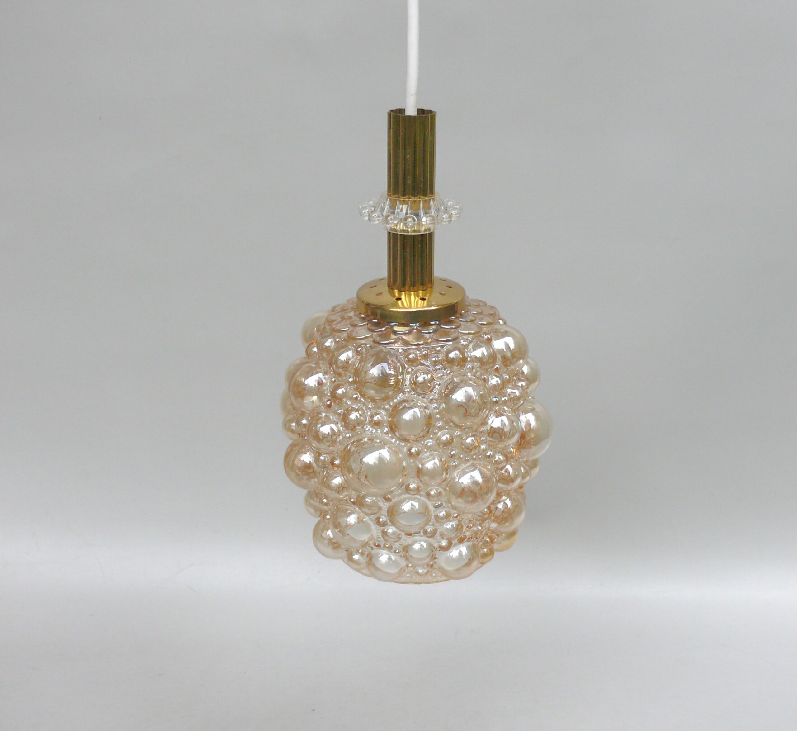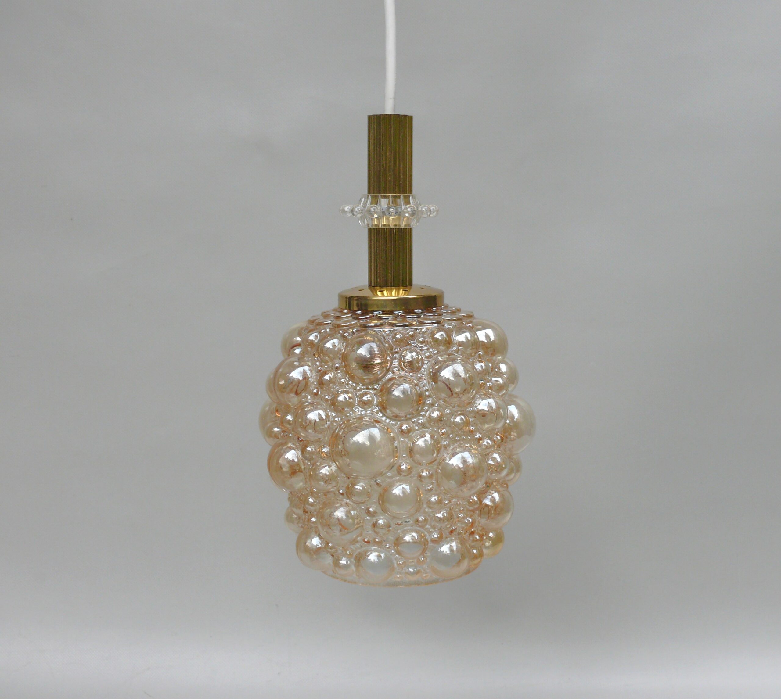 D234 – zierliche Deckenleuchte, 60er Jahre, im Stil von Helena Tynell, Bubbleglas amberfarben, Messing