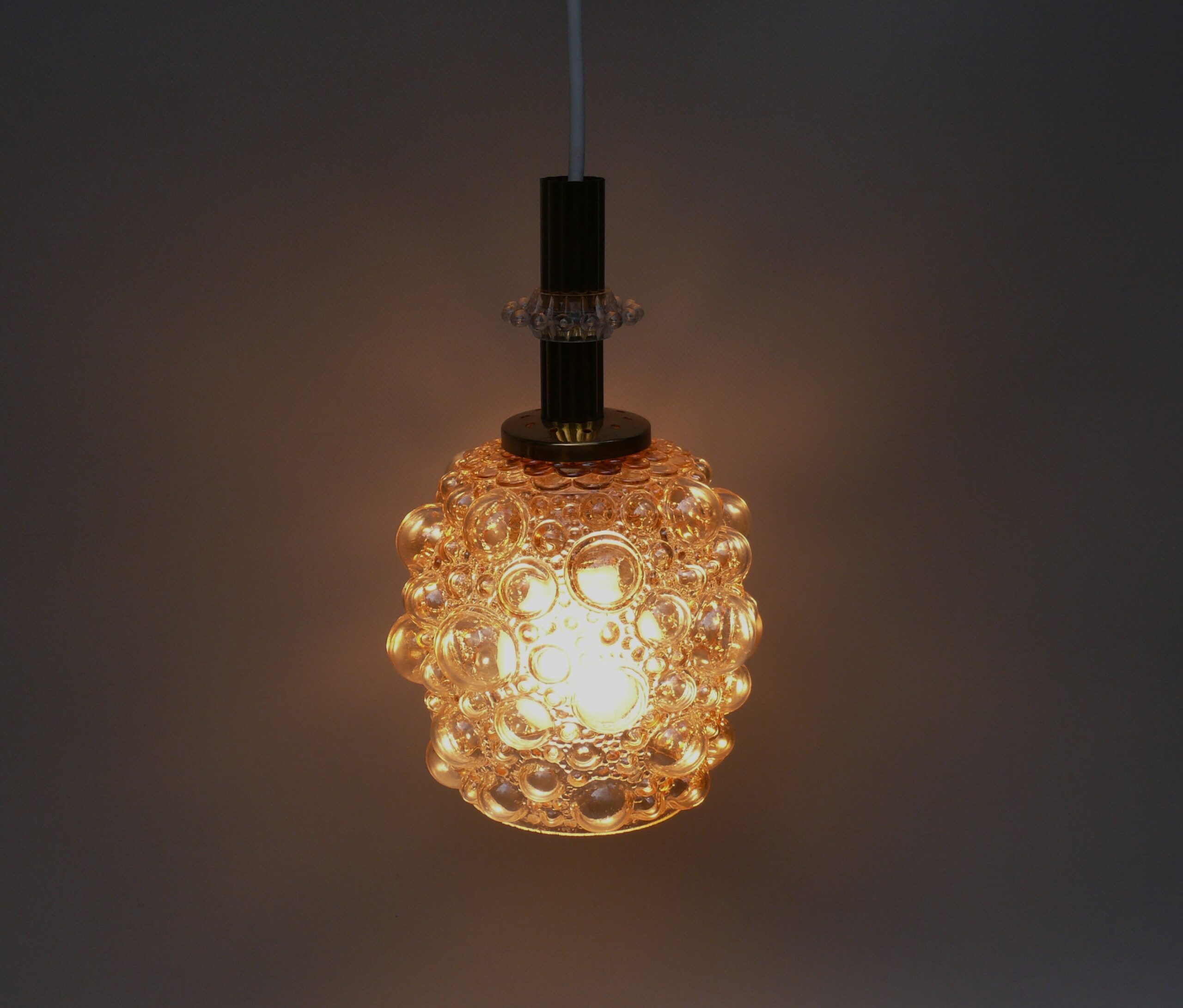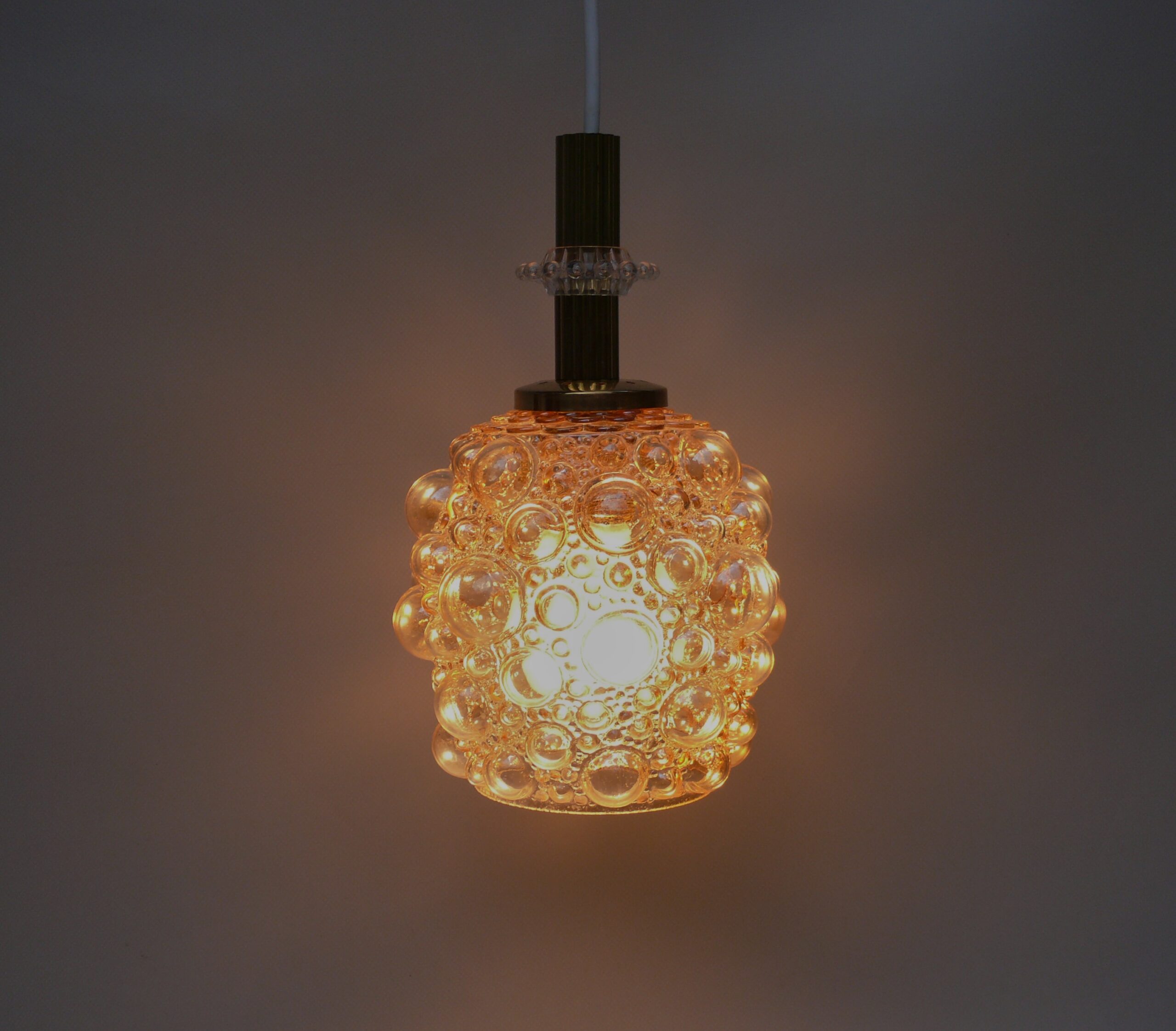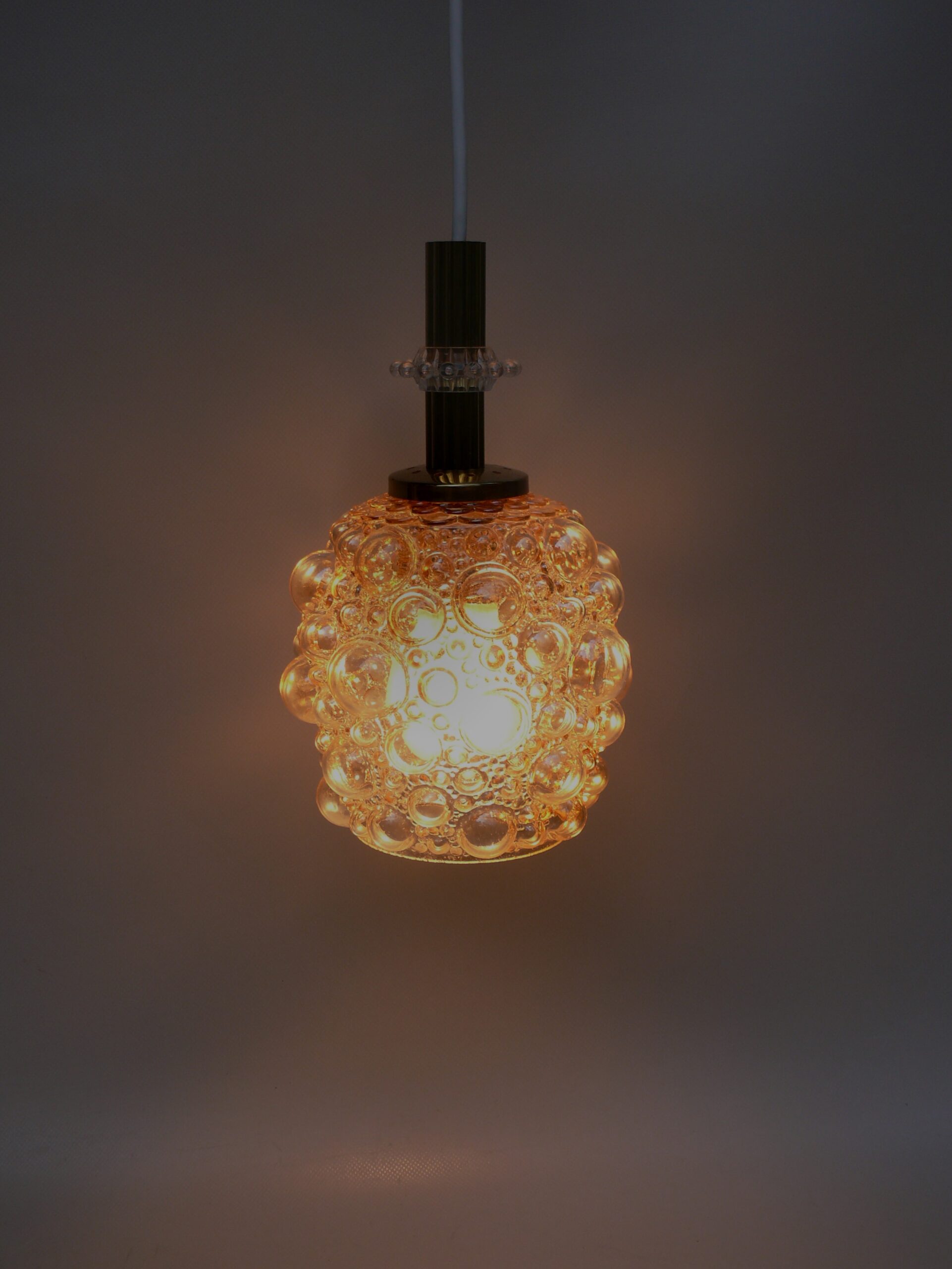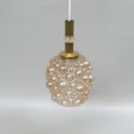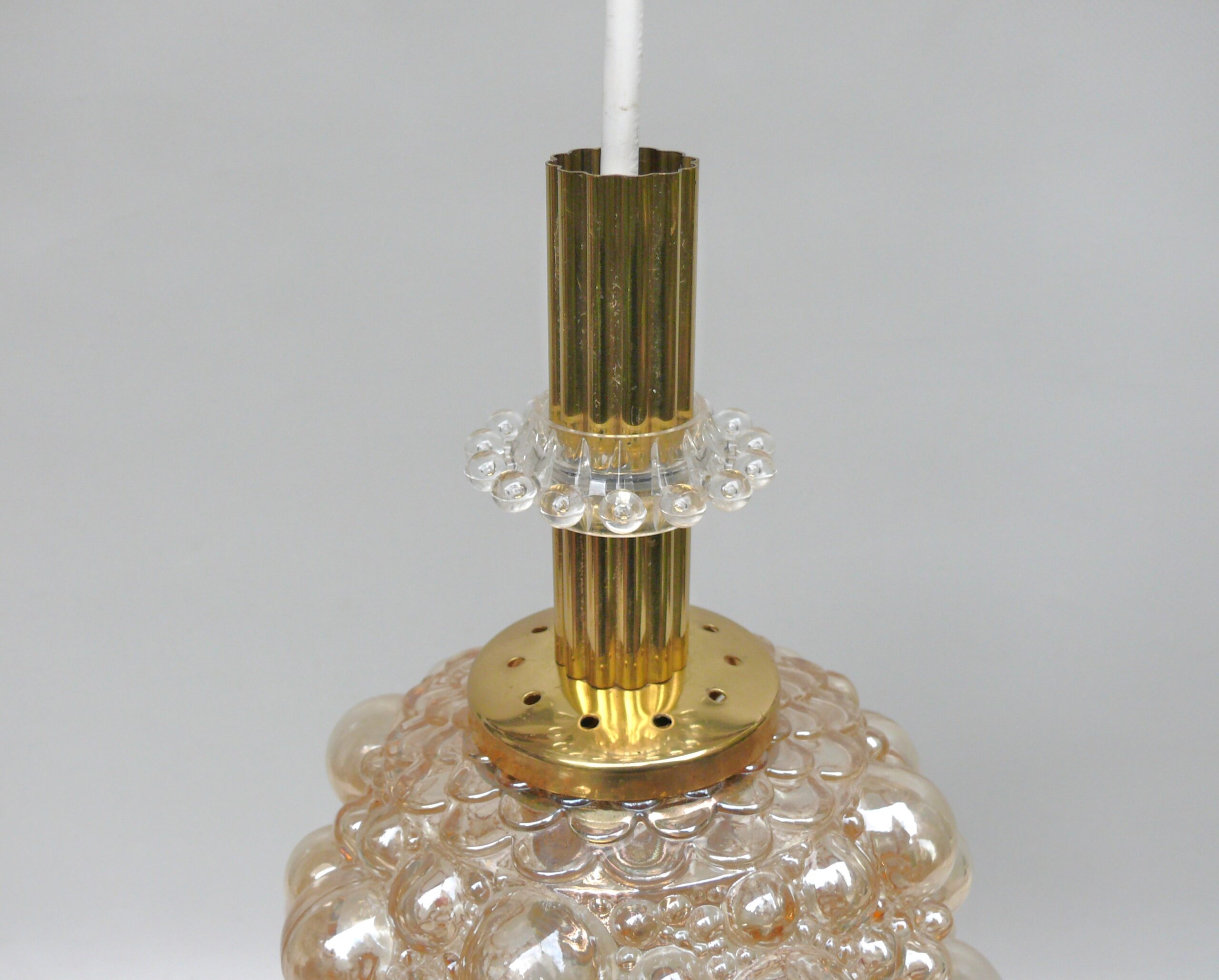 D234 – zierliche Deckenleuchte, 60er Jahre, im Stil von Helena Tynell, Bubbleglas amberfarben, Messing