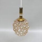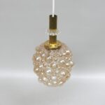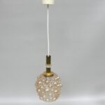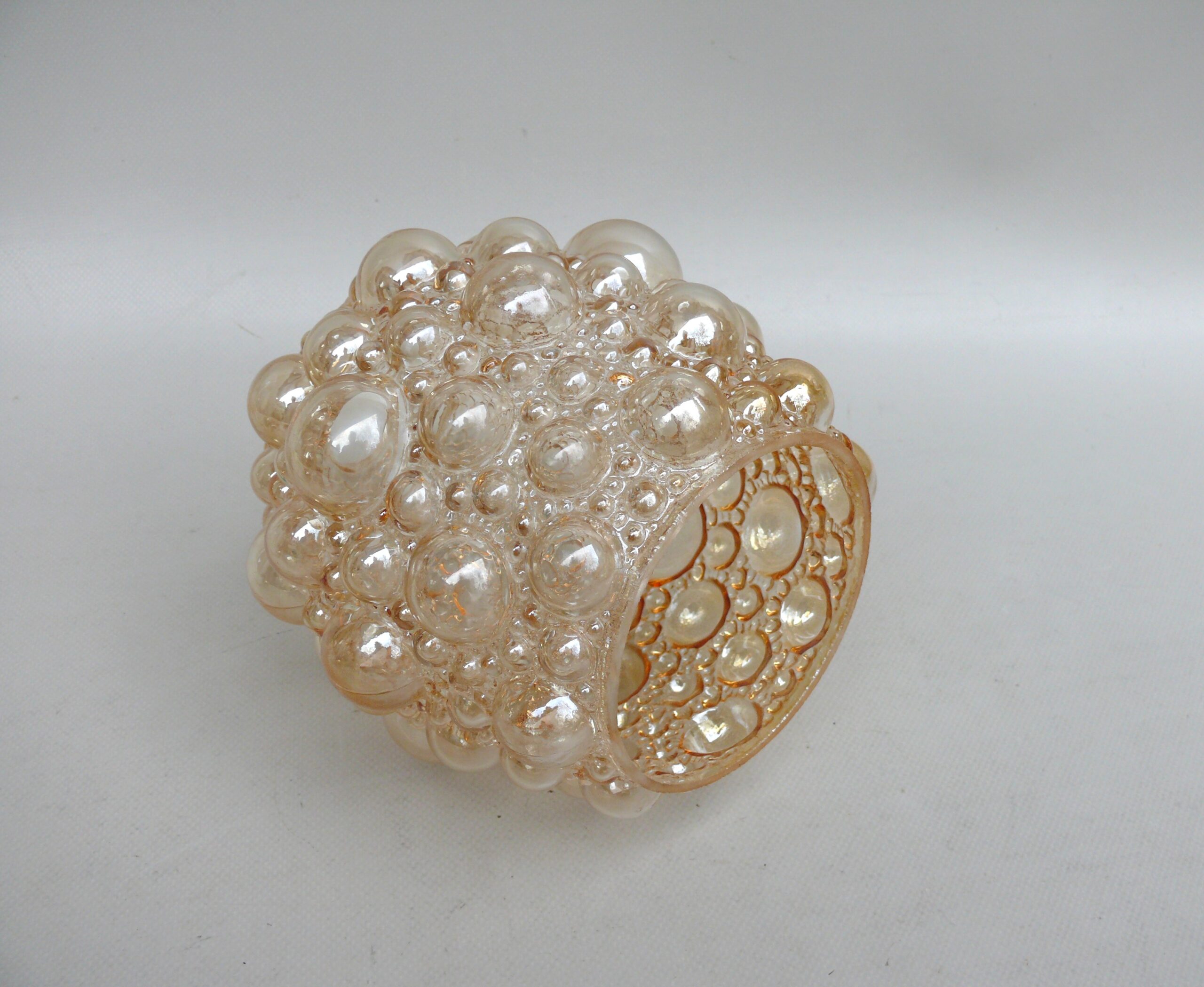 Eine elegante Deckenleuchte, hergestellt in den 60er Jahren mit einem Lampenschirm aus beigem Überfangglas mit unterschiedlich großen Lufteinschlüssen.