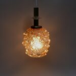 Eine Deckenleuchte ganz im Ausdruck der Space Age-Ära von Doria mit einem mundgeblasenen Lampenschirm aus Muranoglas mit Luftblasen und schwarz, rosé und grauen Einschlüssen.